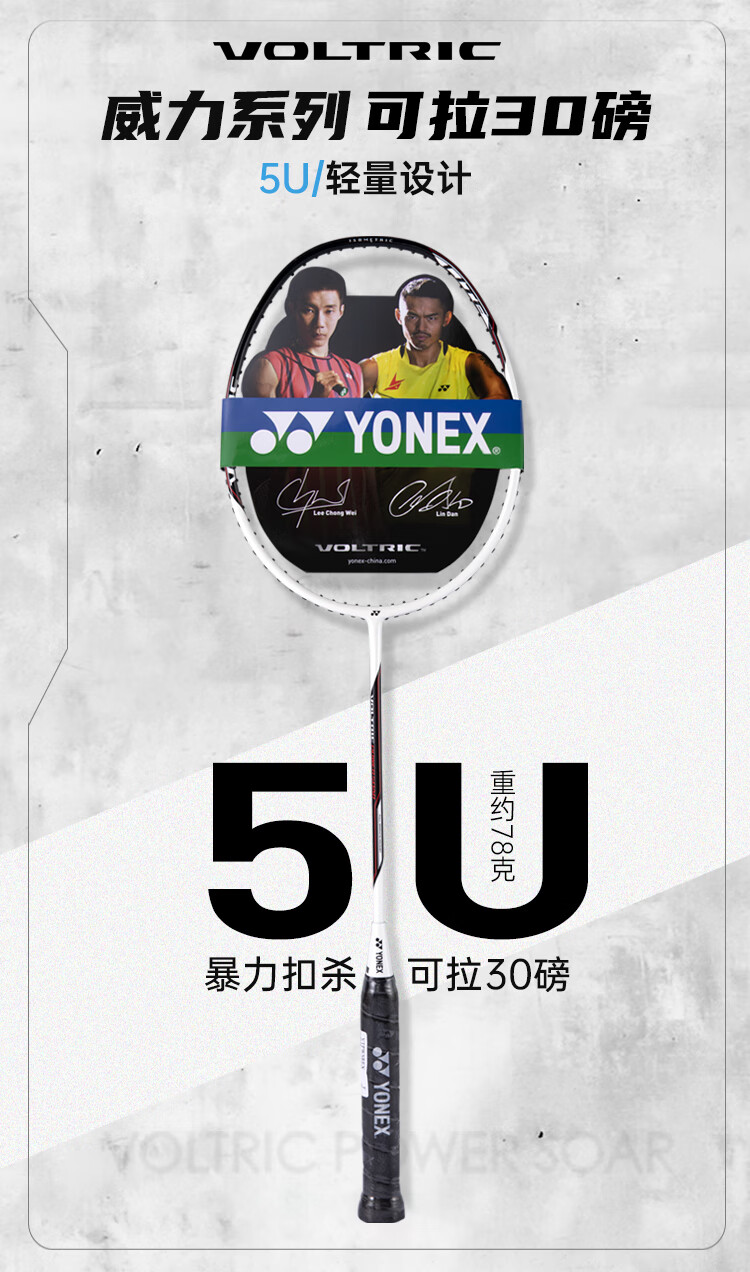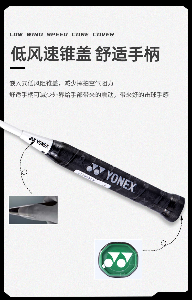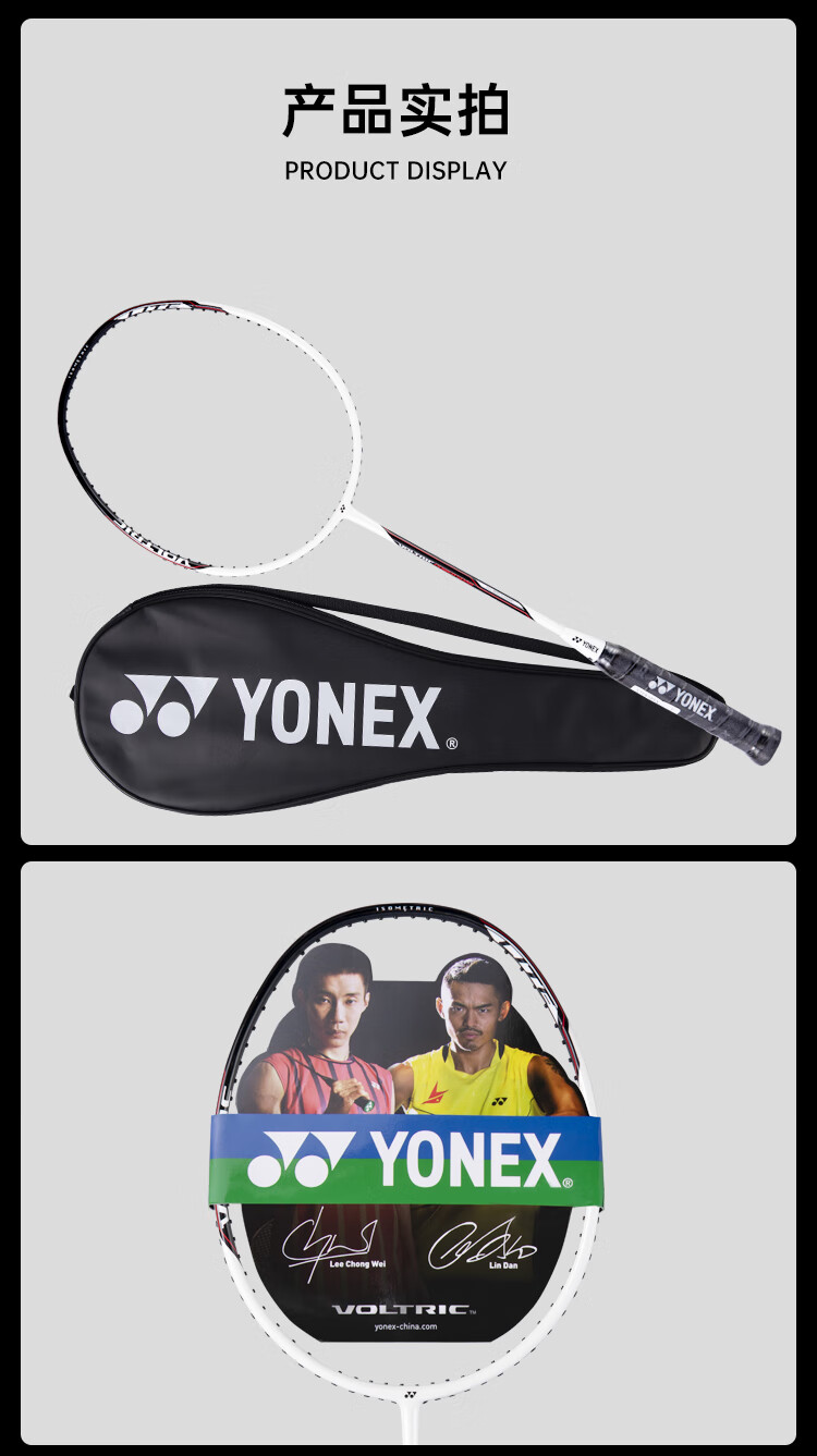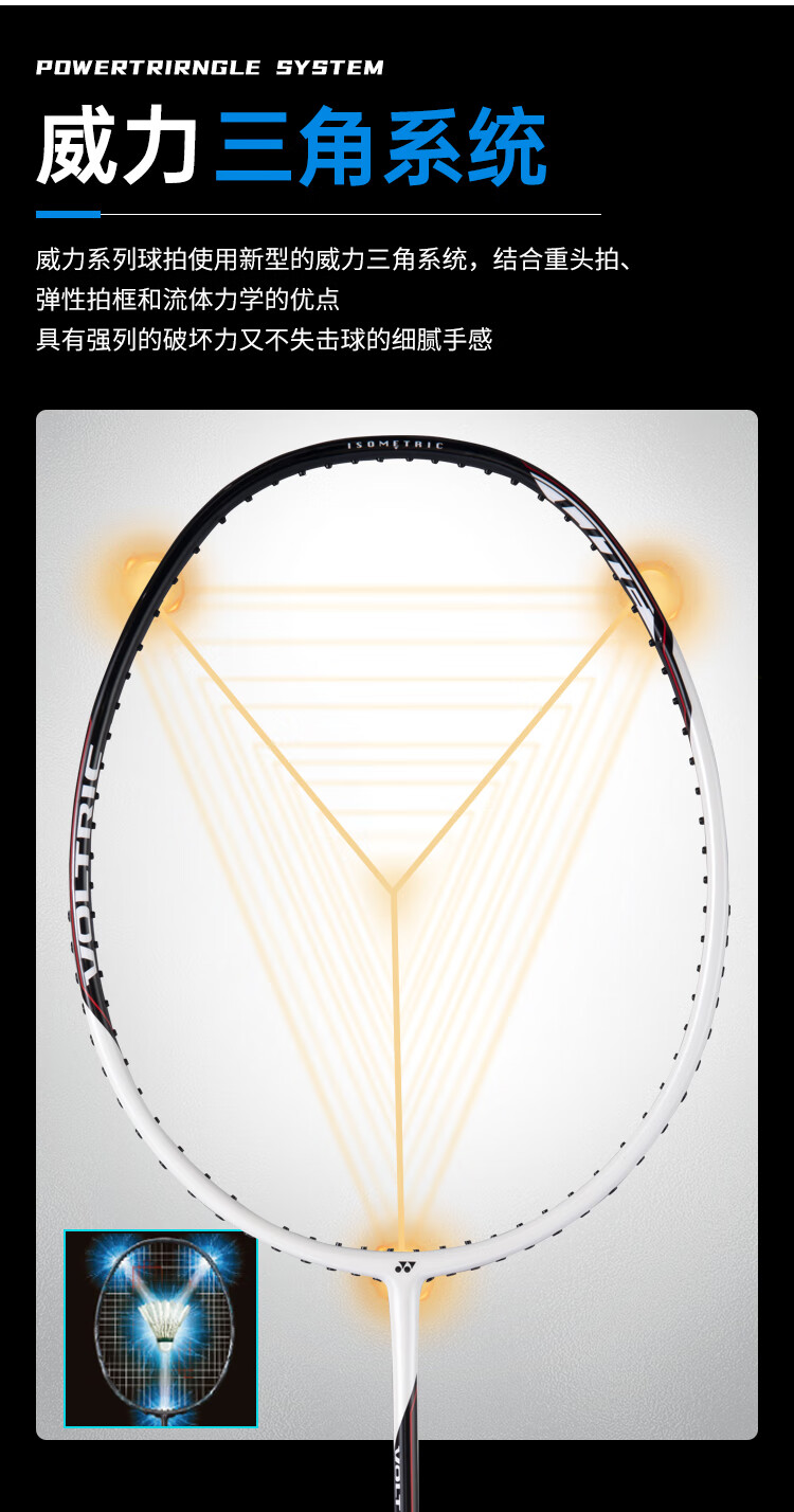 YONEX尤尼克斯羽毛球拍威力进攻全碳素单拍VTPW白色已穿26磅附手胶