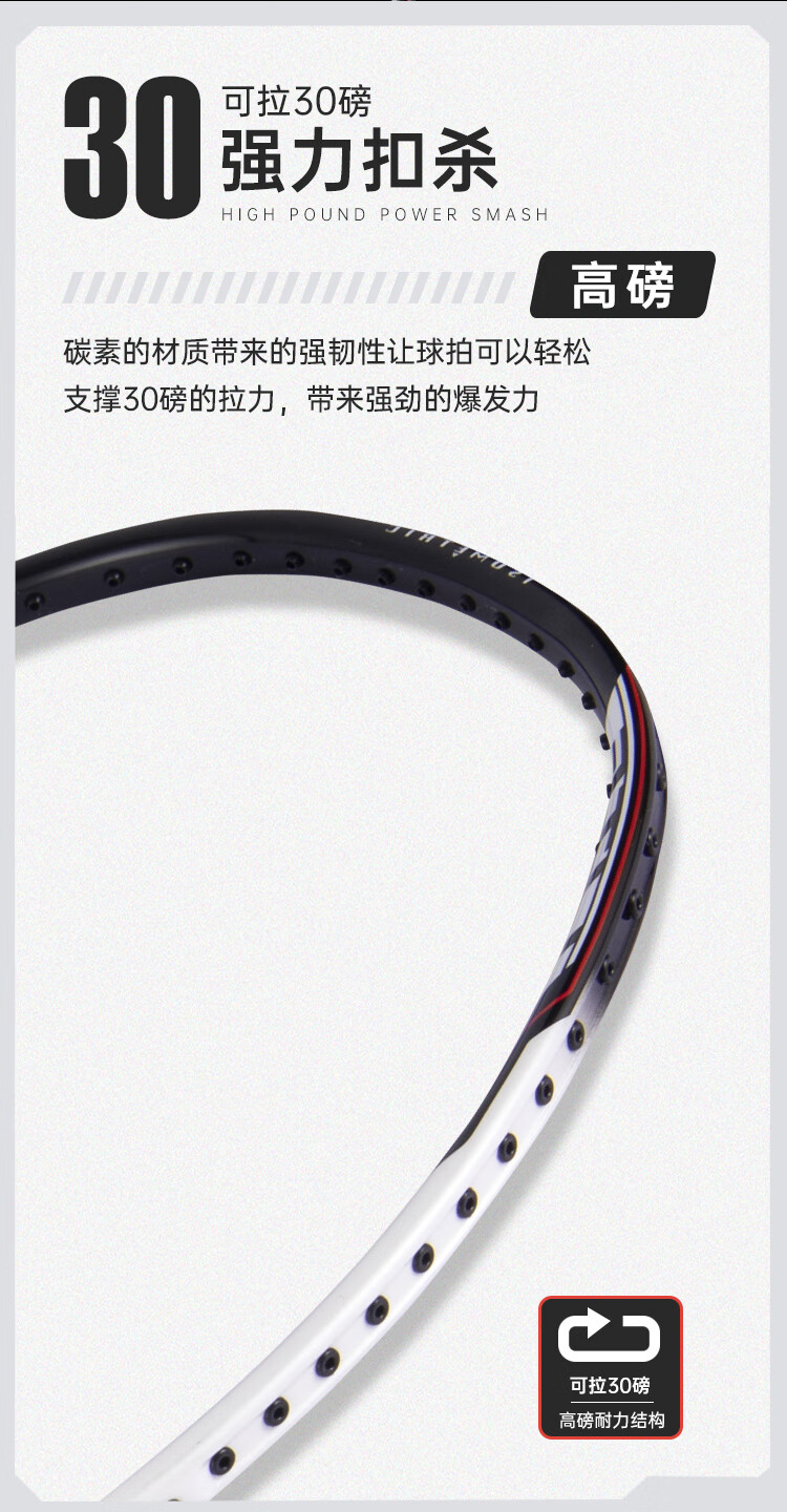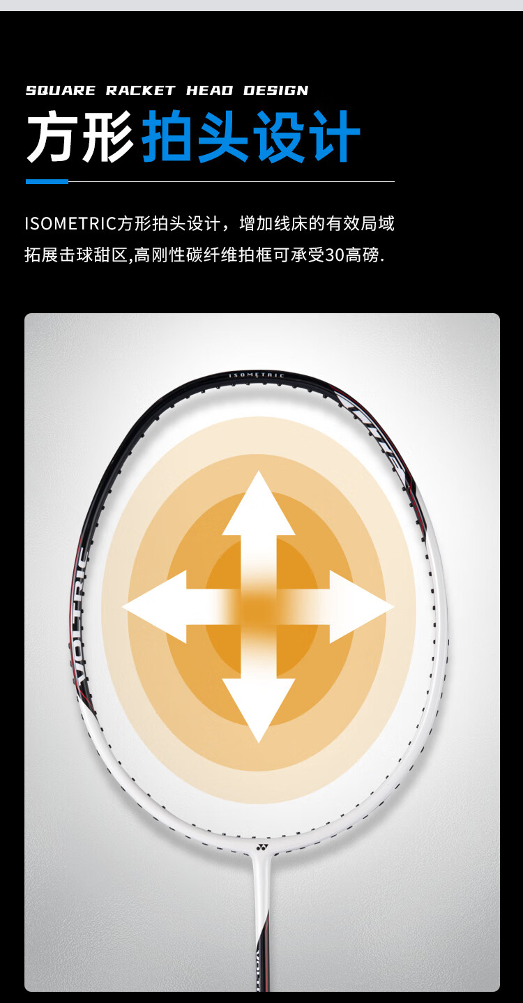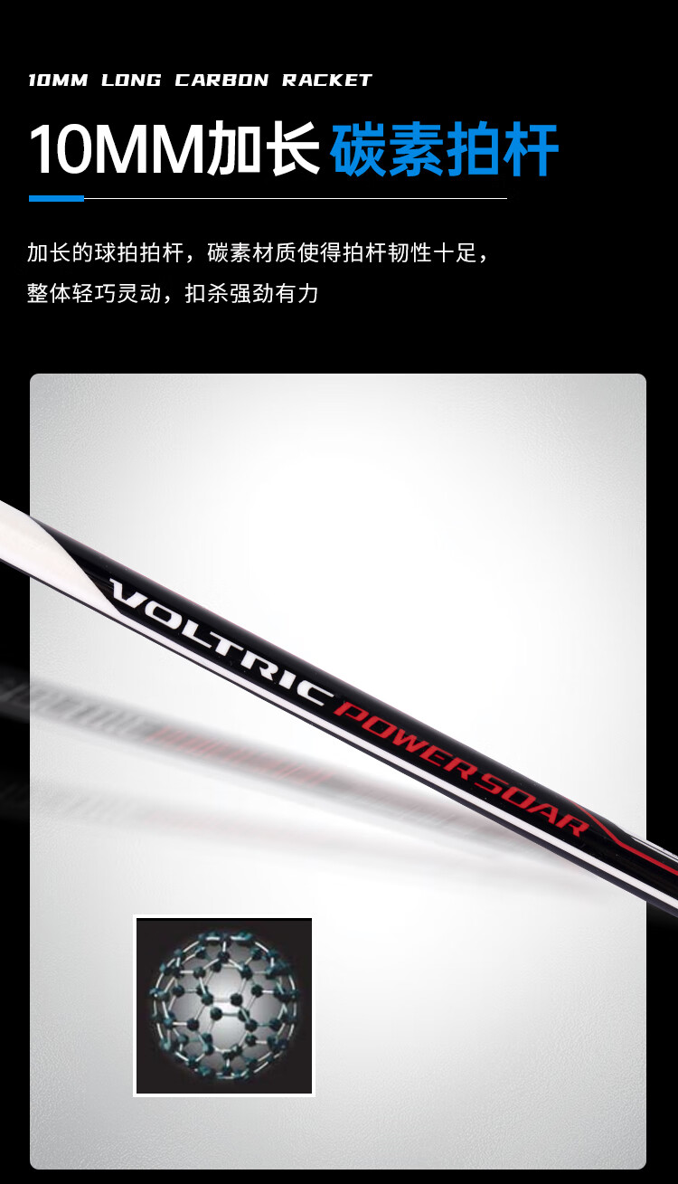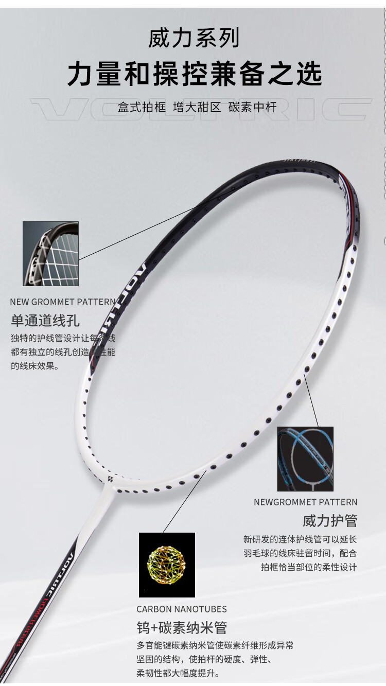 YONEX尤尼克斯羽毛球拍威力进攻全碳素单拍VTPW白色已穿26磅附手胶
