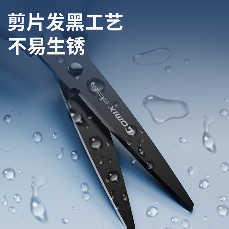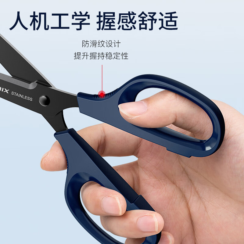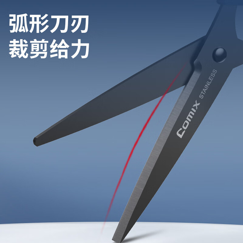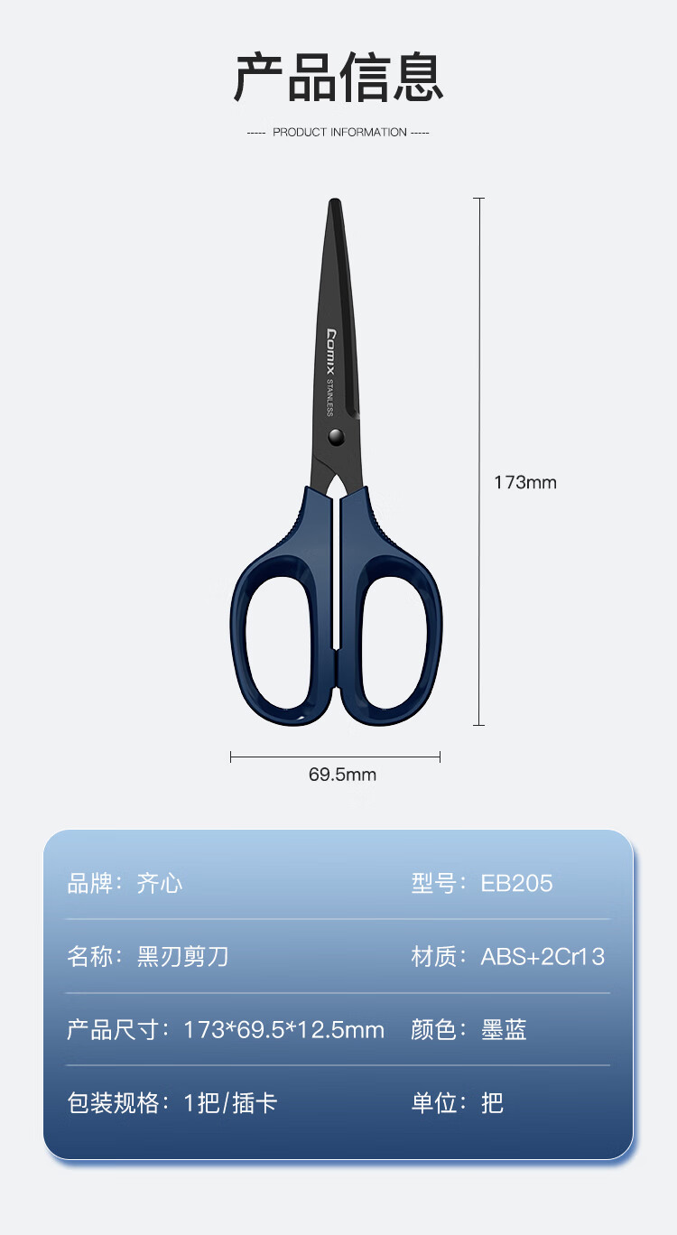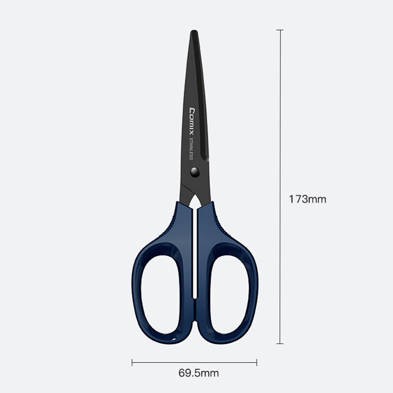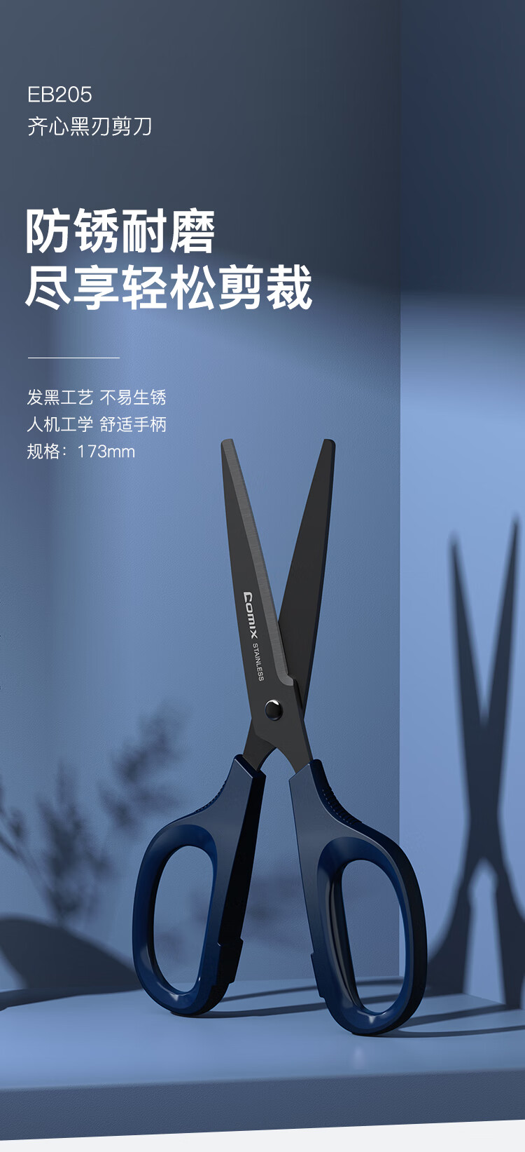 齐心(COMIX)173mm黑刃防锈剪刀 不锈钢中号剪子 省力设计办公用品家用手工DIY工具 墨蓝EB205