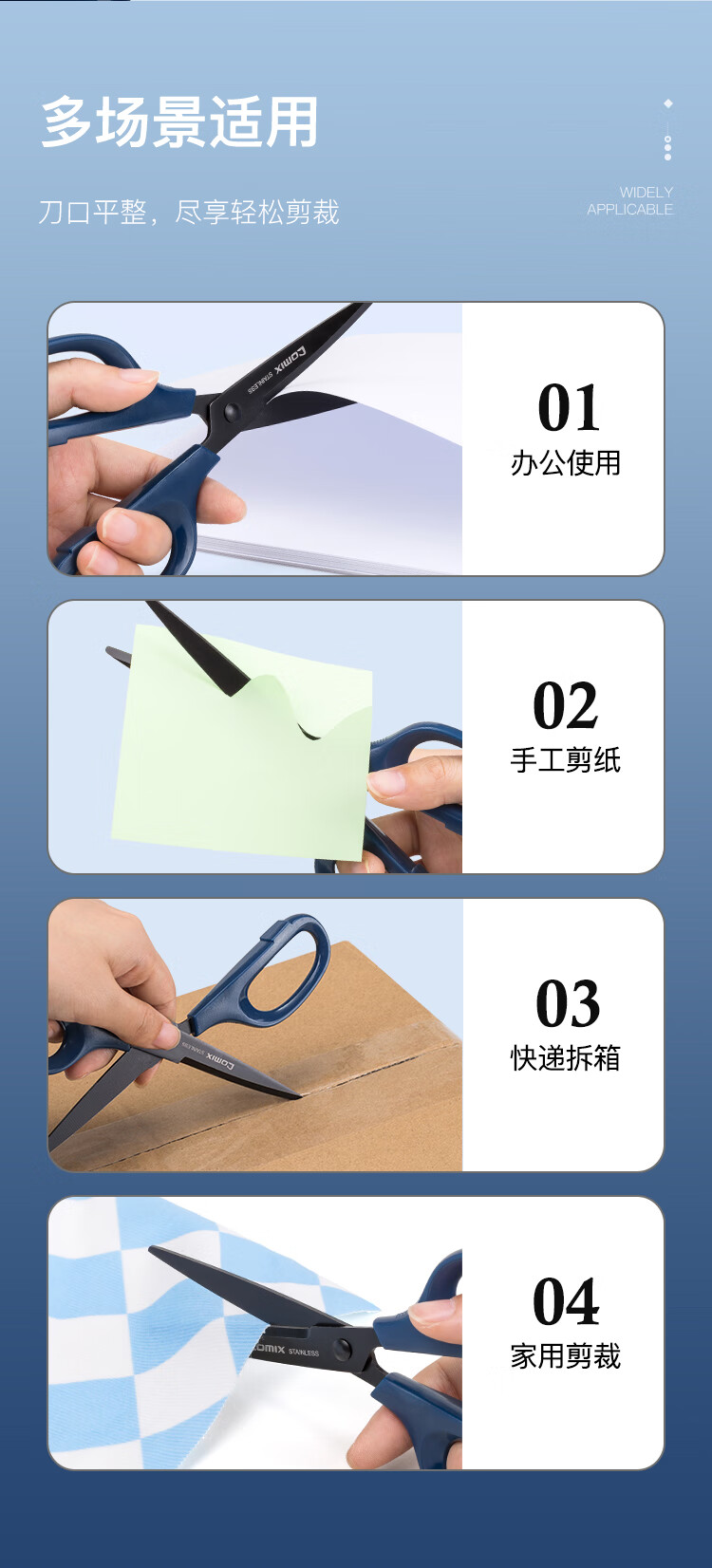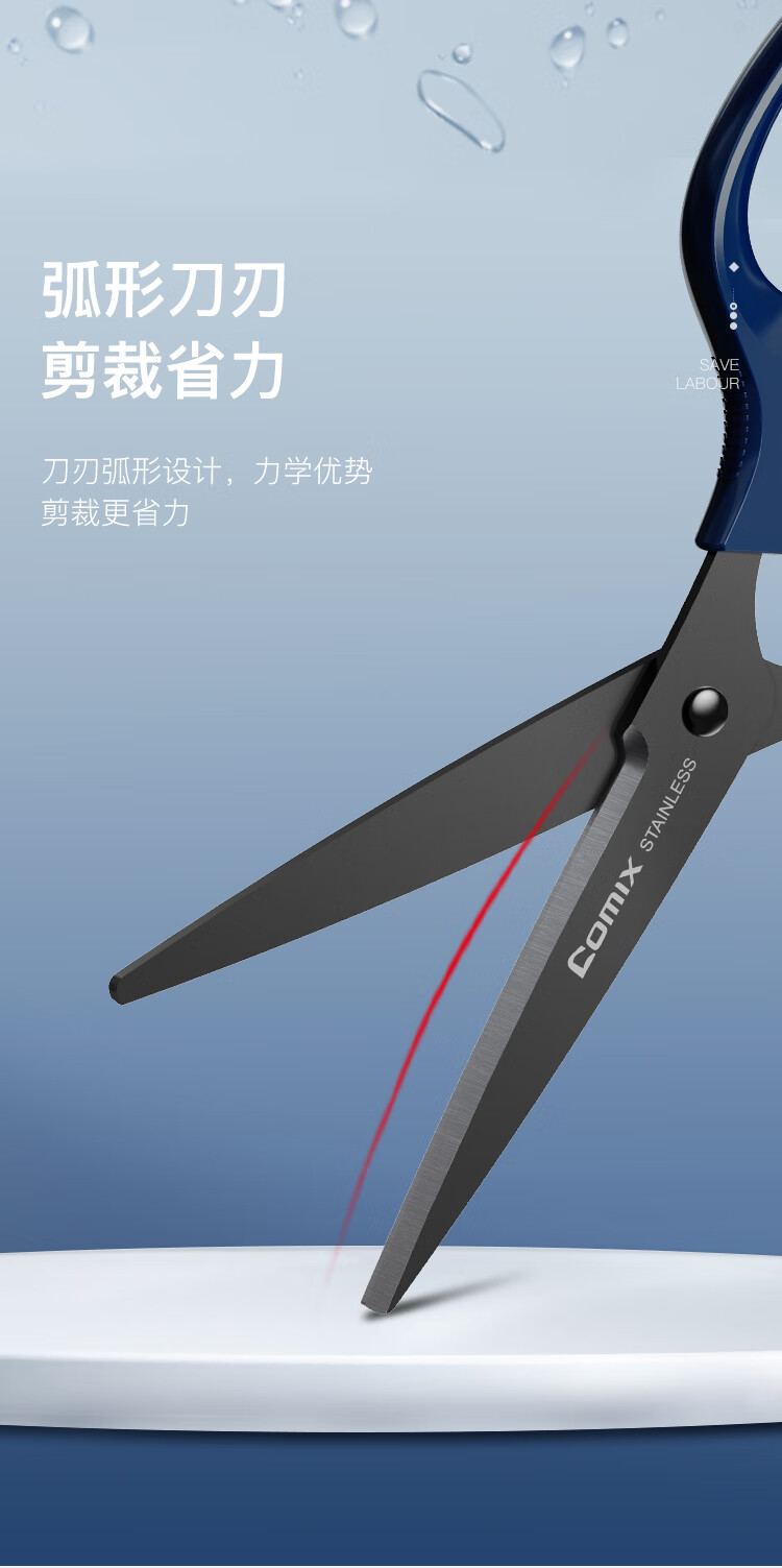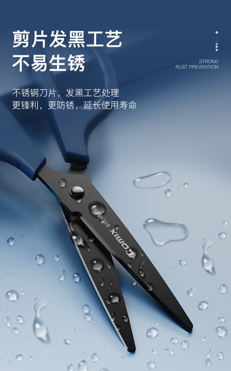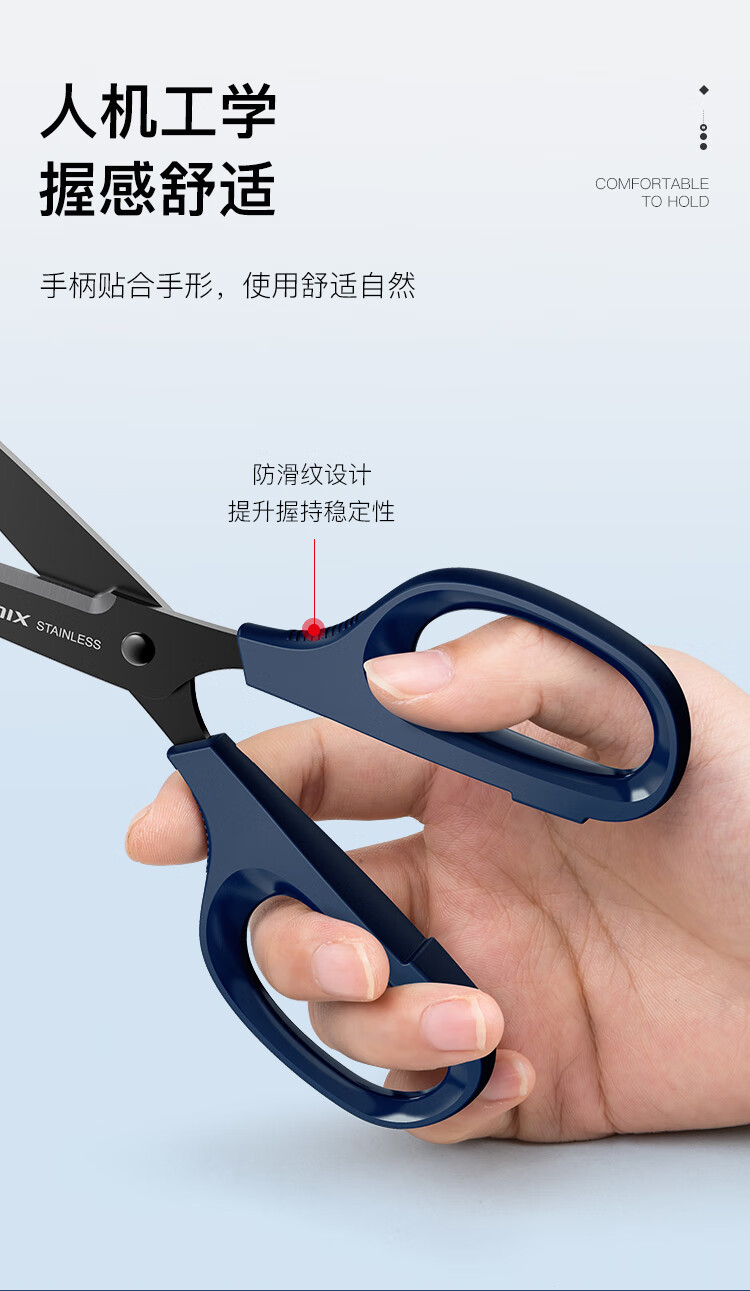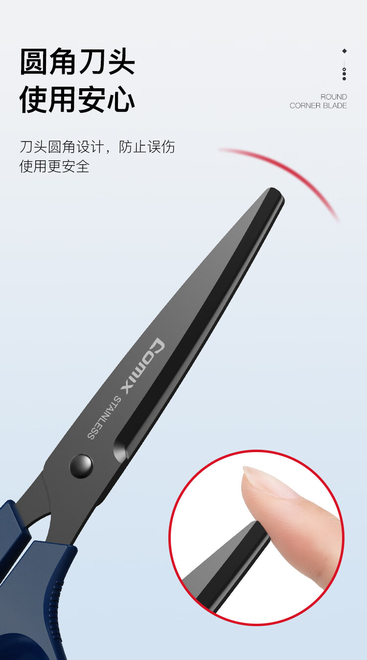 齐心(COMIX)173mm黑刃防锈剪刀 不锈钢中号剪子 省力设计办公用品家用手工DIY工具 墨蓝EB205