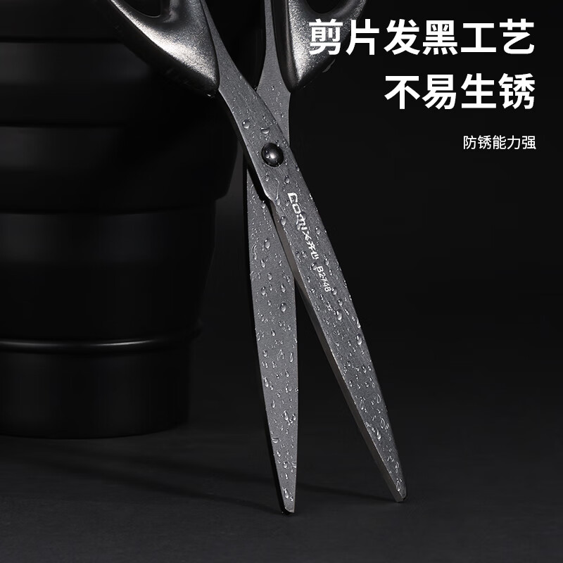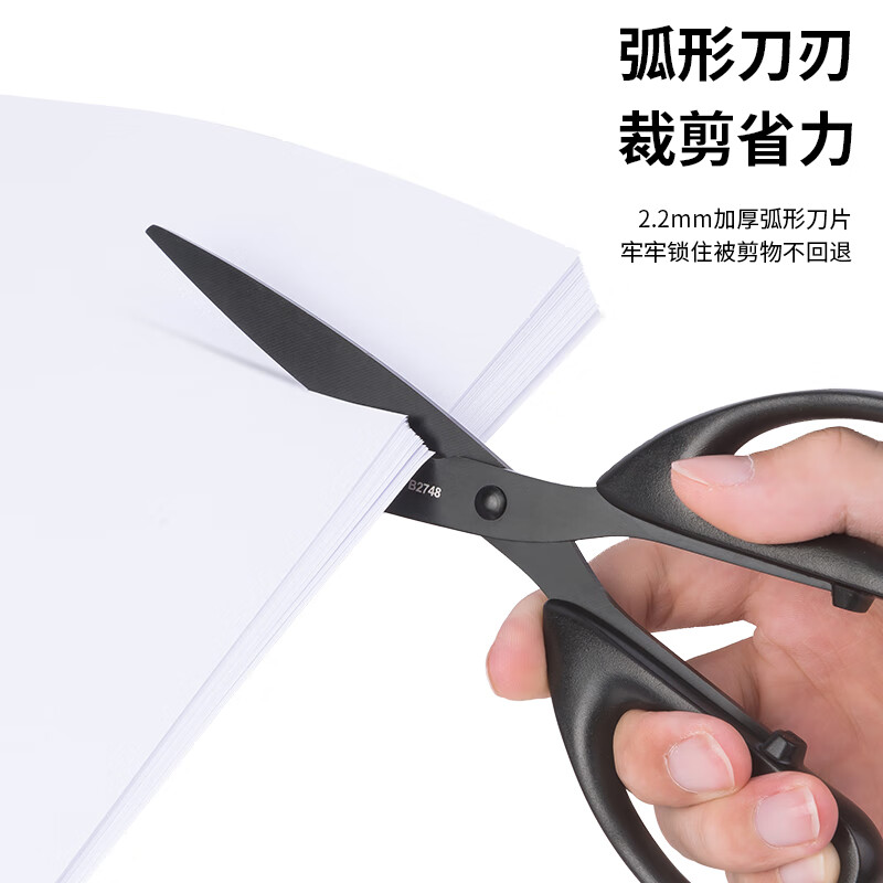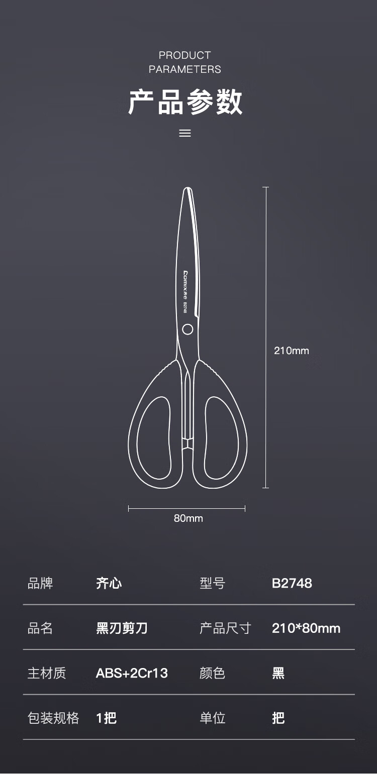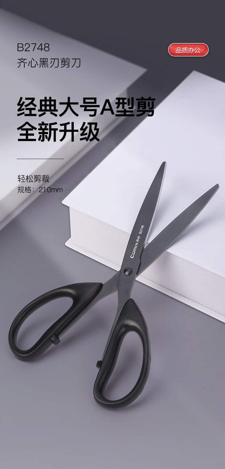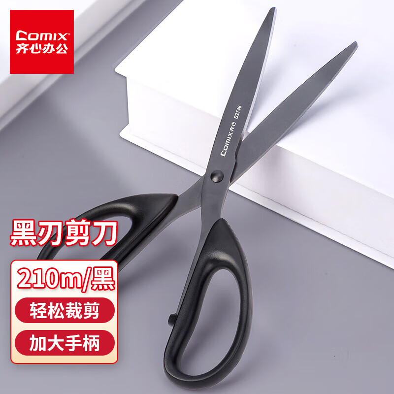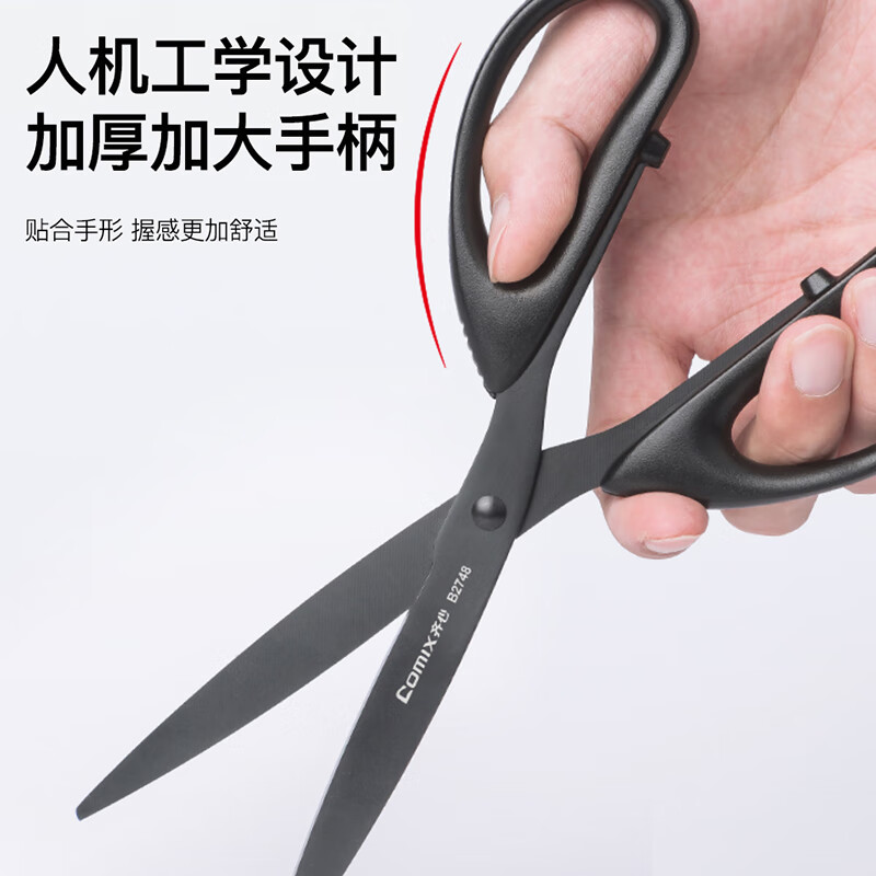 齐心(Comix)剪刀黑刃耐磨 学生剪纸刀大号210mm办公家用剪刀不锈钢刀刃不易粘防锈省力结构 B2748