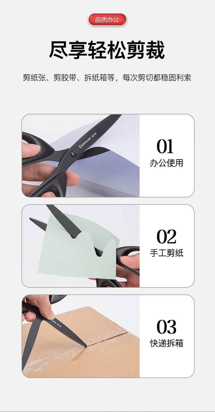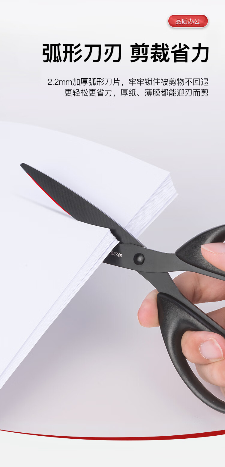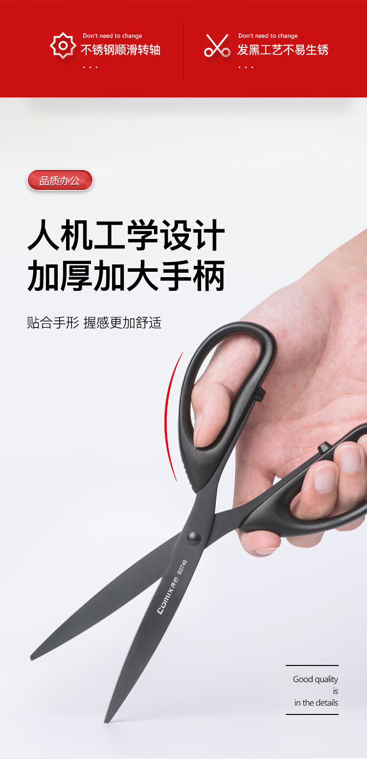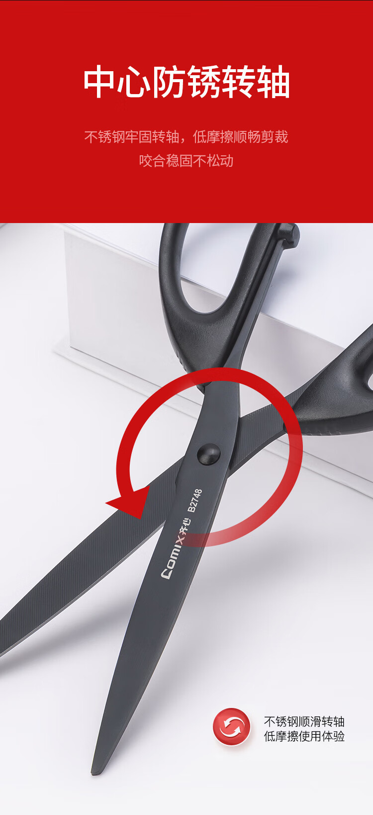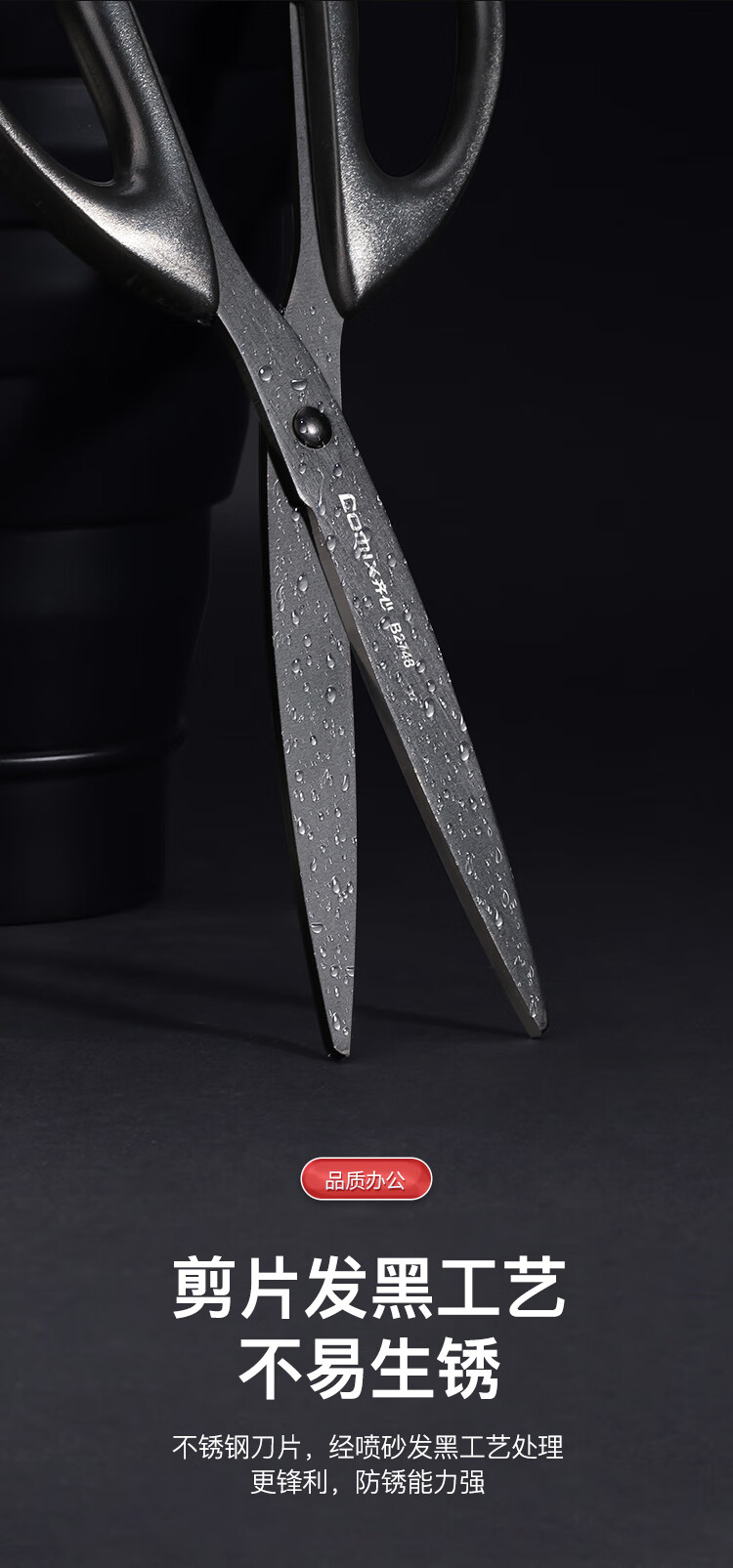 齐心(Comix)剪刀黑刃耐磨 学生剪纸刀大号210mm办公家用剪刀不锈钢刀刃不易粘防锈省力结构 B2748