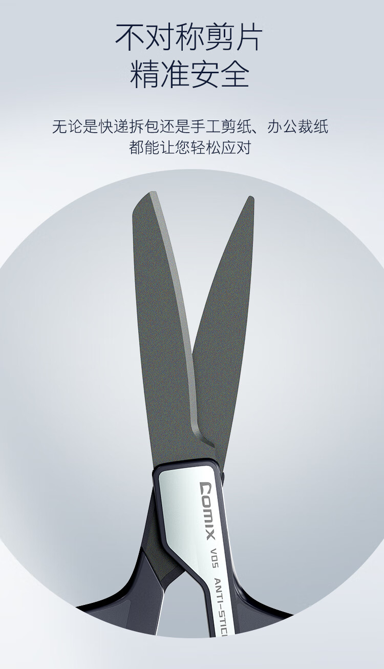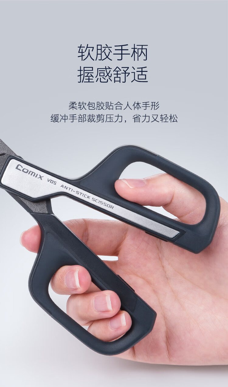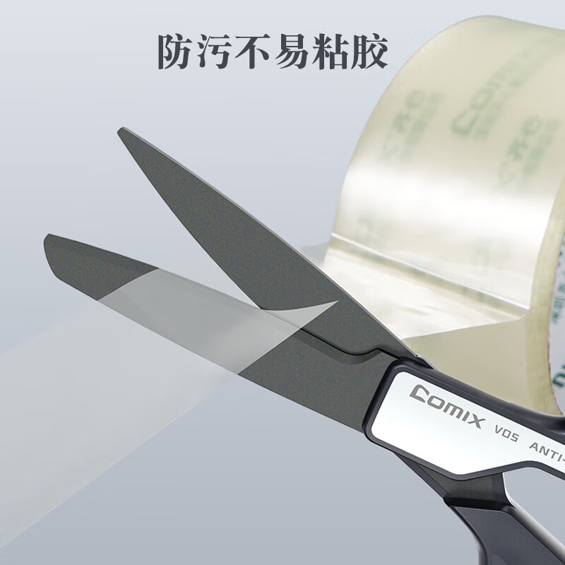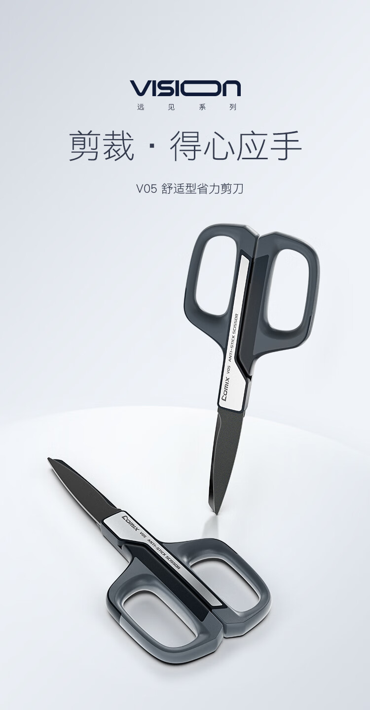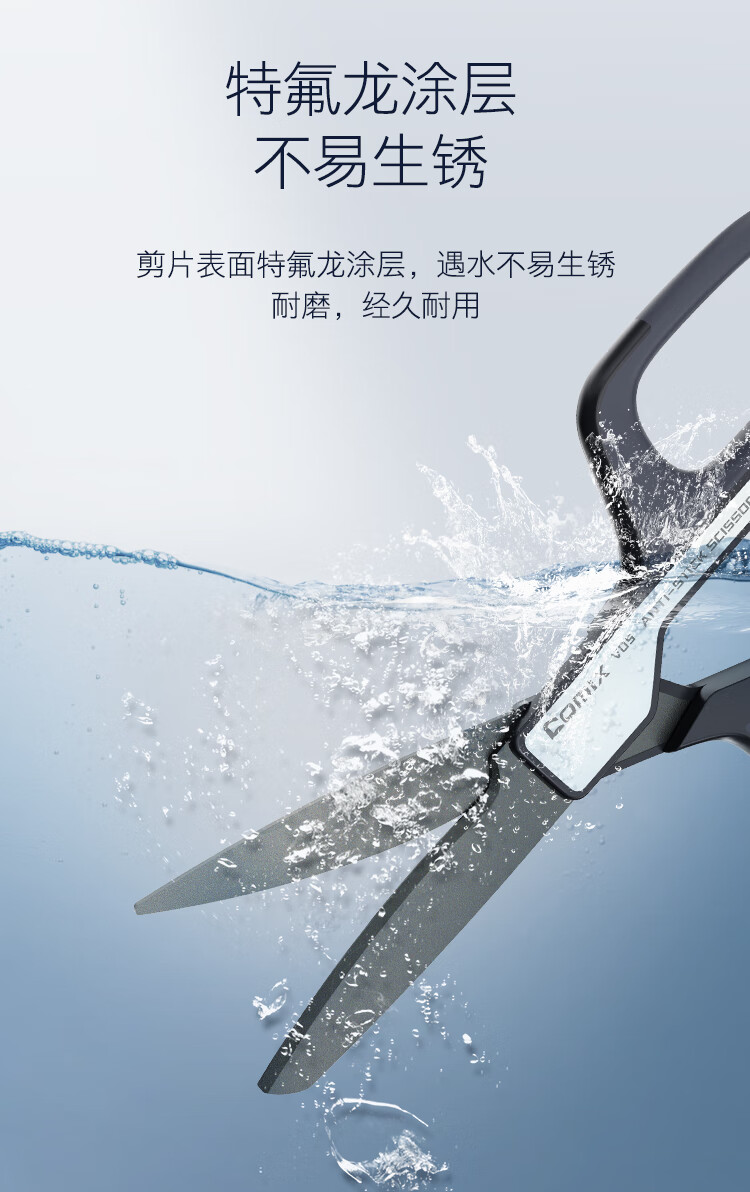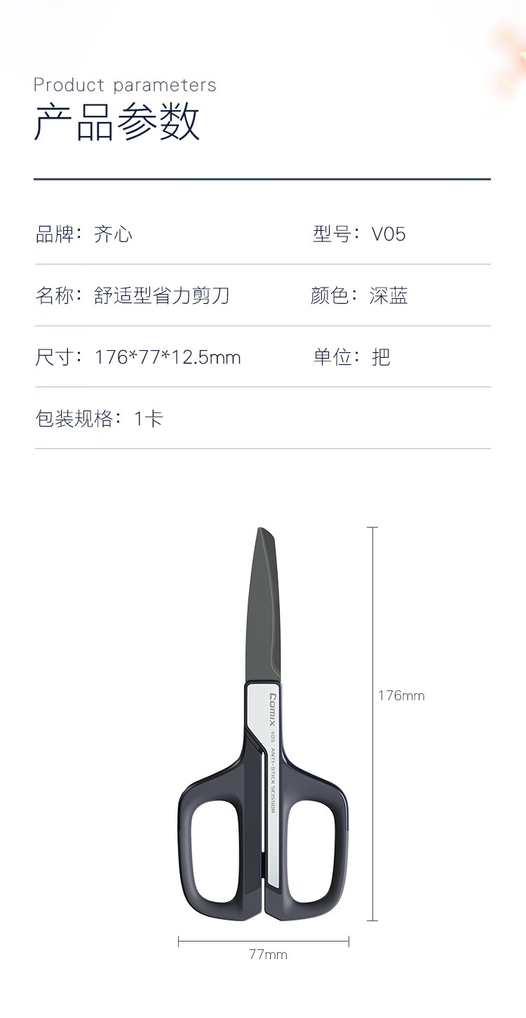 齐心(COMIX)特氟龙省力剪刀 弧形剪片省力设计办公文具/家用 176mm深蓝 远见系列V05