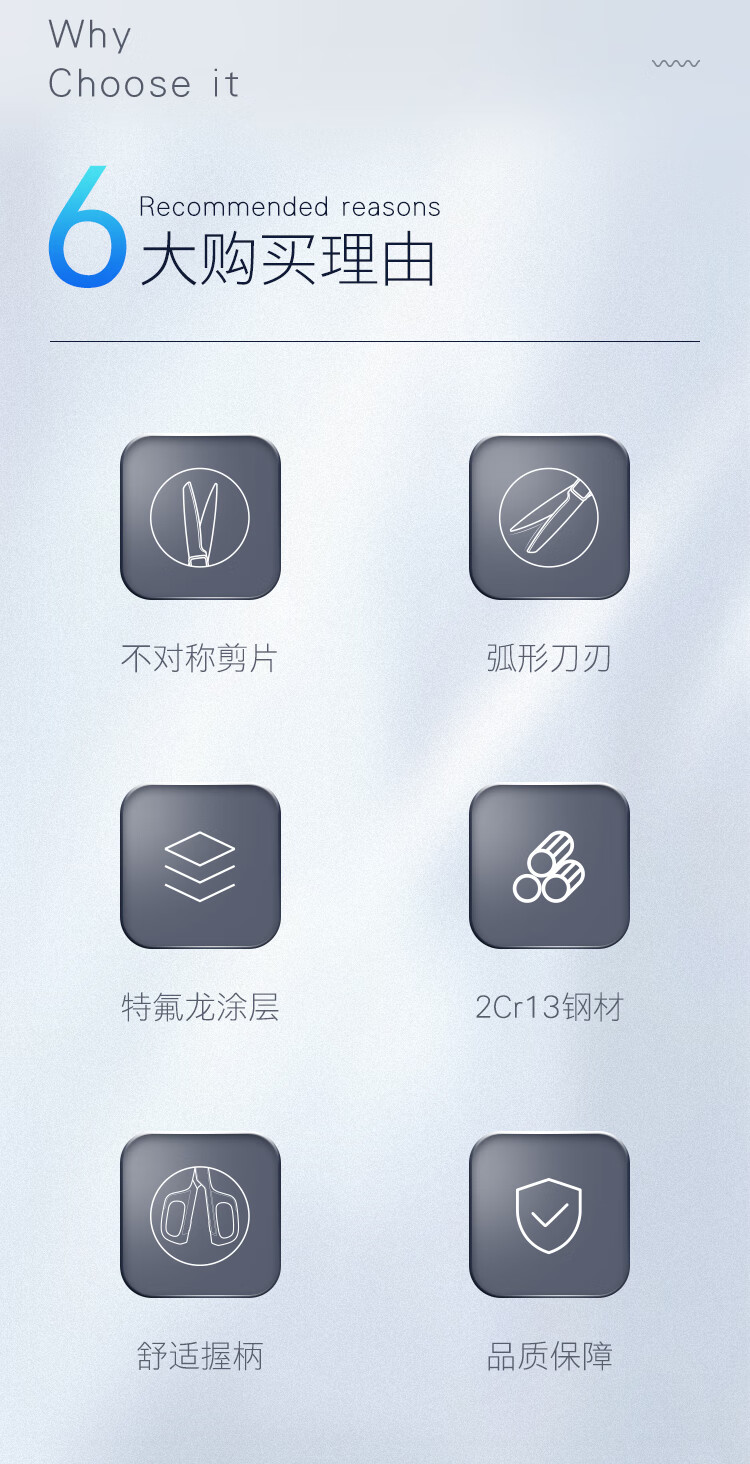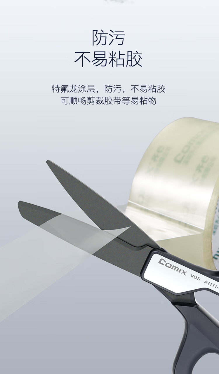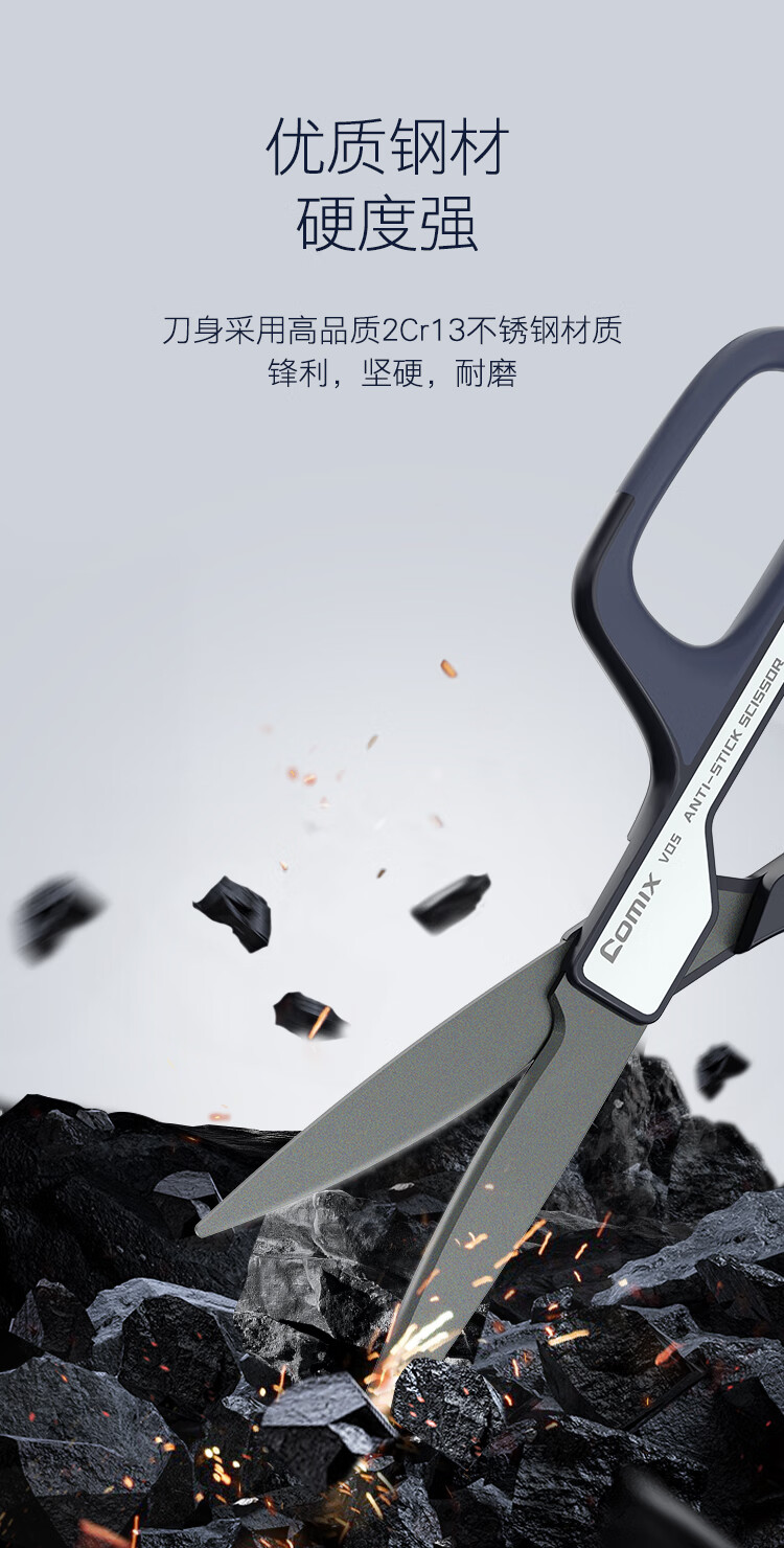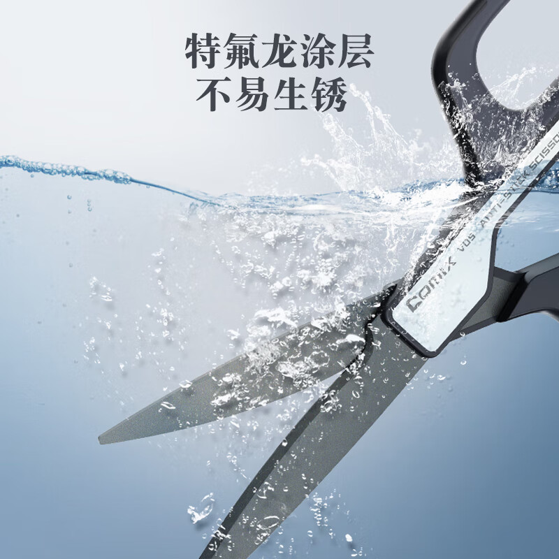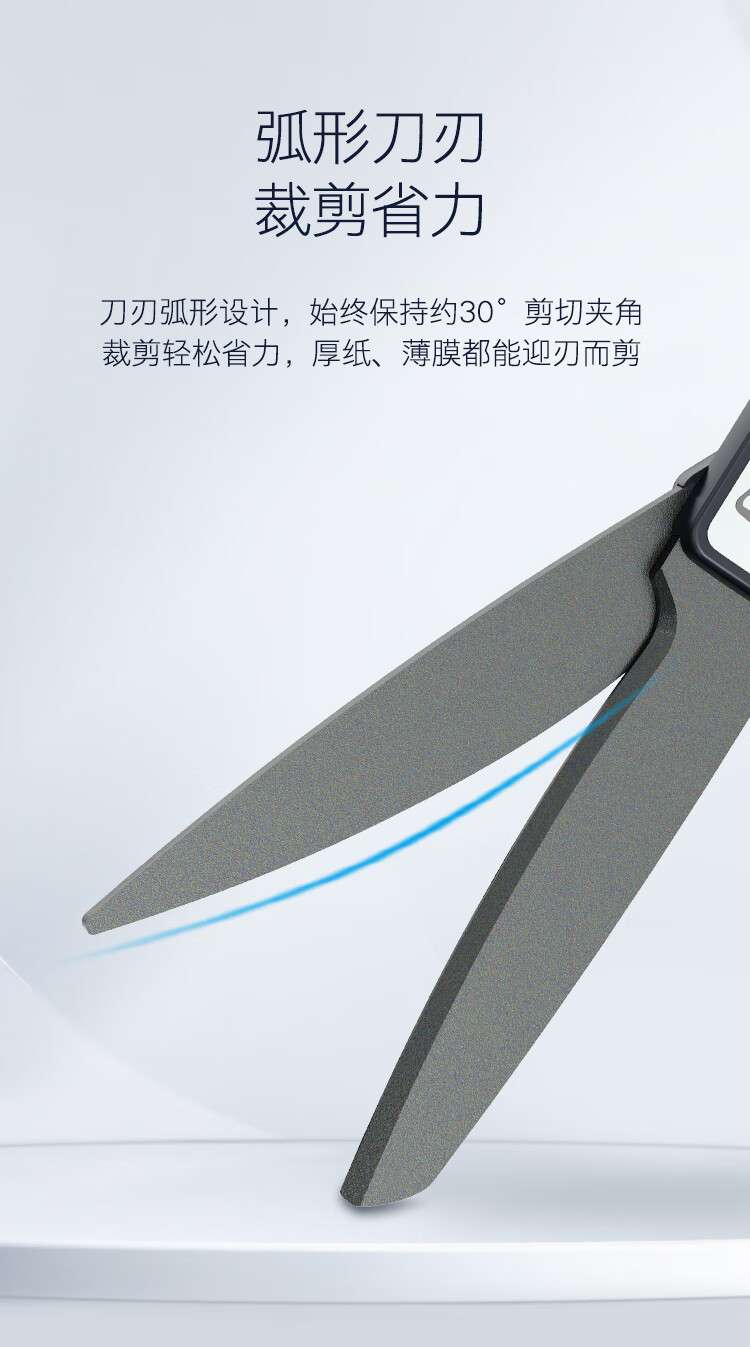 齐心(COMIX)特氟龙省力剪刀 弧形剪片省力设计办公文具/家用 176mm深蓝 远见系列V05