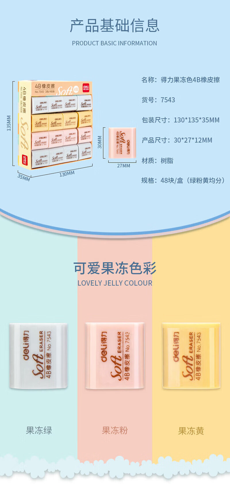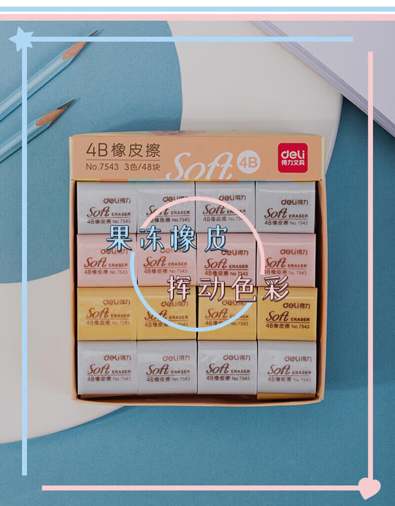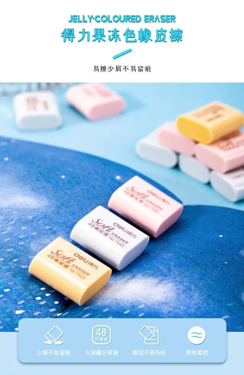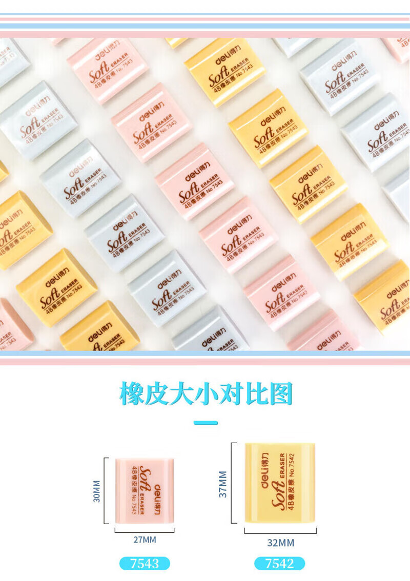 得力(deli)美术儿童学生橡皮 7543多彩橡皮(混)(1块装)