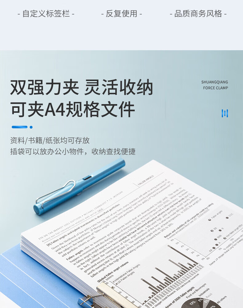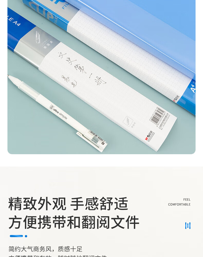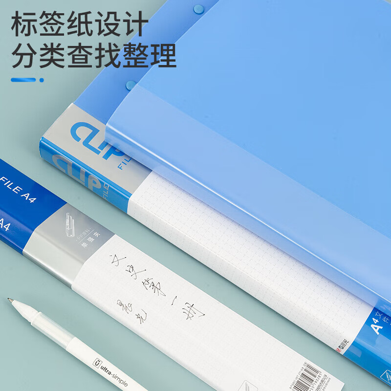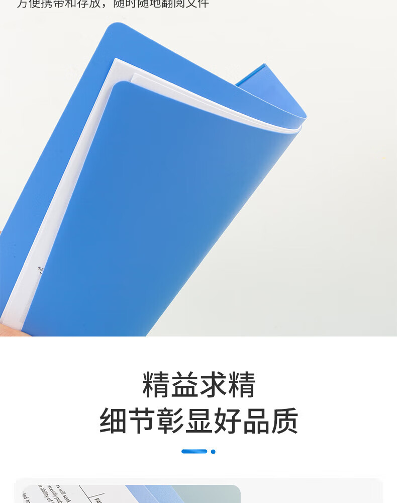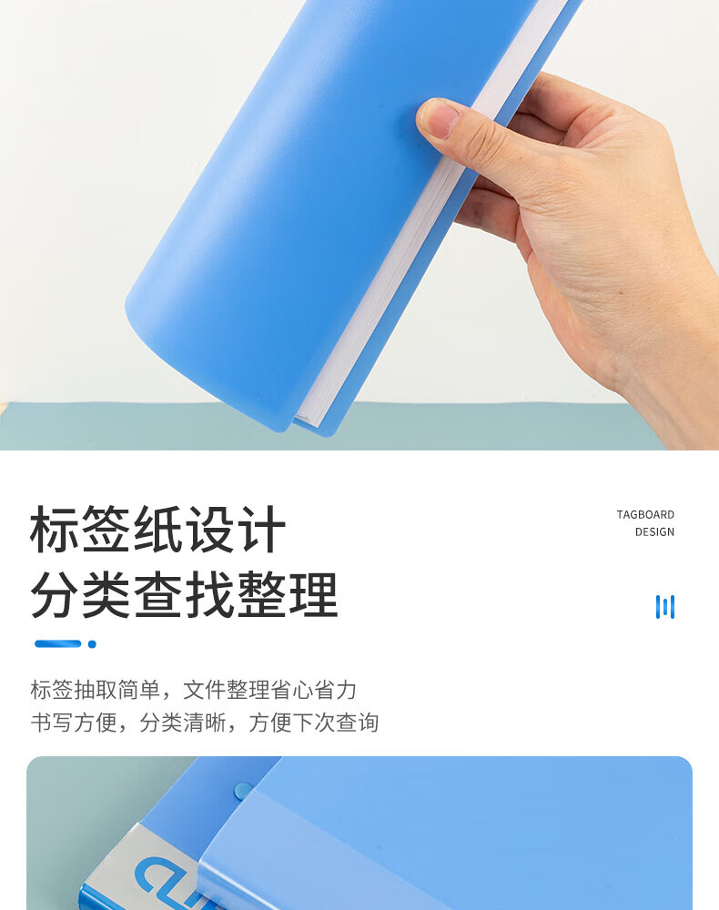 齐心(COMIX)A4/60页资料册文件夹插页袋文件册活页夹多页夹档案学生试卷科目收纳袋 办公文件保护 蓝色EA2006