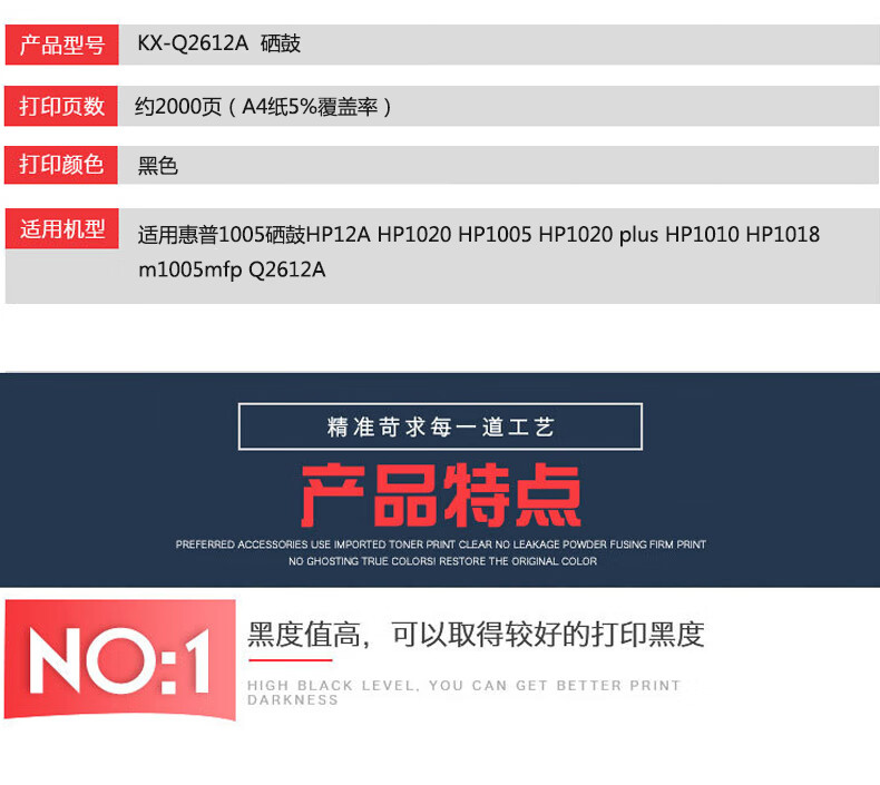 凯欣KX-Q2612A硒鼓适用惠普1005硒鼓HP12A HP1020易加粉HP1005 HP1020