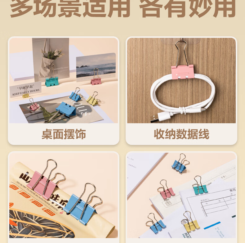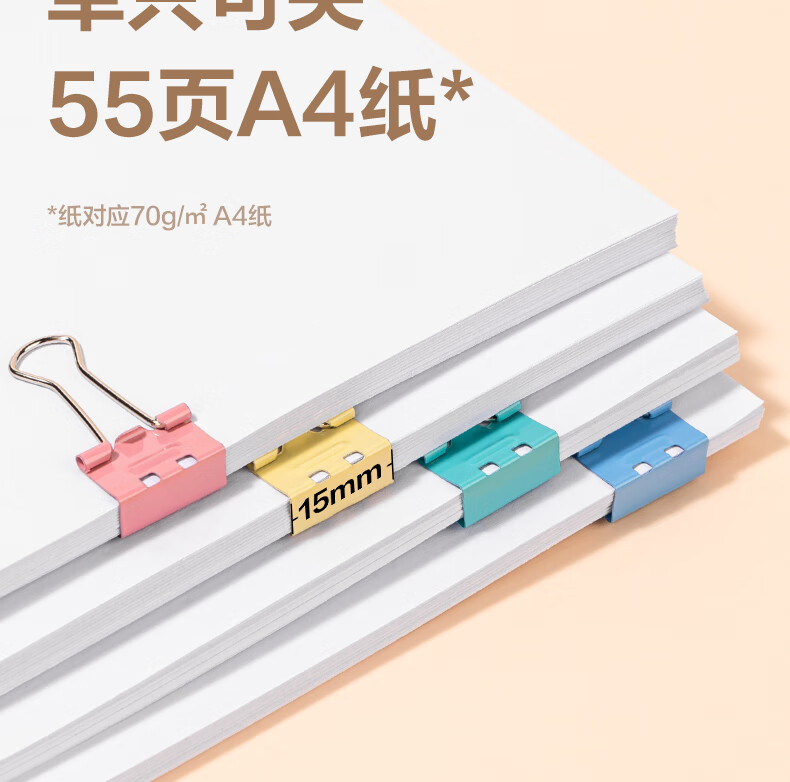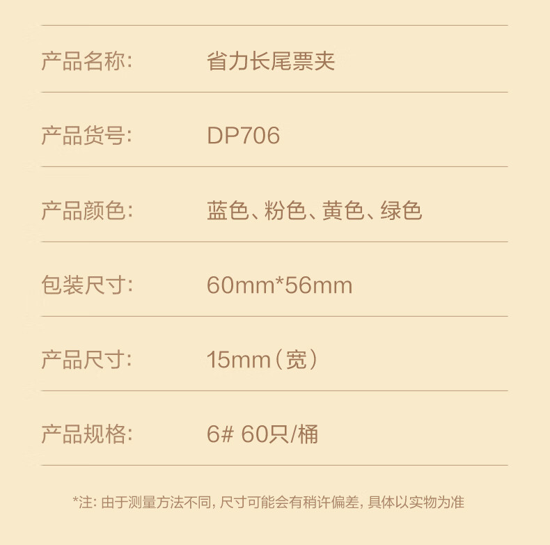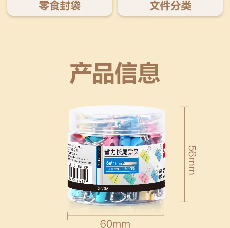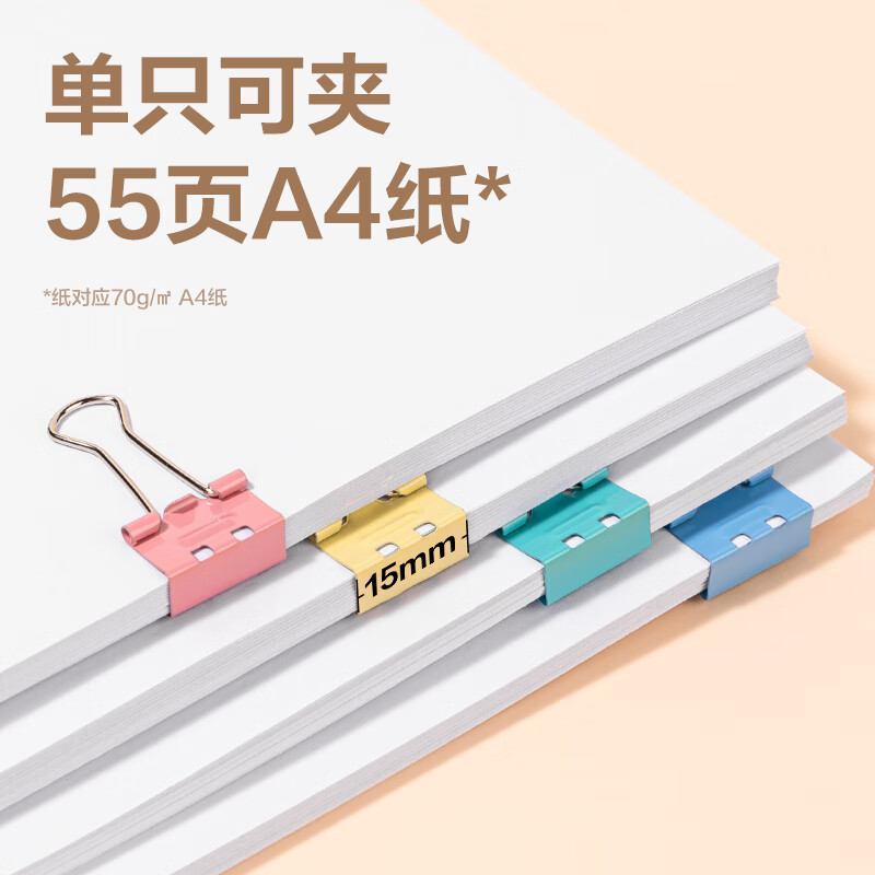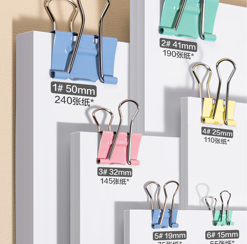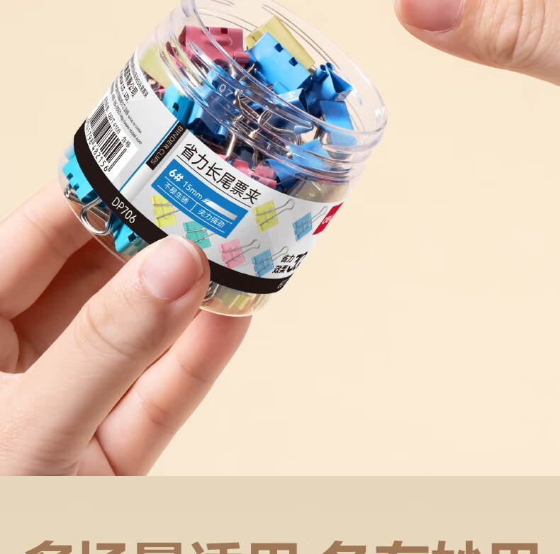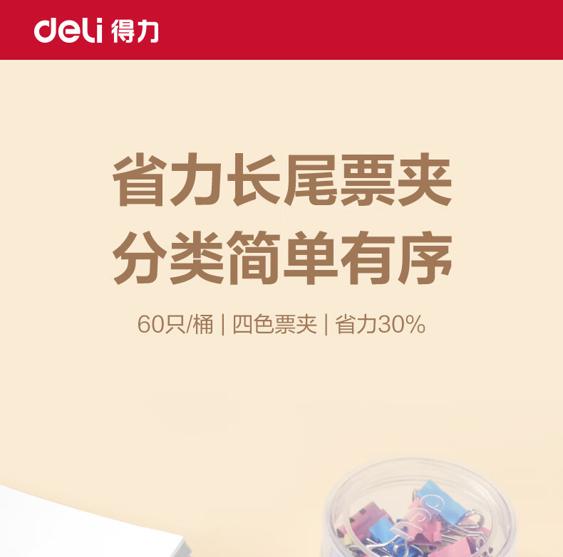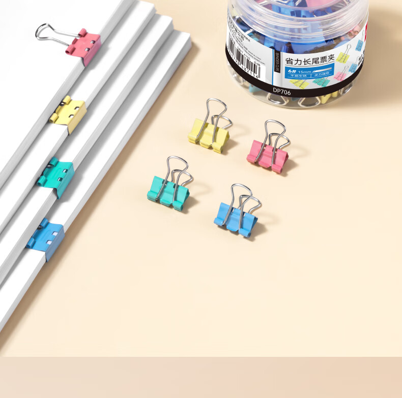 得力 文具 省力长尾票夹6#15mm DP706 混 60枚/筒