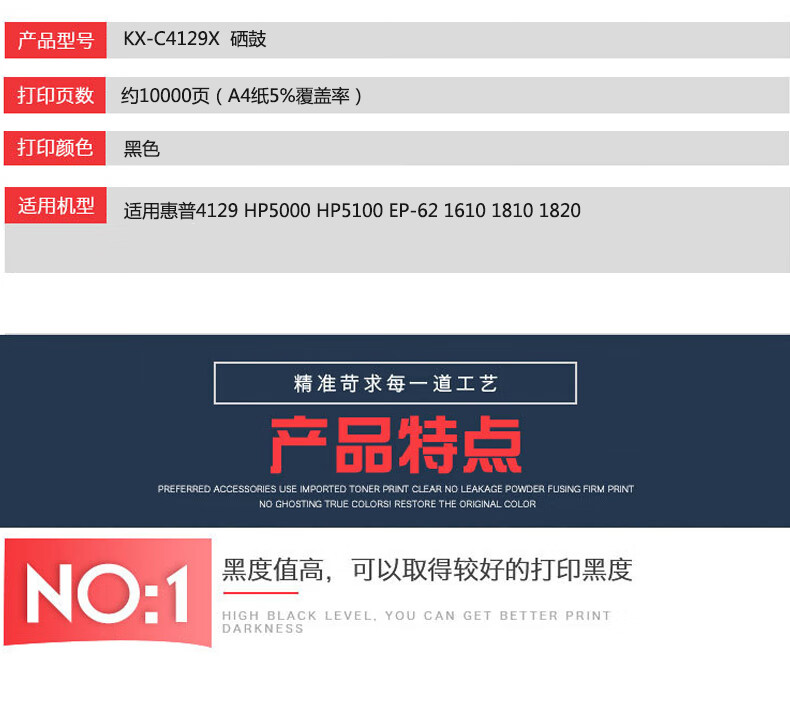 凯欣KX-C4129X硒鼓 适用惠普HP5000 HP5100佳能EP-62 1610 1810 1820