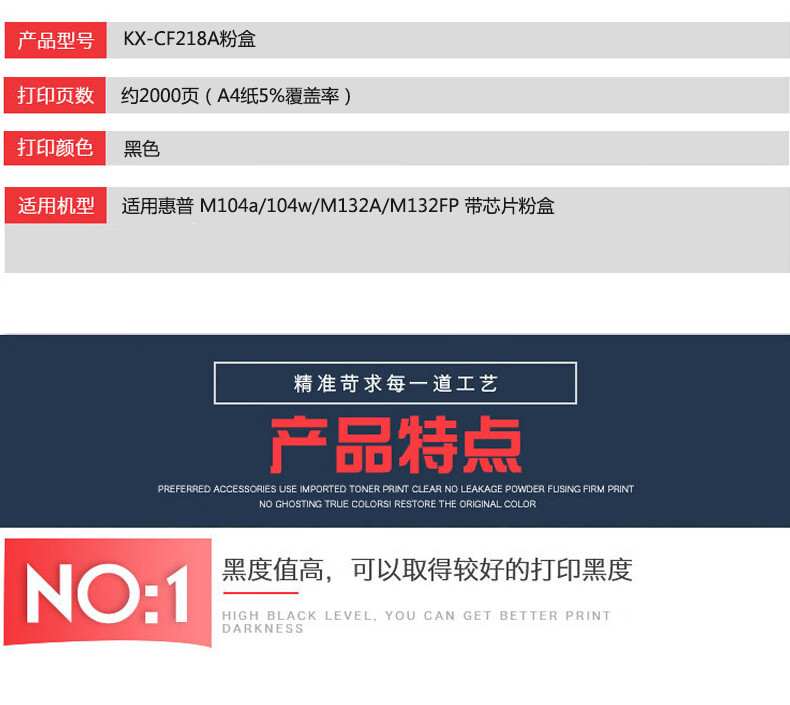 凯欣KX-CF218A粉盒 适用惠普 M104a/104w/M132A/M132FP 带芯片