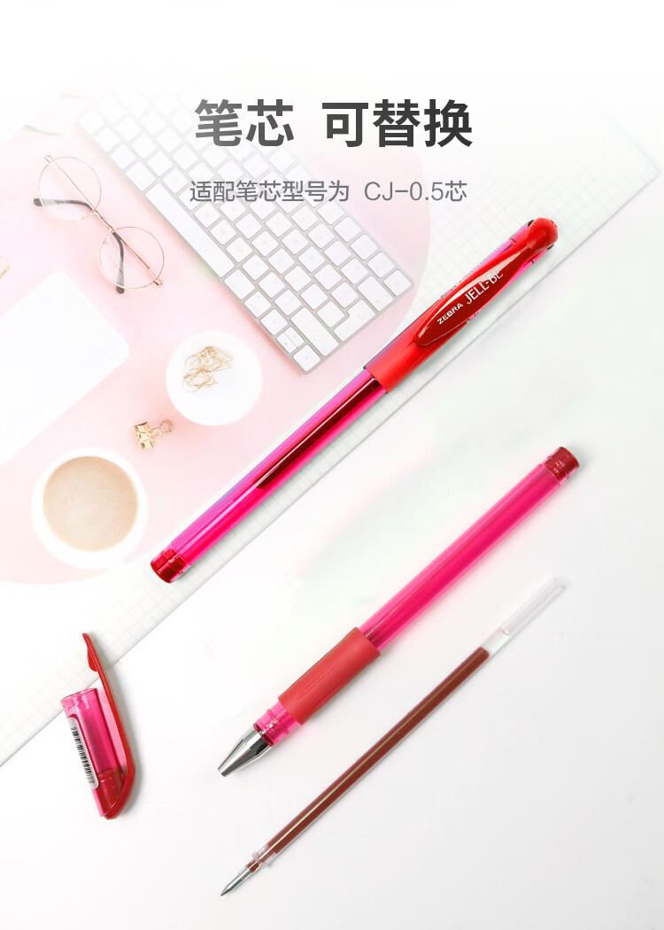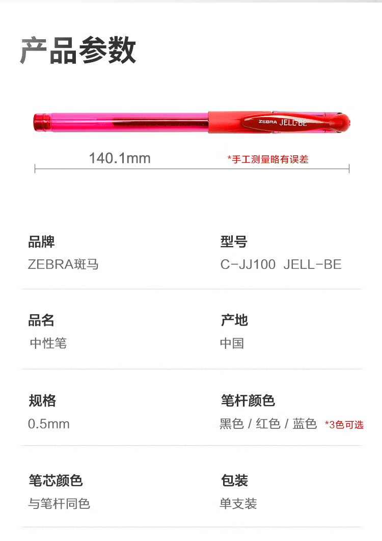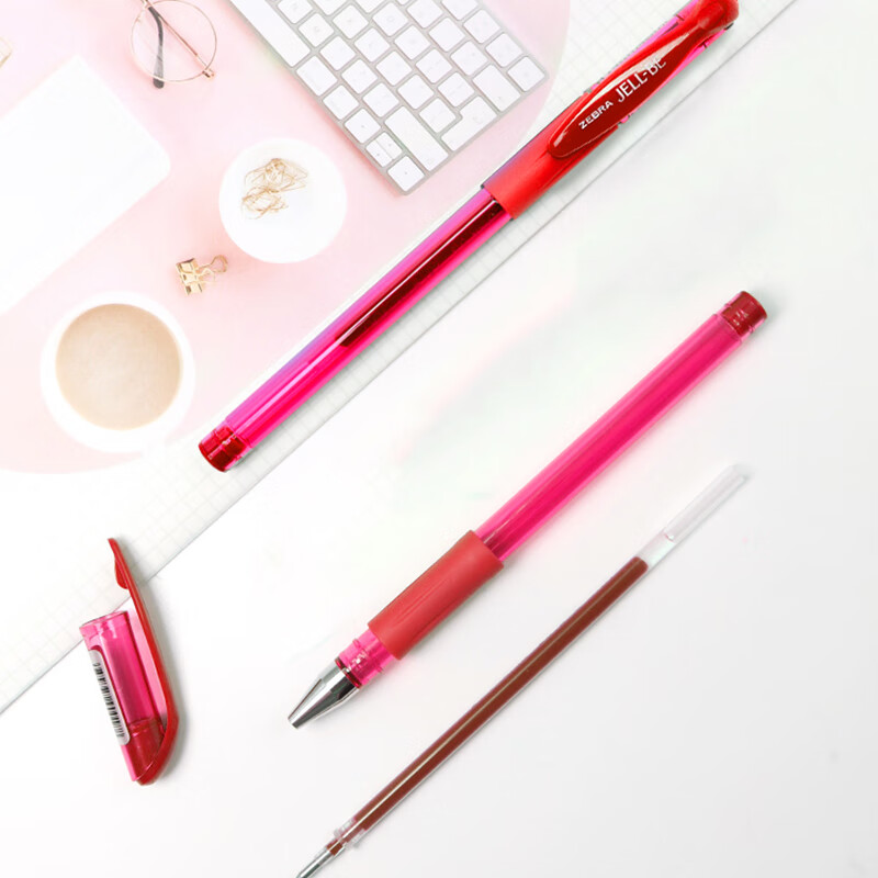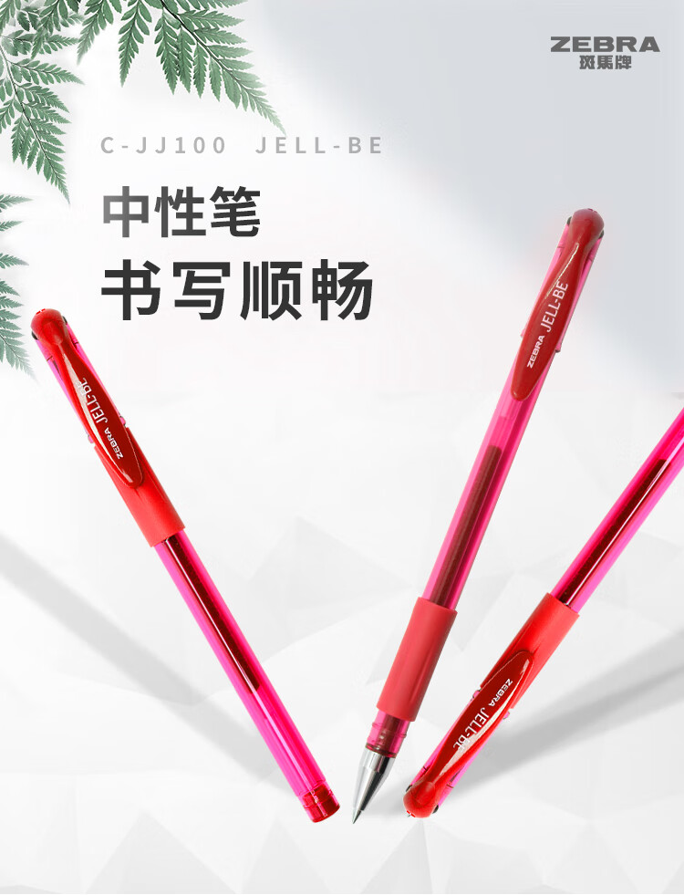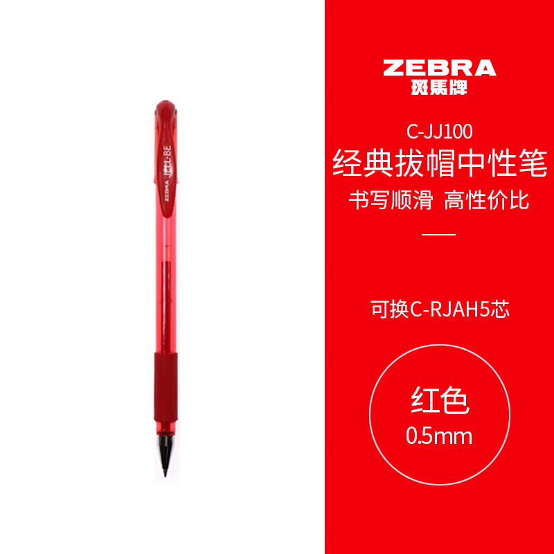 斑马牌(ZEBRA)中性笔 0.5mm子弹头签字笔 学生标记笔走珠水性笔 C-JJ100 JELL-BE 红色 单支装