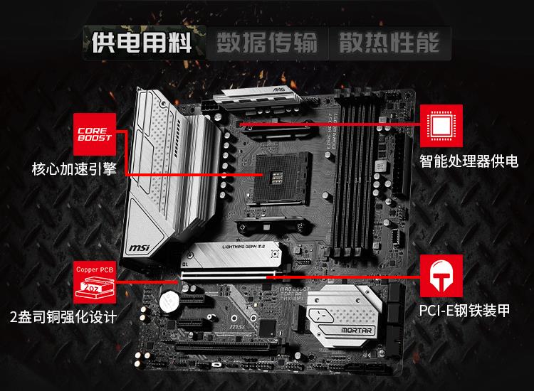 微星(MSI)MAG B550M MORTAR MAX WIFI迫击炮电脑主板 支持CPU5600X/5800X/5600G (AMD B550/Socket AM4)