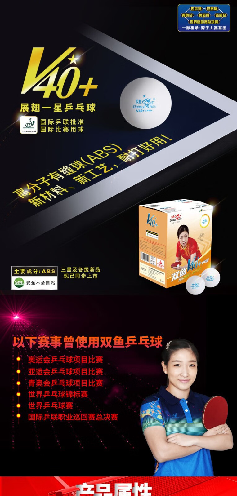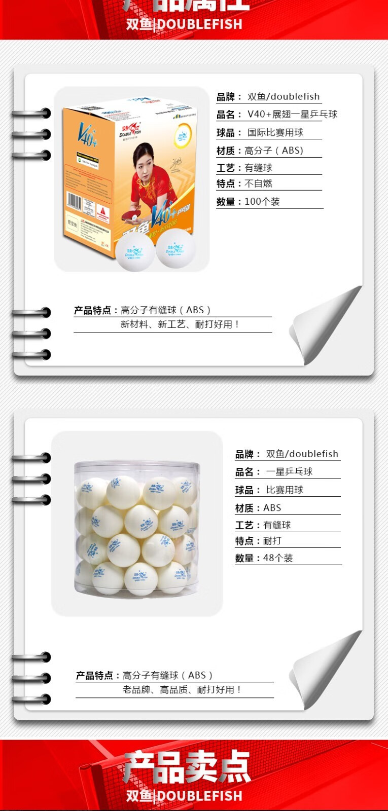 双鱼(DOUBLE FISH)乒乓球V40+展翅一星有缝球训练比赛乒乓球 白色一星球100个-盒装