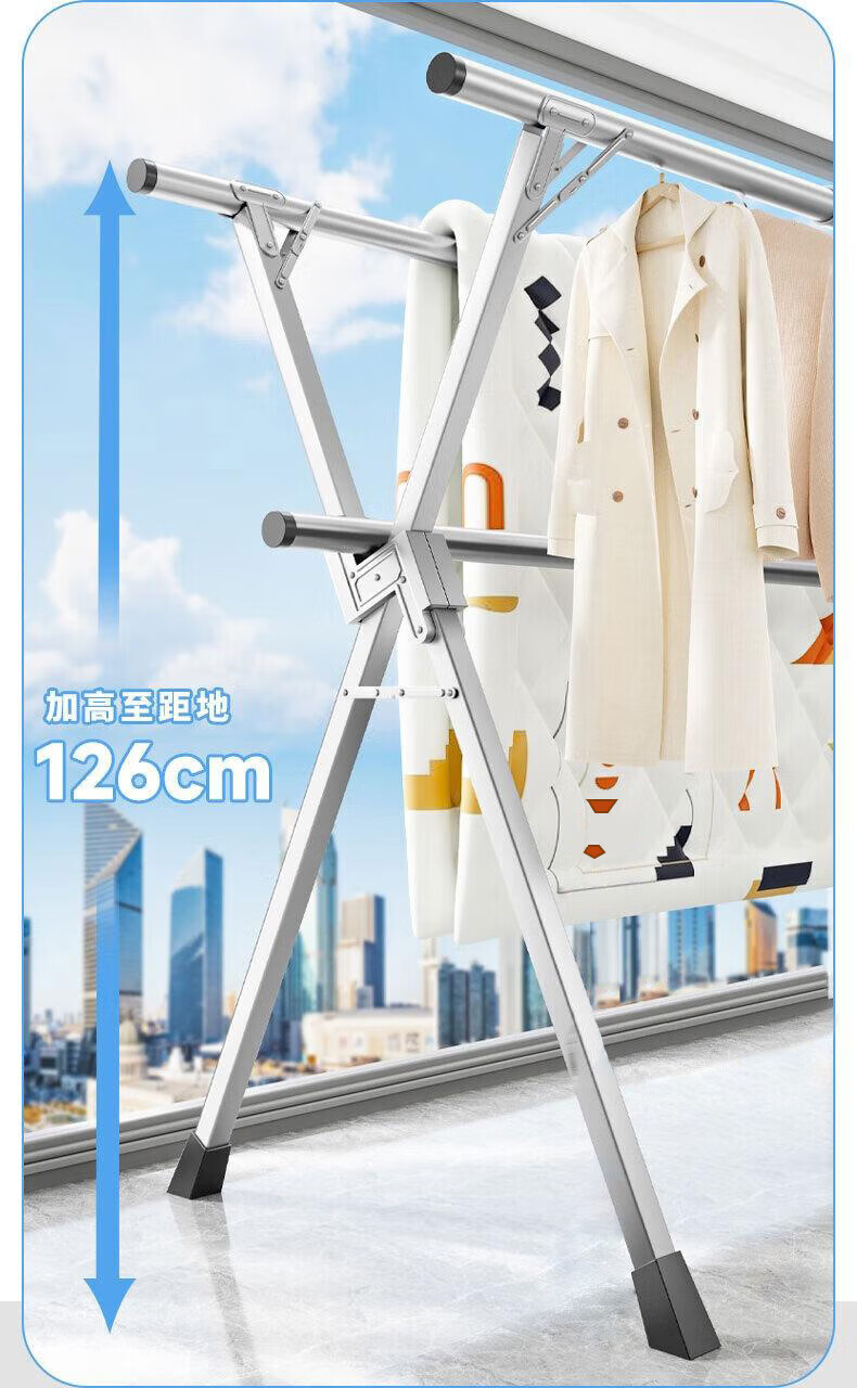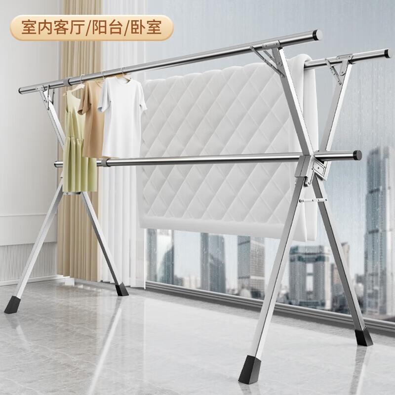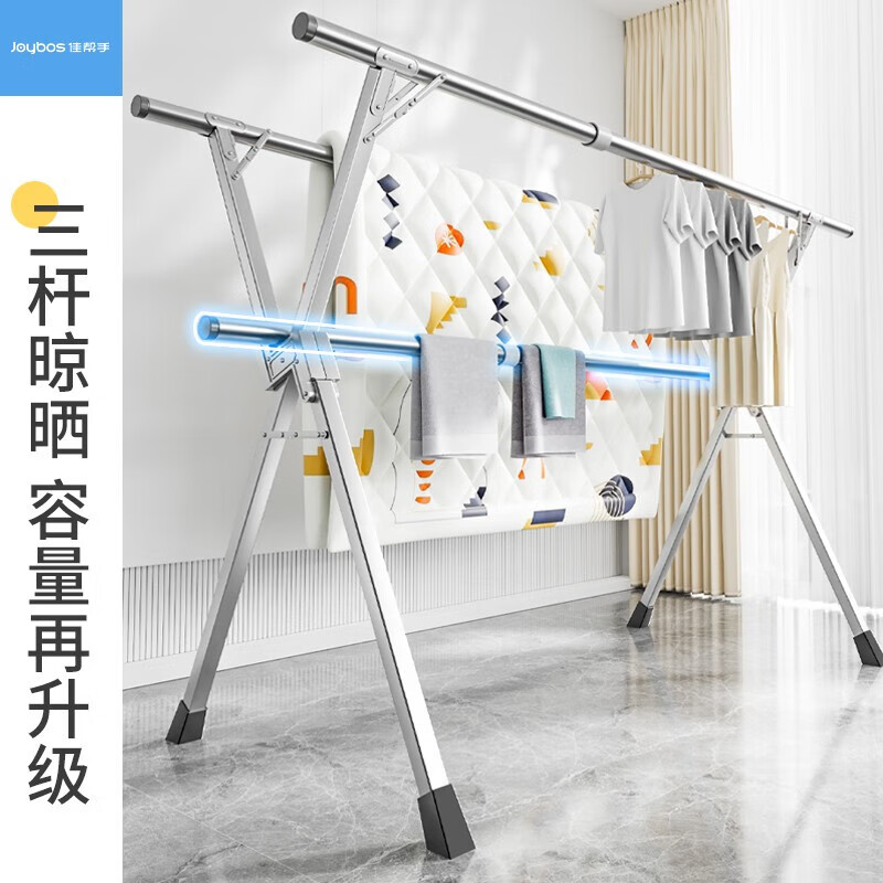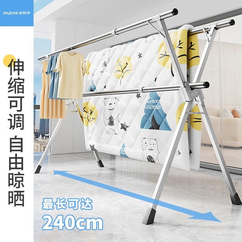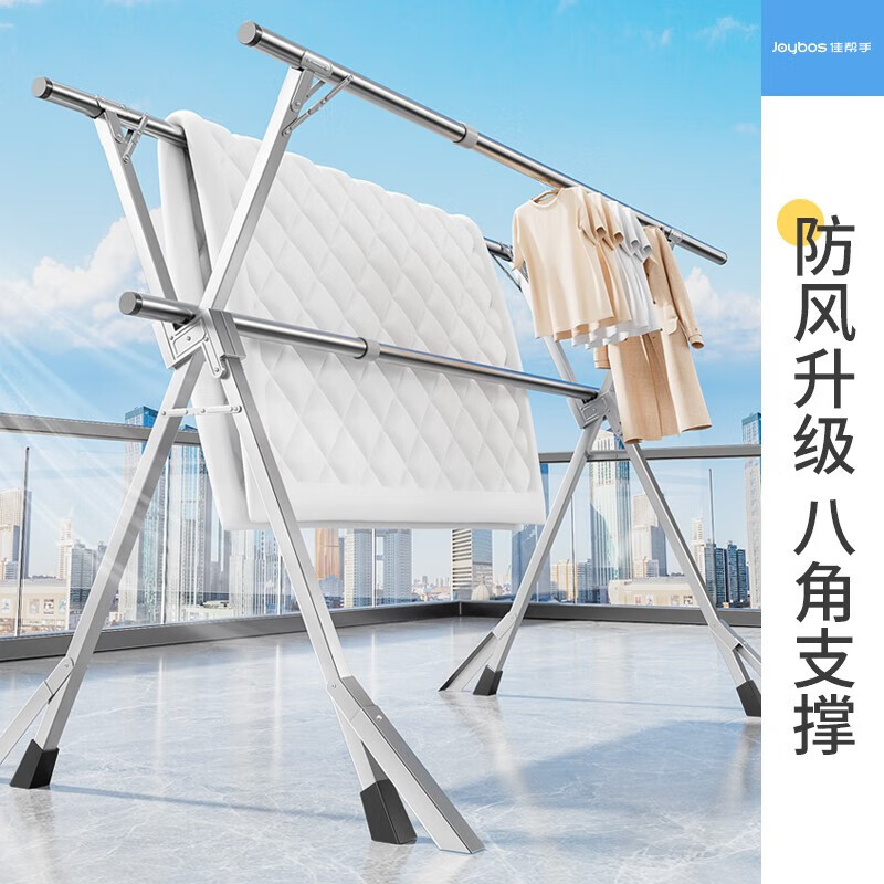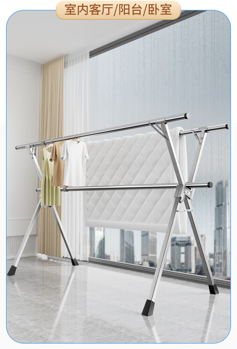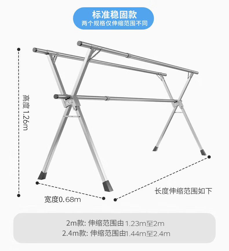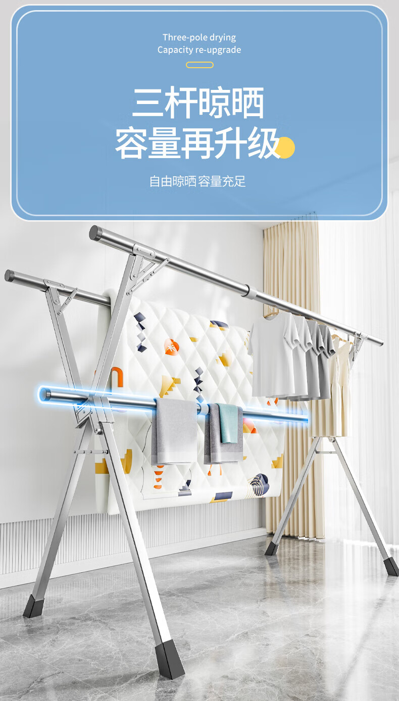 佳帮手晾衣架落地晾晒架不锈钢伸缩折叠室内外阳台晾衣杆 稳固款*3杆伸缩【长2米】