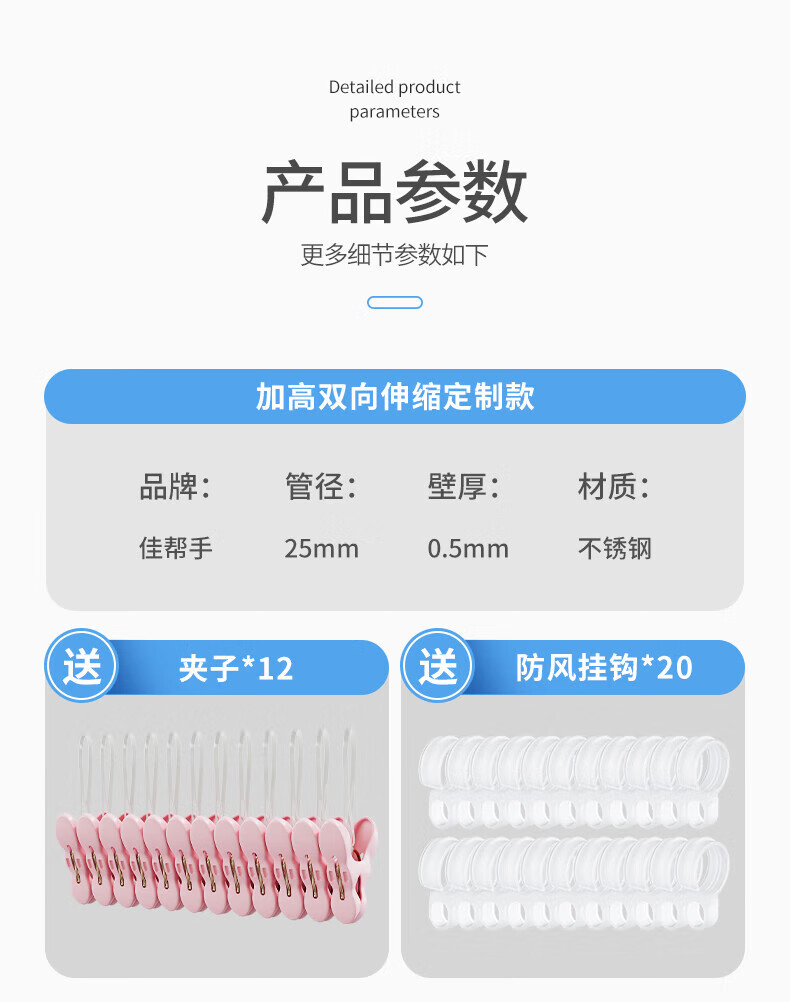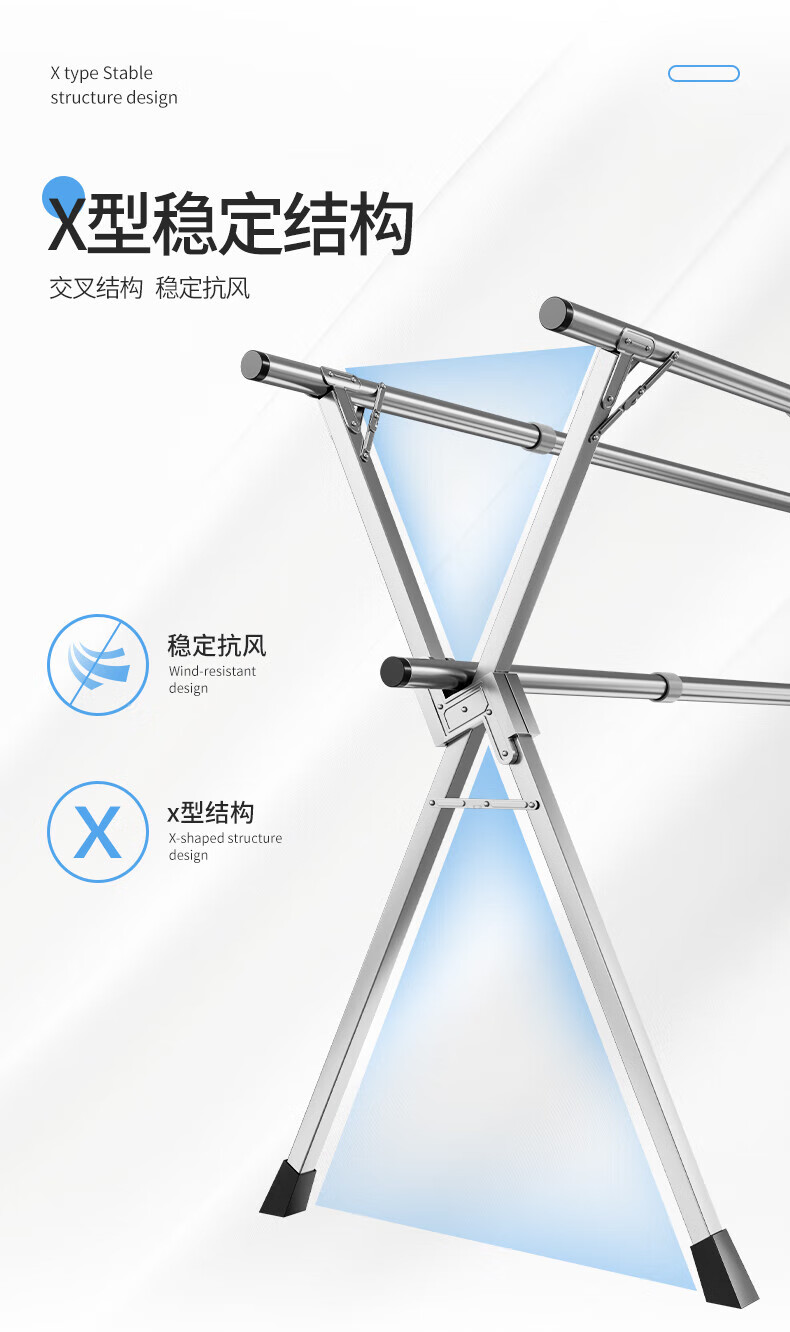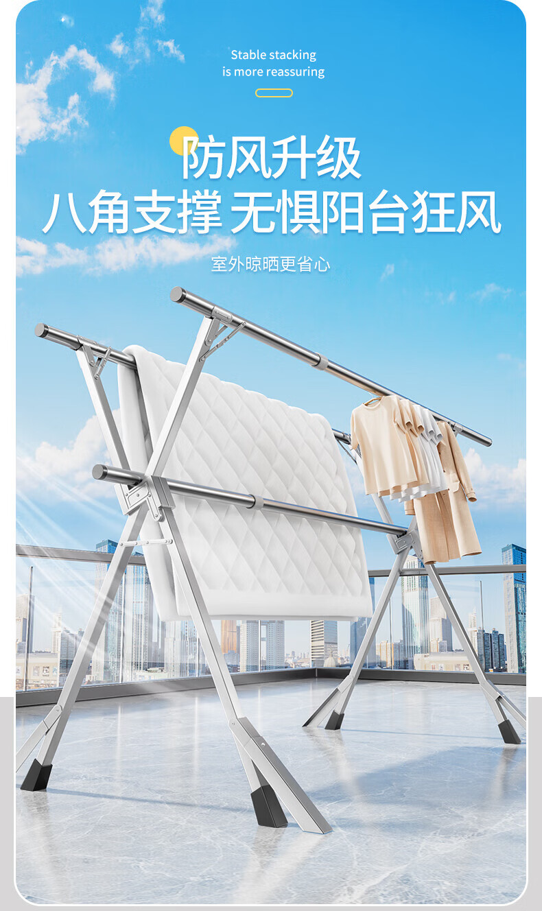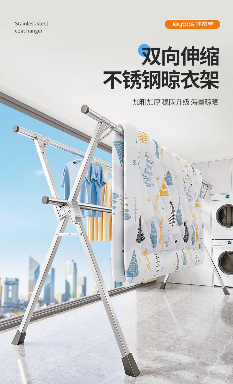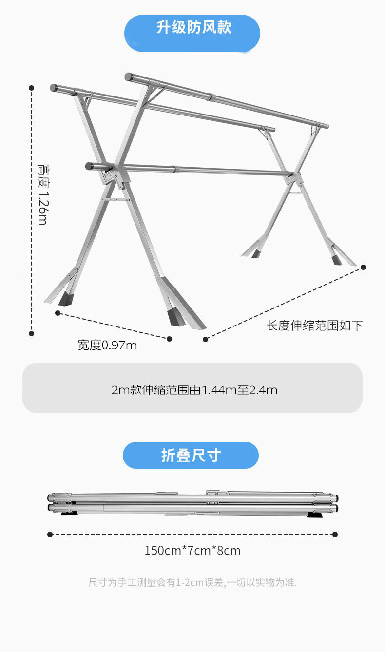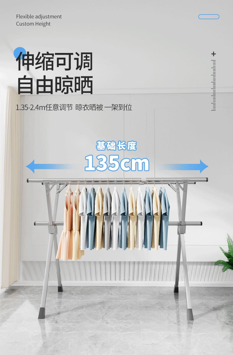 佳帮手晾衣架落地晾晒架不锈钢伸缩折叠室内外阳台晾衣杆 稳固款*3杆伸缩【长2米】