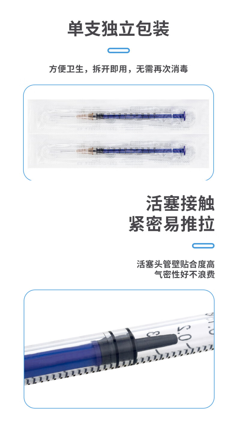 一次性使用注射器带针 医用独立包装喂食喂药器 1ml 1支装
