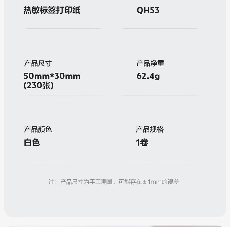 得力(deli)QH53白色热敏标签打印纸 不干胶家用收纳整理开关贴便签手账姓名贴 白色间隙纸适用Q5 230张