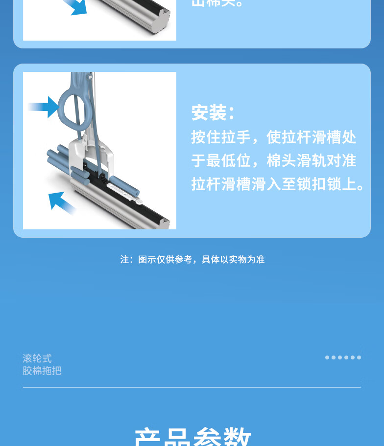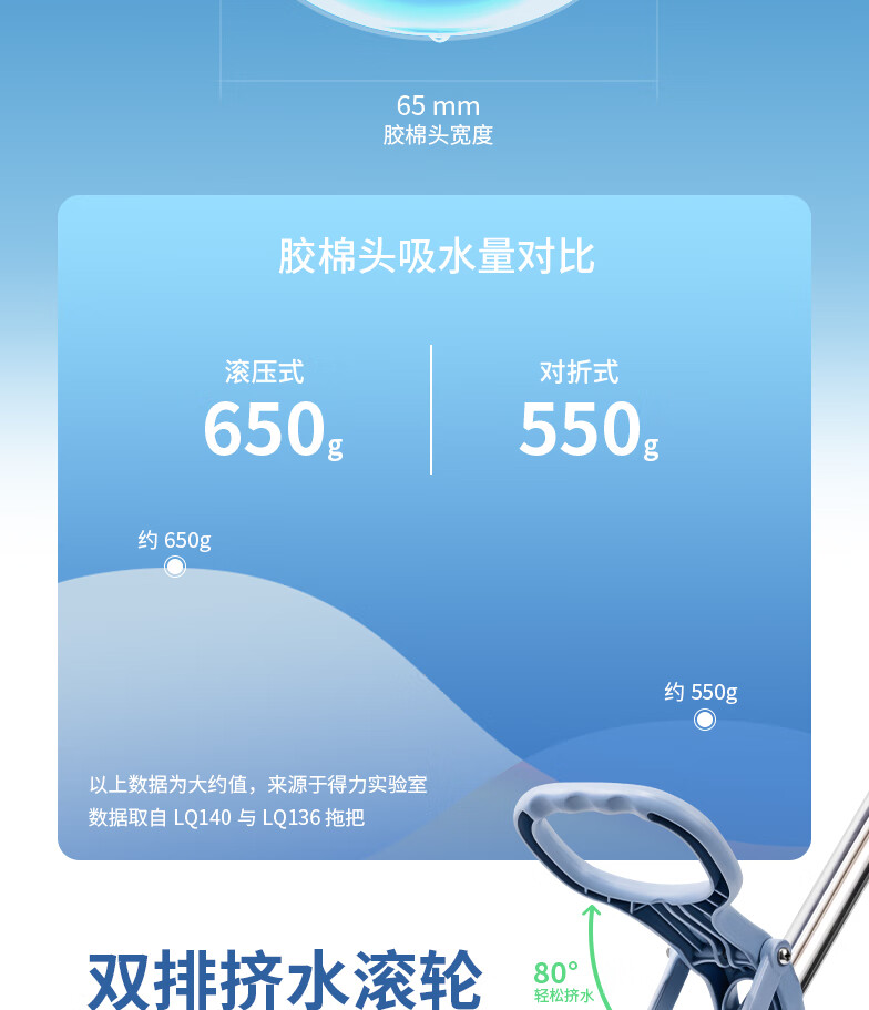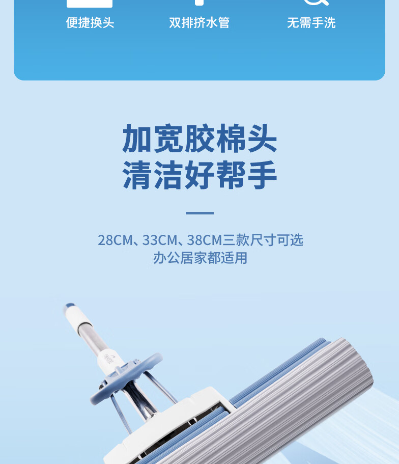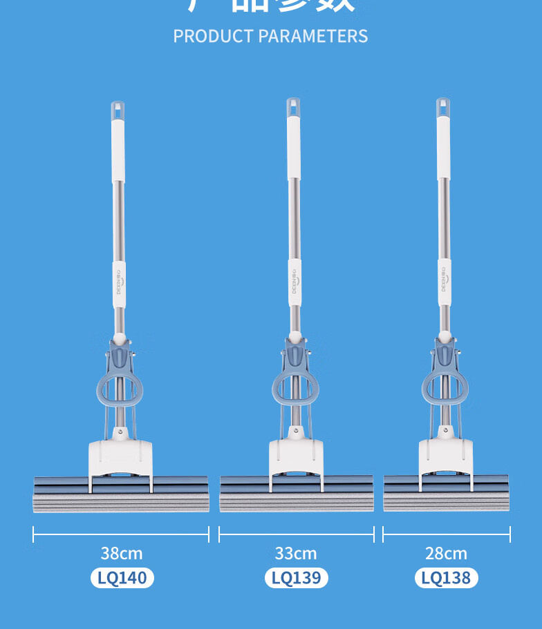 得力得力得心LQ140胶棉拖把(滚轮式)(38cm)(蓝色)(1把) 得力得心LQ136胶棉拖把对折28mm