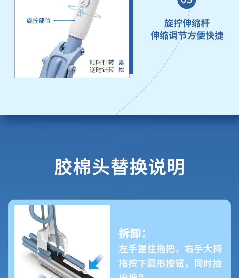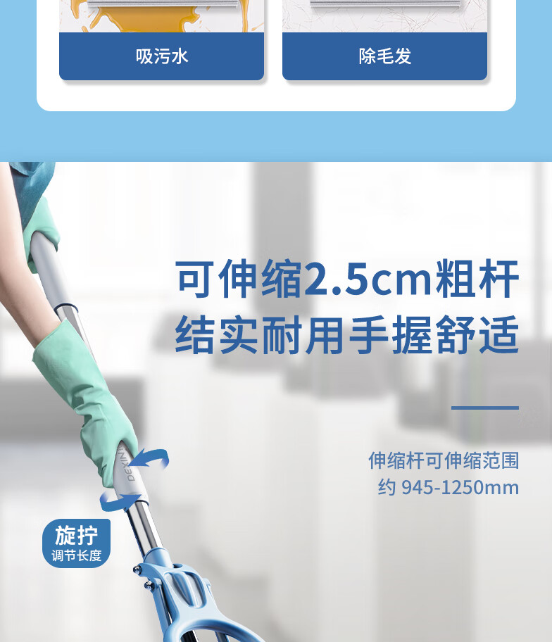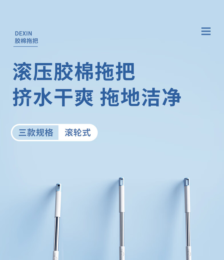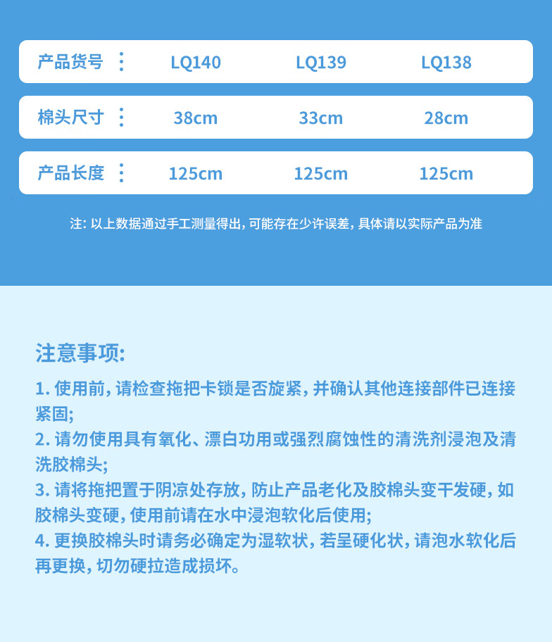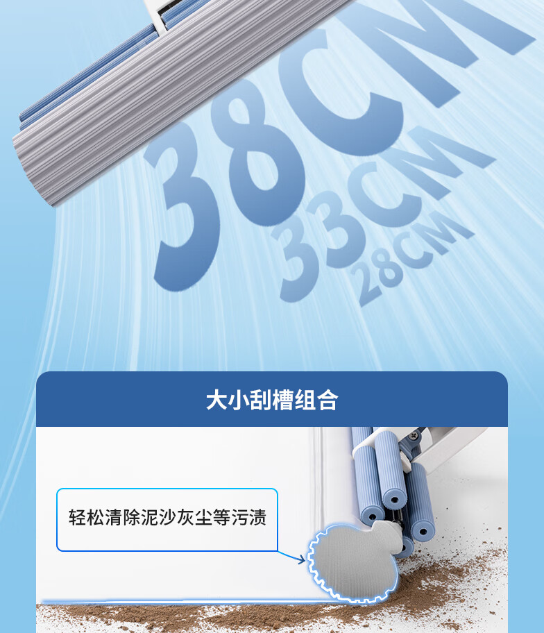 得力得力得心LQ140胶棉拖把(滚轮式)(38cm)(蓝色)(1把) 得力得心LQ136胶棉拖把对折28mm