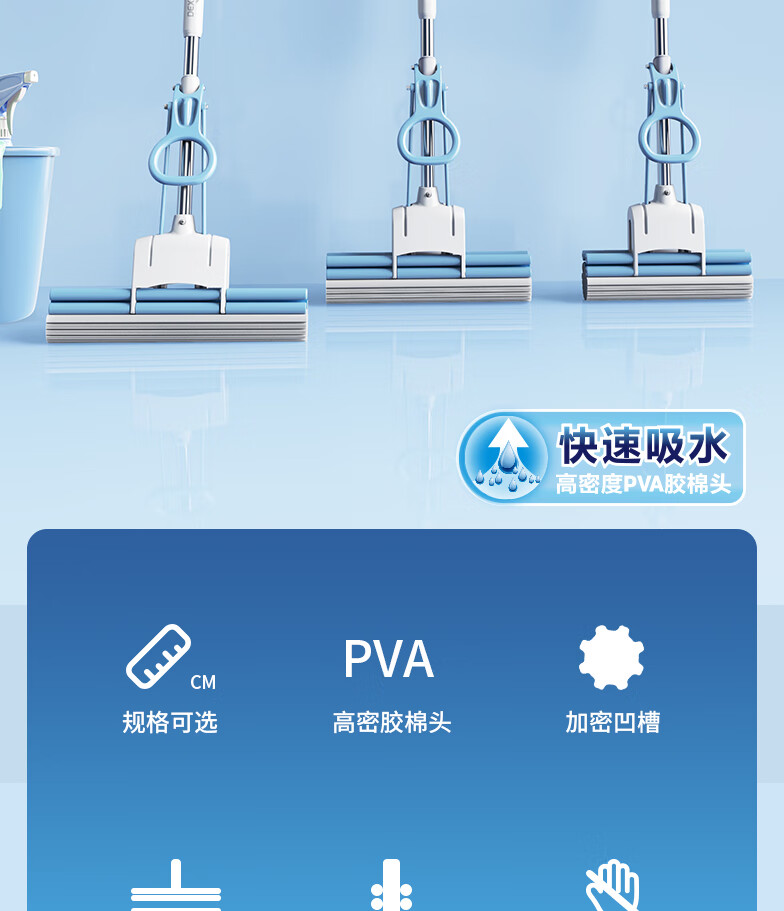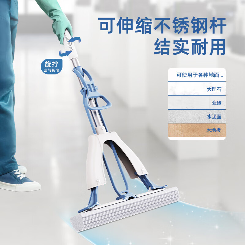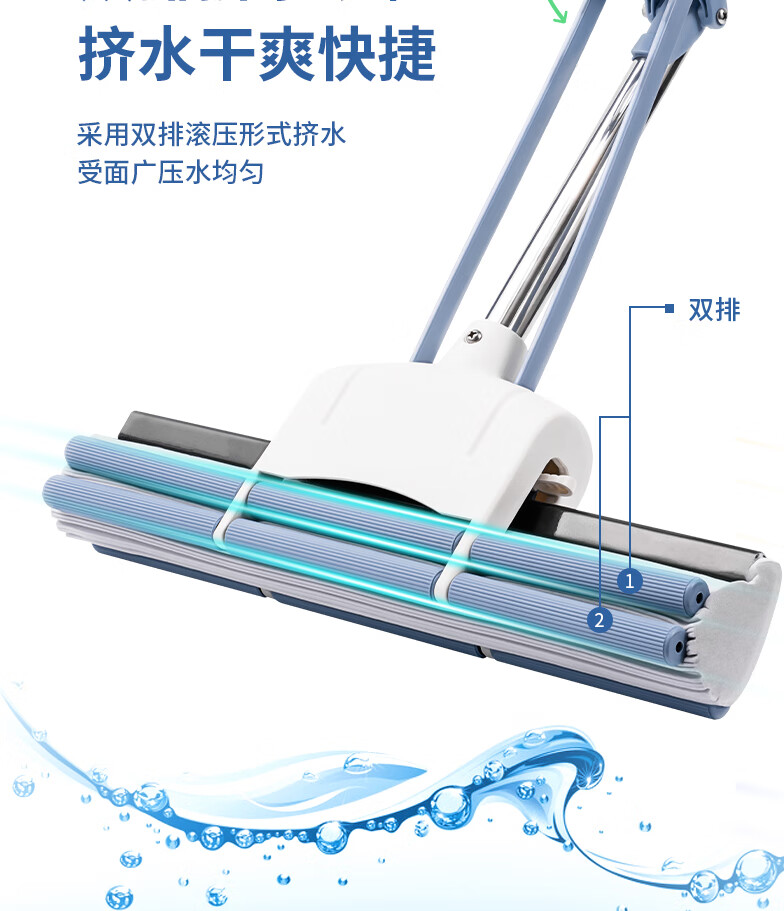 好太太官方海绵拖把家用大号胶棉挤水滚轮超强吸水免手洗耐用结实