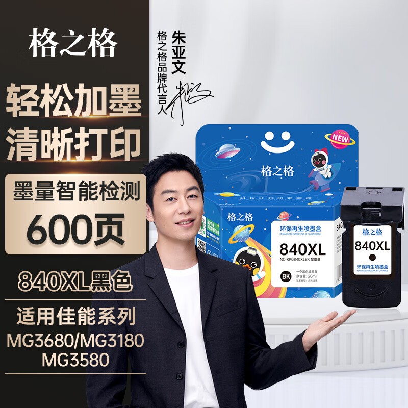 格之格PG-840黑色显墨量墨盒 适用佳能MG2180 MG2280 MG3180 MG3580 CL841 PG840打印机墨盒