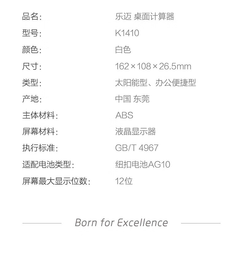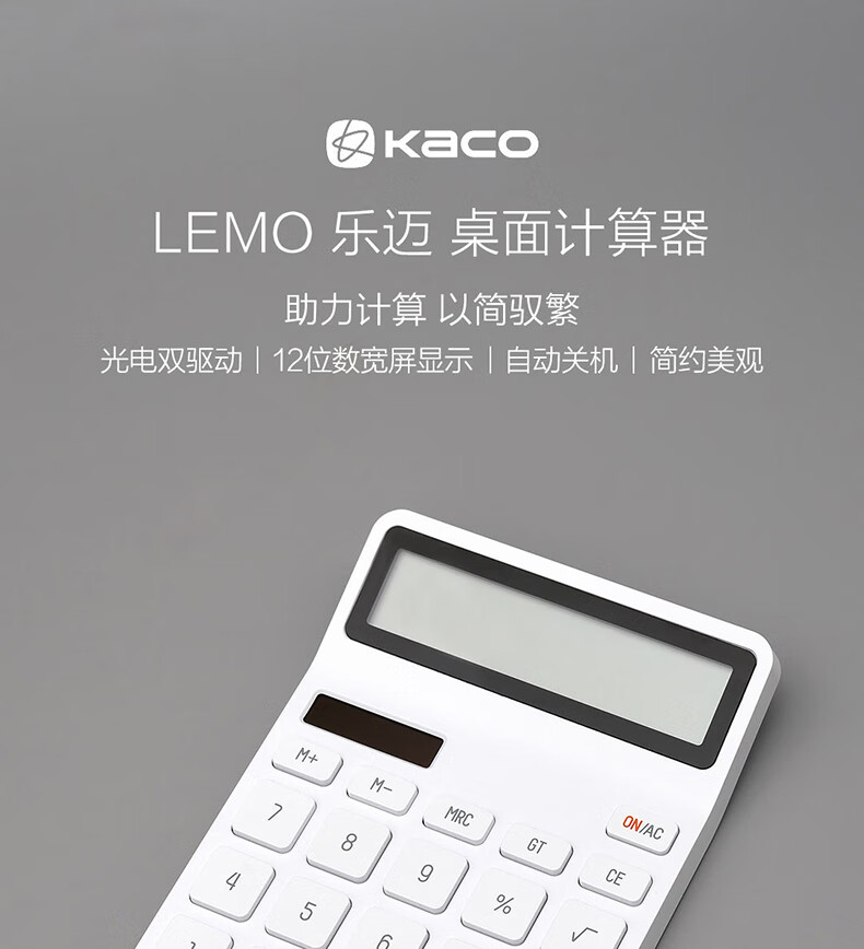 KACO乐迈双电源计算器12位大屏幕桌面计算机办公用品白色