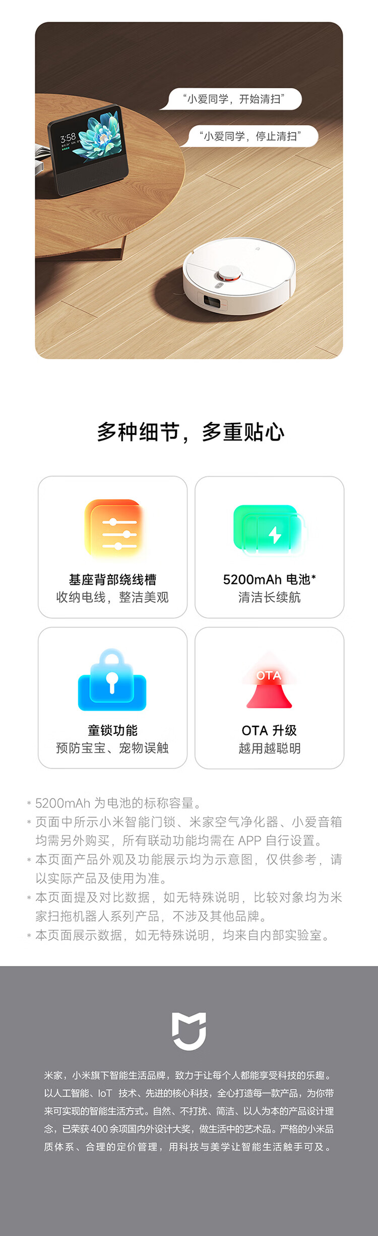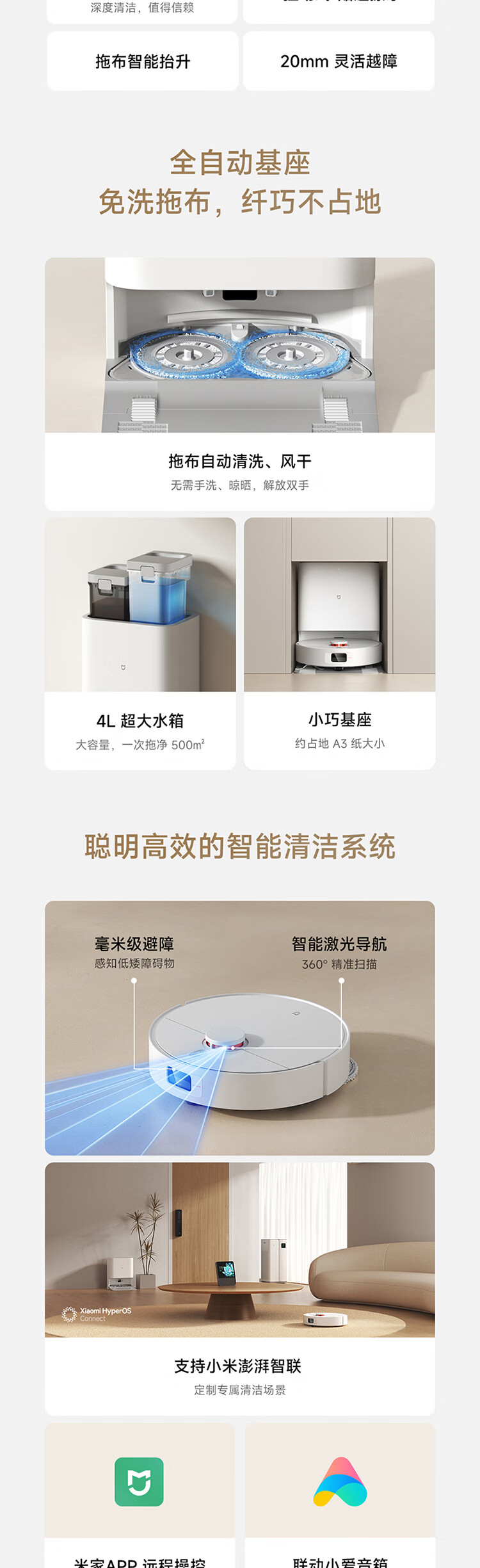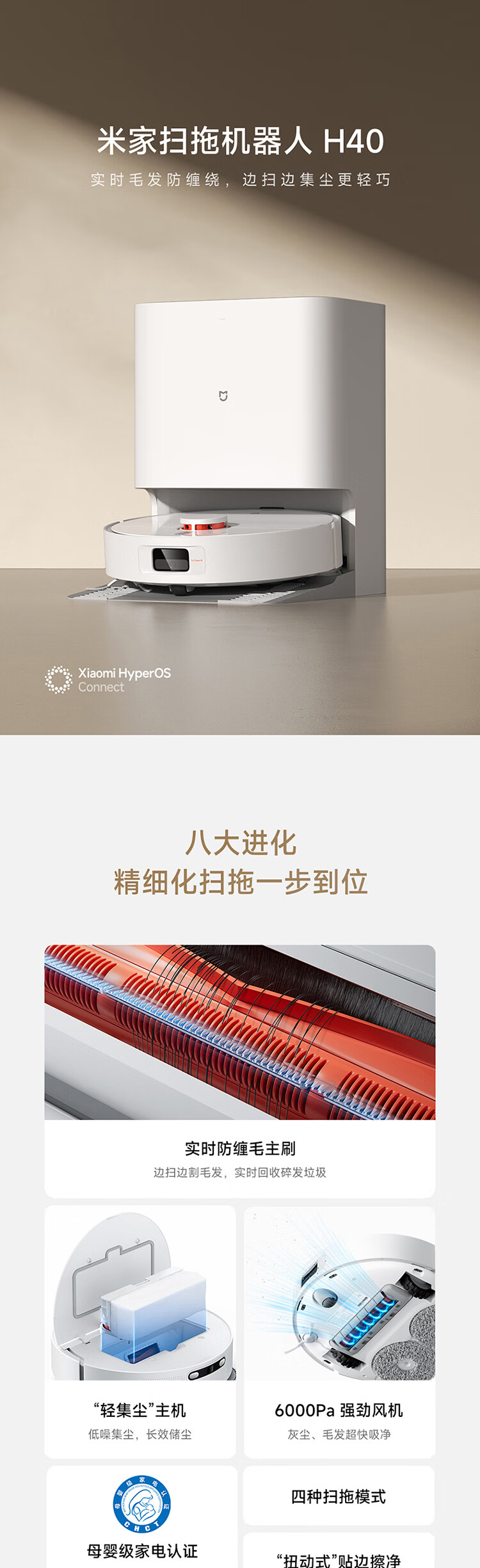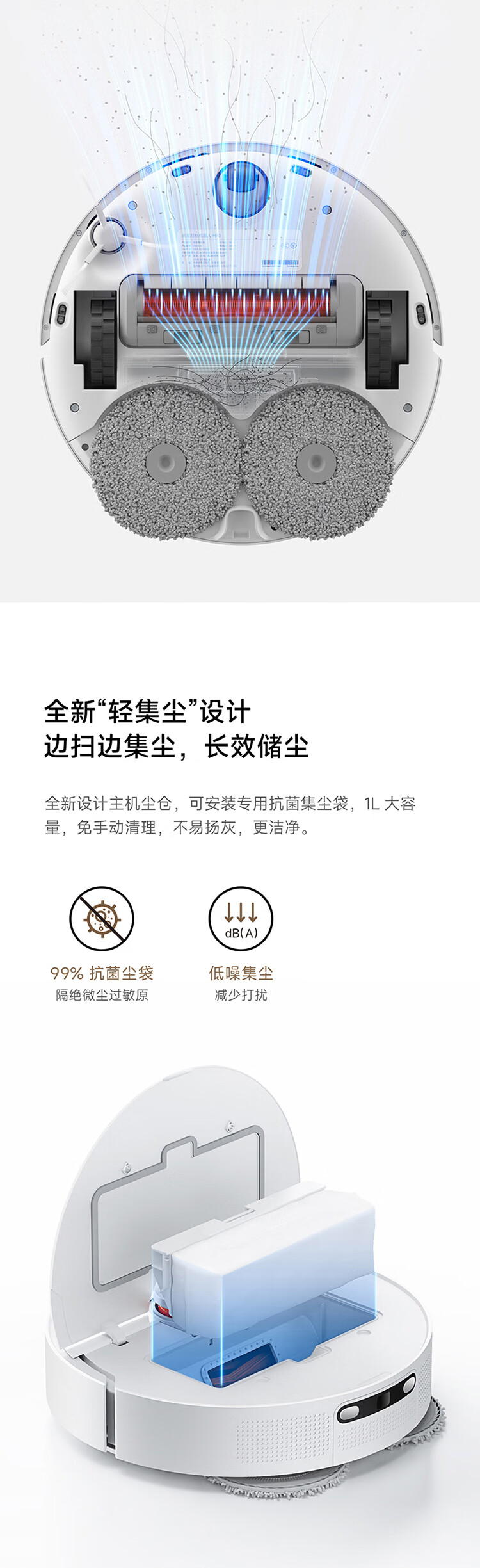 米家小米扫地机器人 扫拖机器人H40 自动集尘毛发切割防缠绕 拖地机洗拖一体扫地机拖地洗地机吸尘器