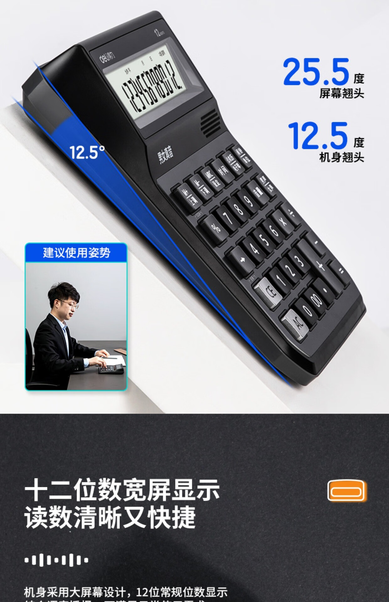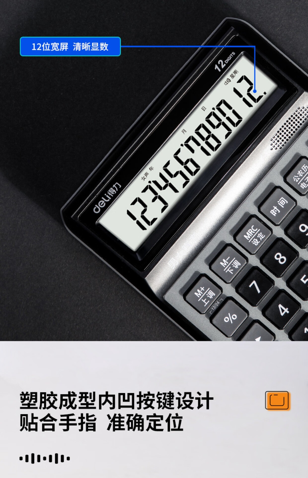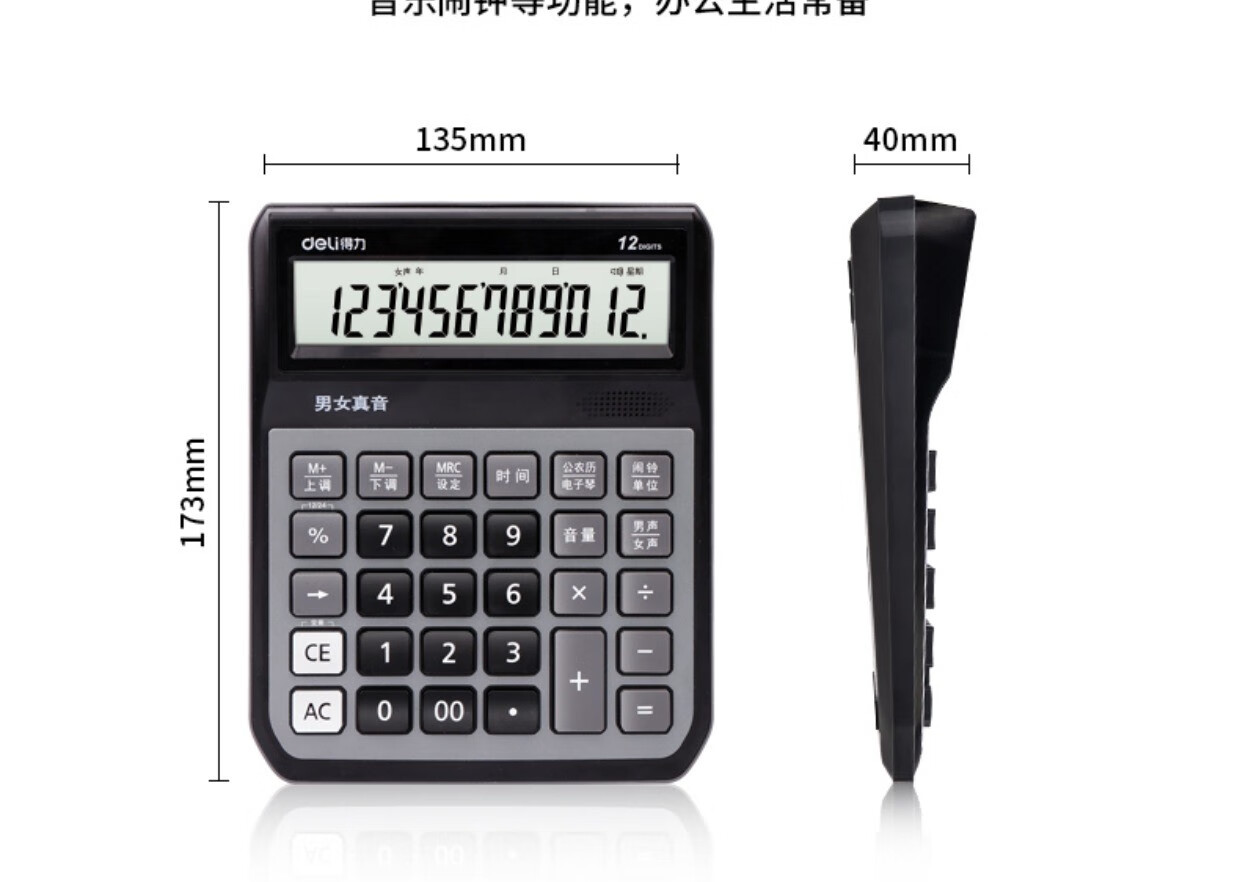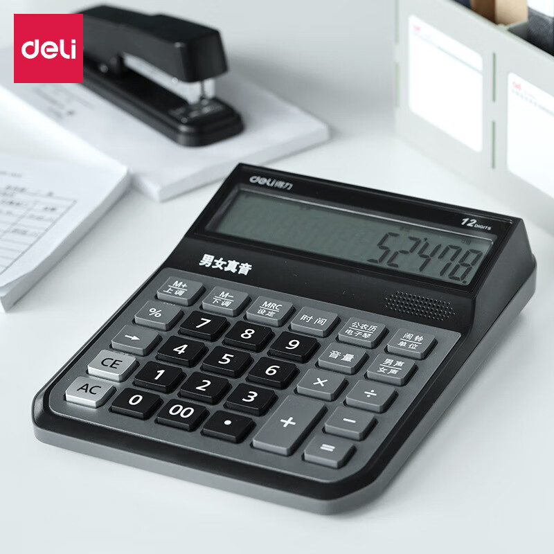 得力(deli)12位数通用语音计算机 桌面语音计算器 学生/办公口算 黑色837Y