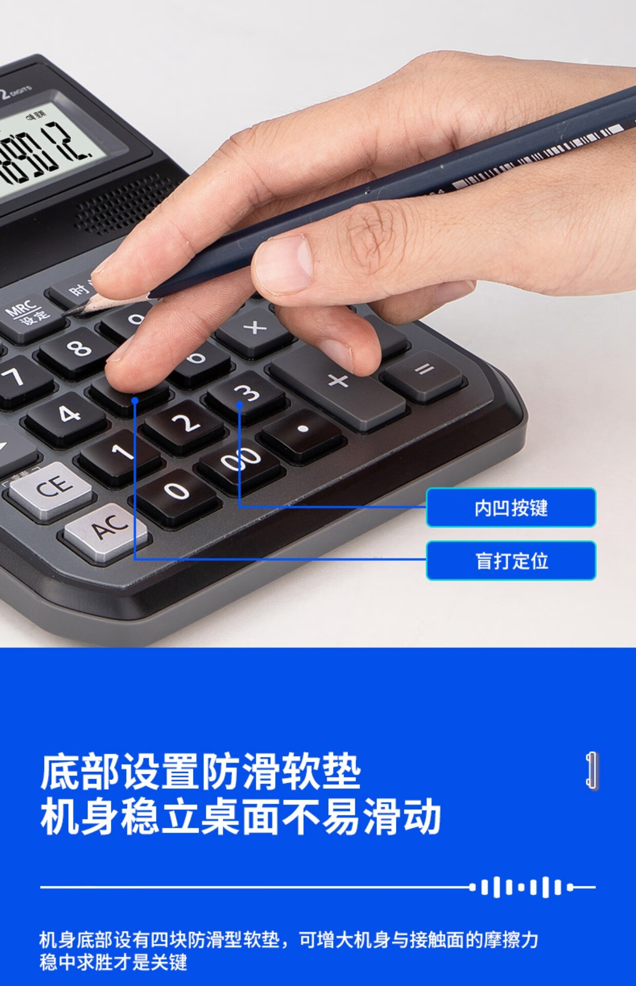 得力 计算器 1554 桌面计算器 可查数后退修正 真人语音播报