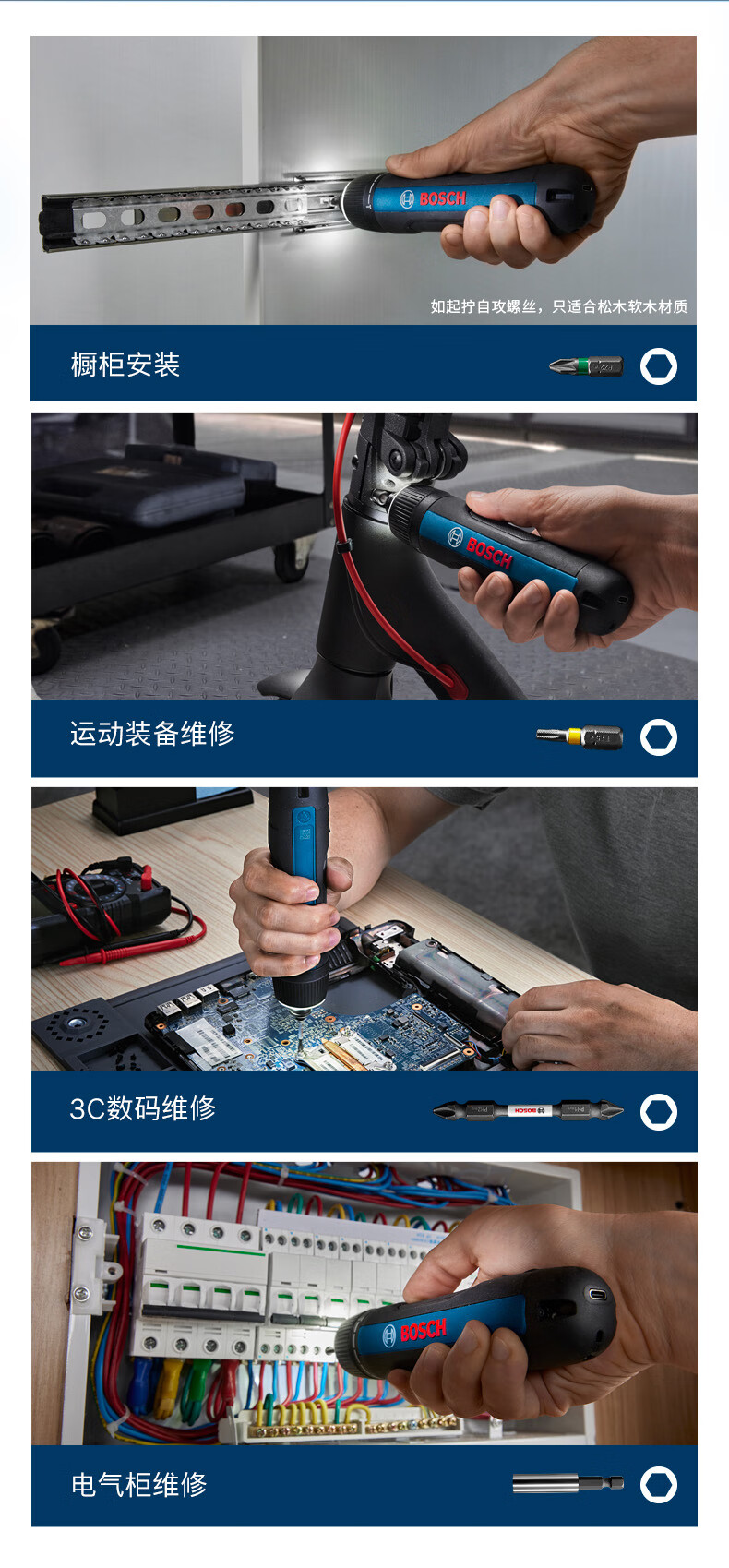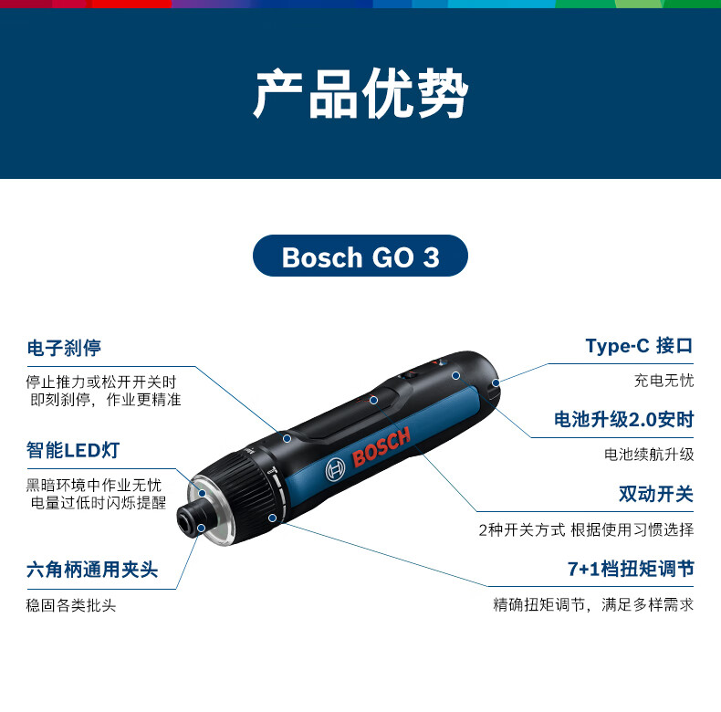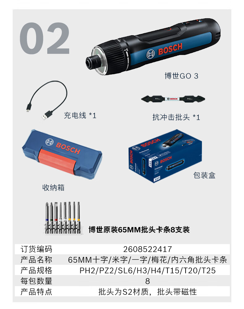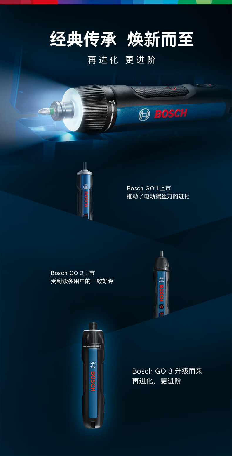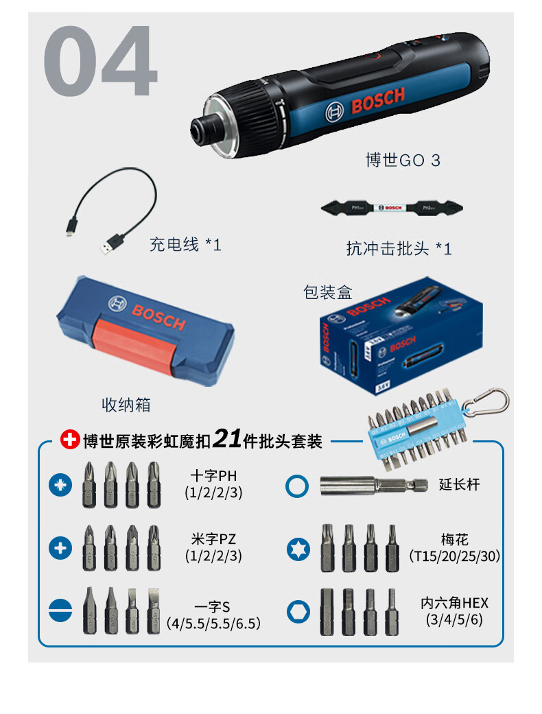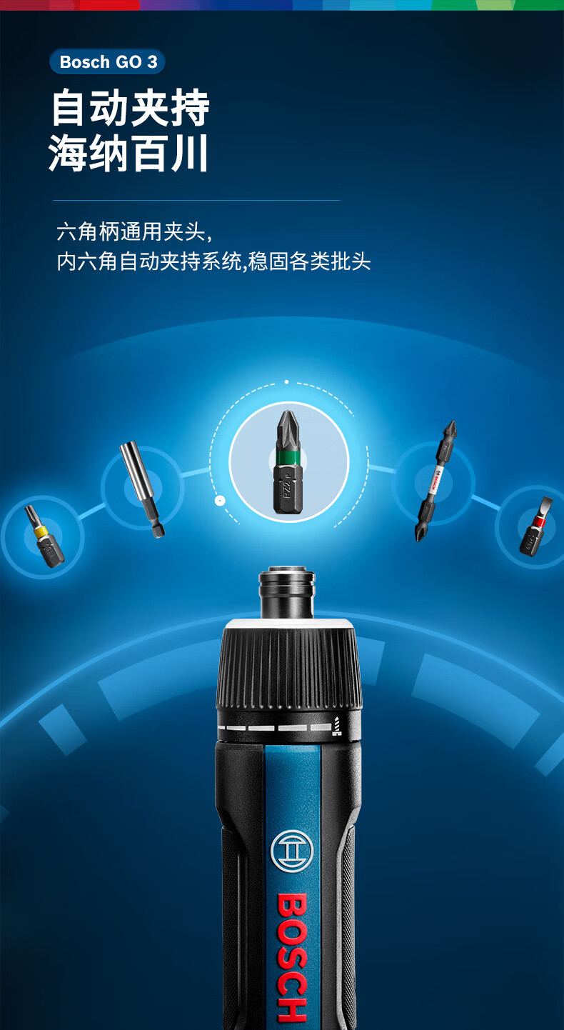 博世(BOSCH) GO 3充电式锂电电动螺丝刀家用小型螺丝批起子机套装 官方标配+11+1批头