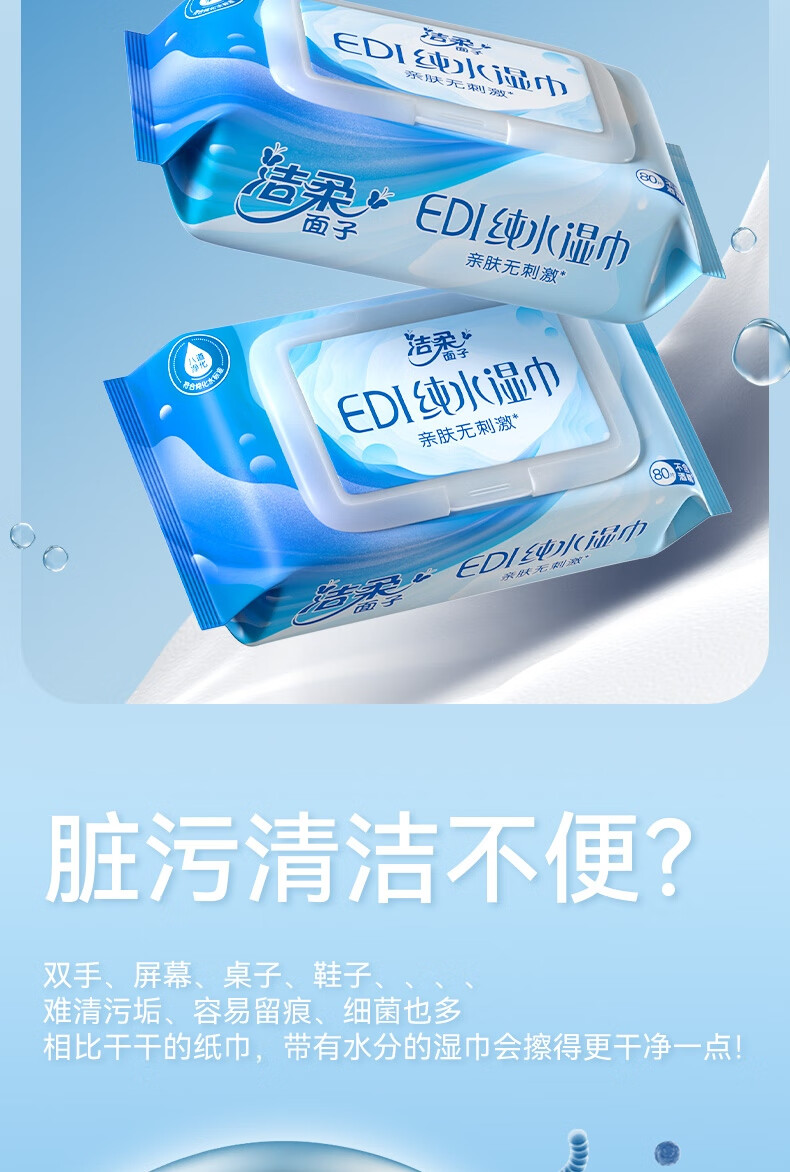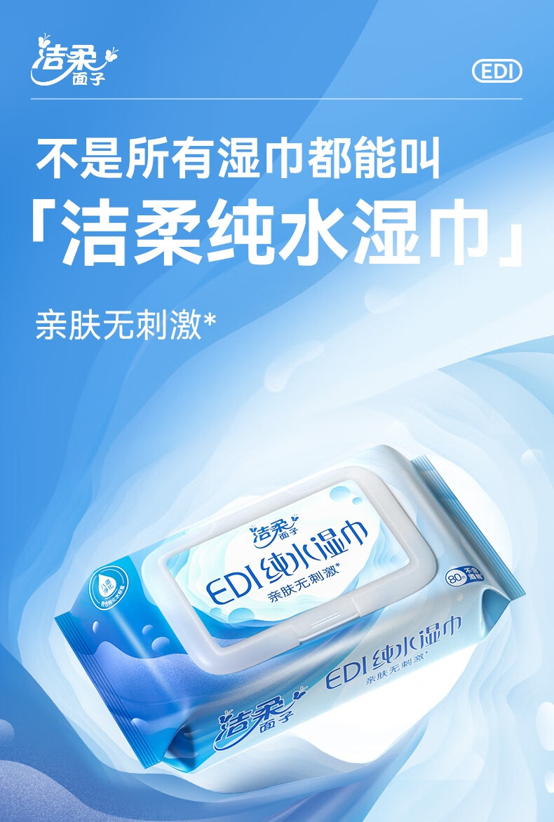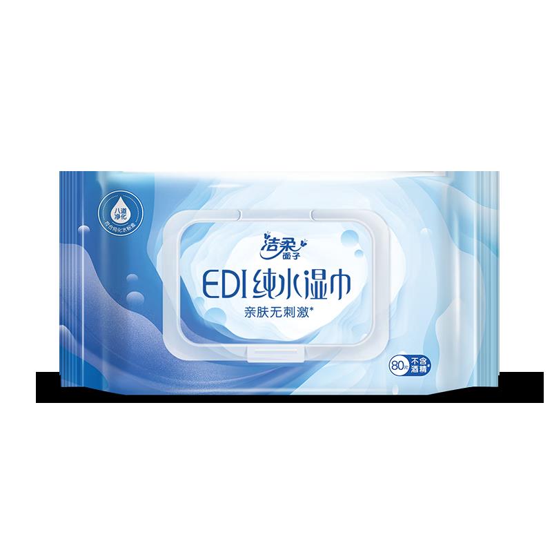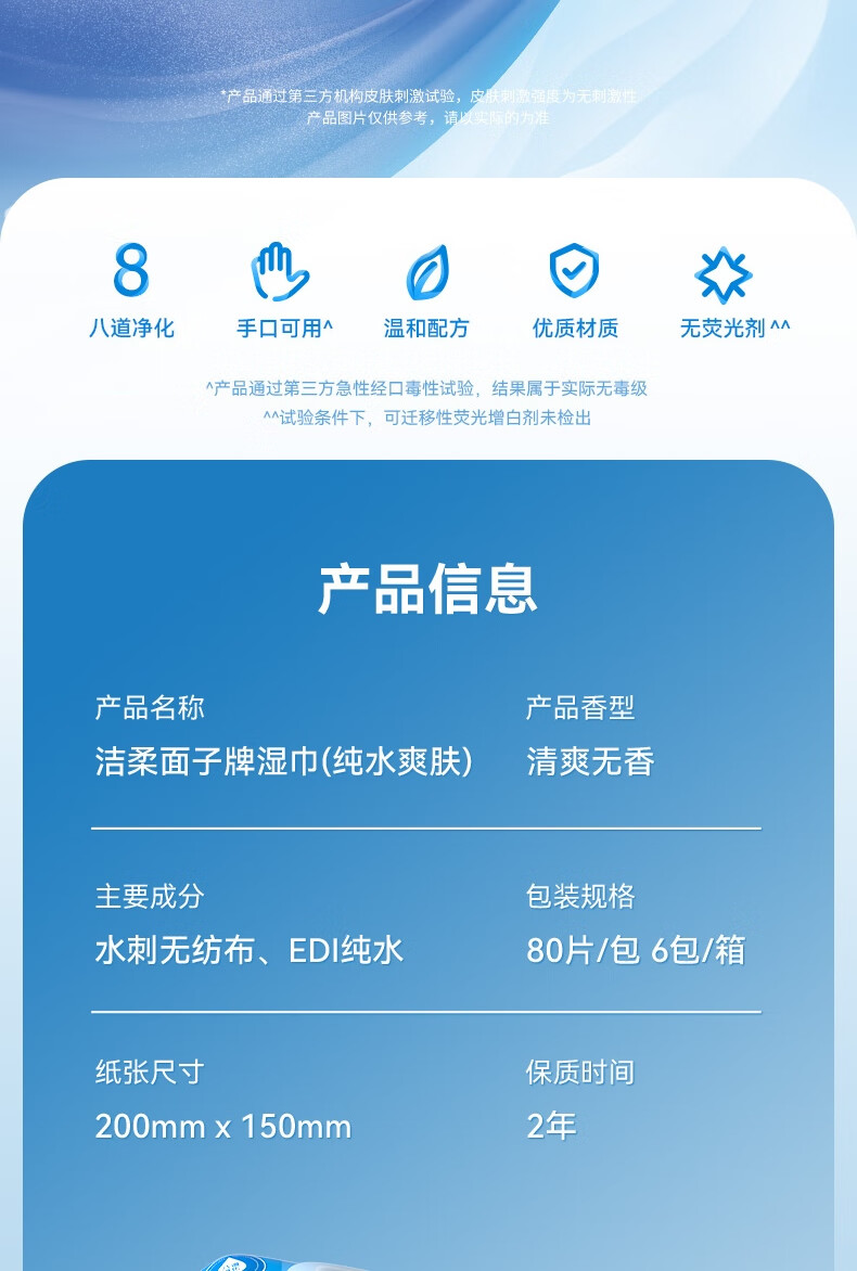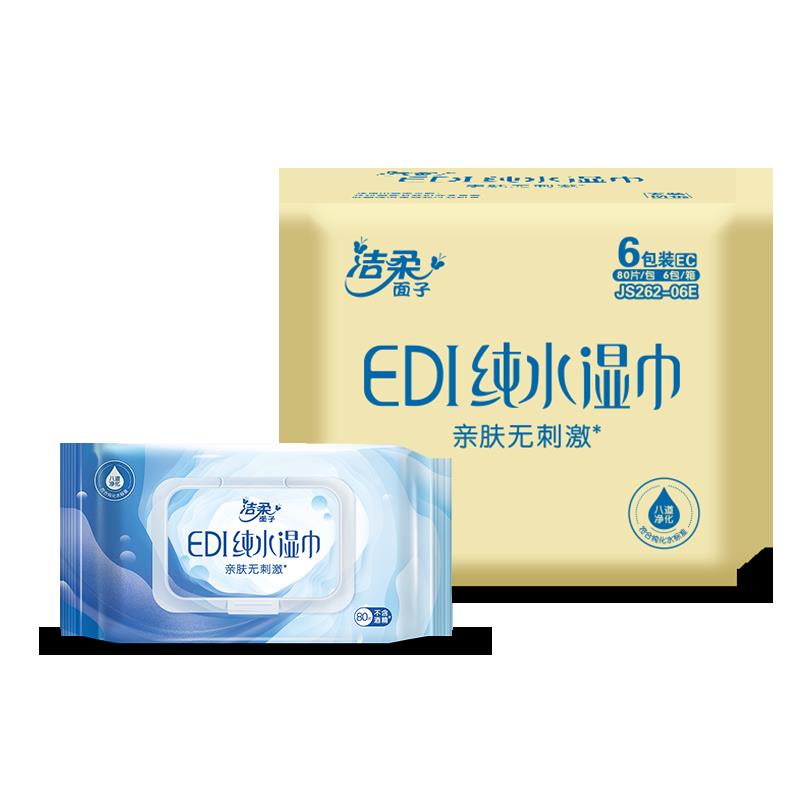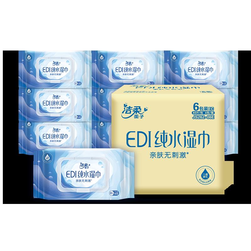洁柔EDI纯水湿巾80抽*6包洁肤柔湿纸巾婴儿湿巾不黏腻无酒精200*150mm