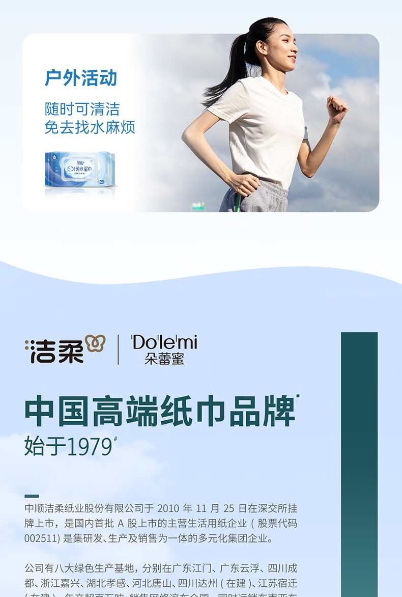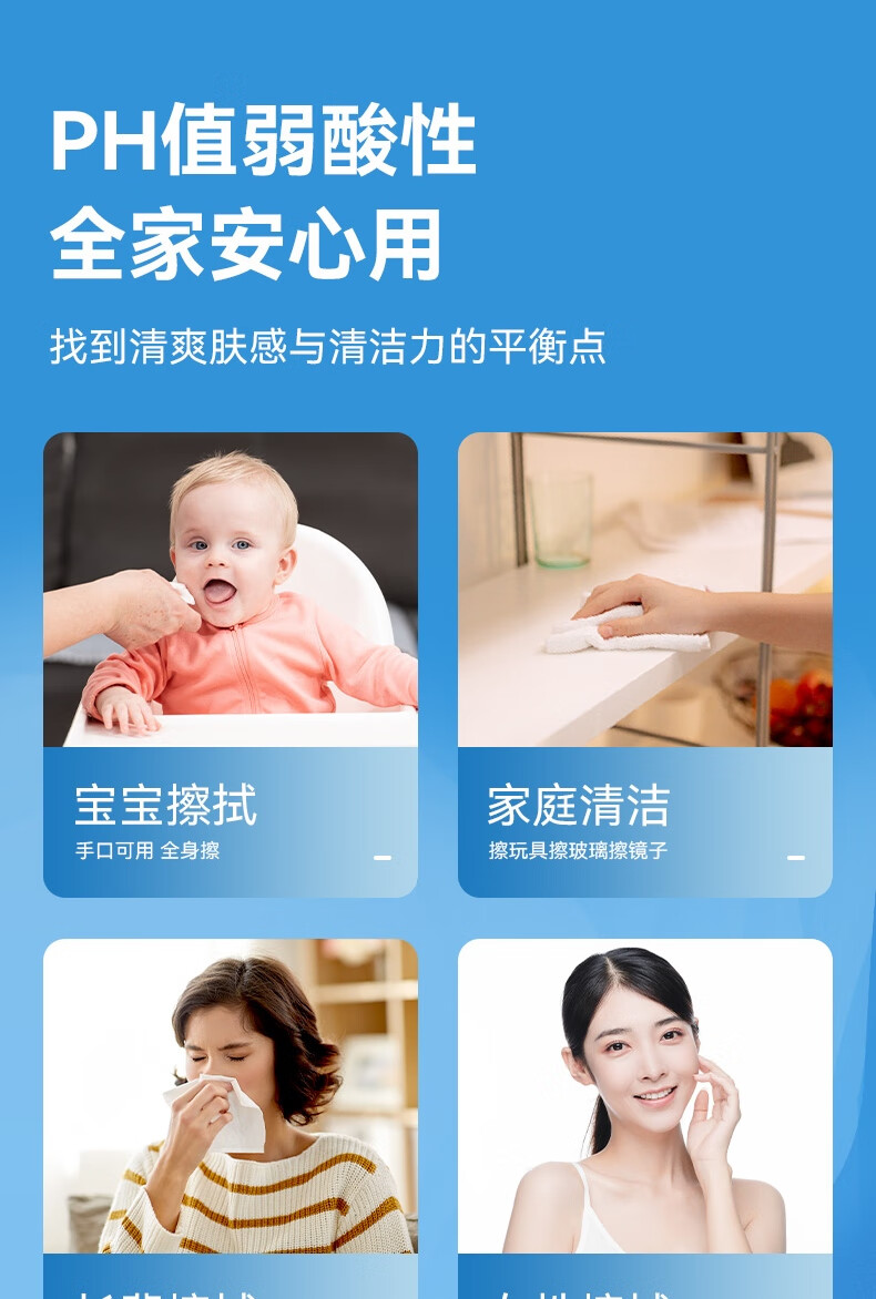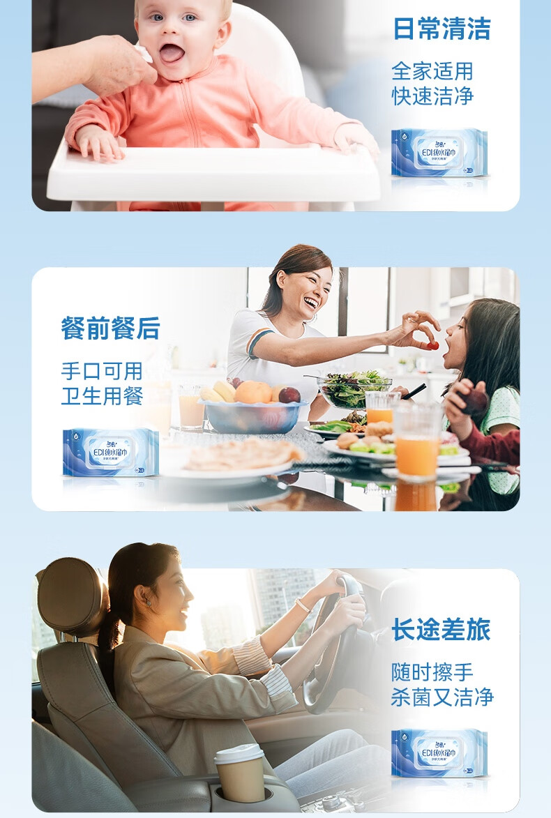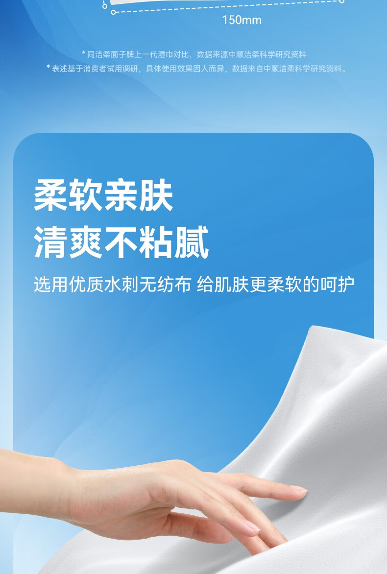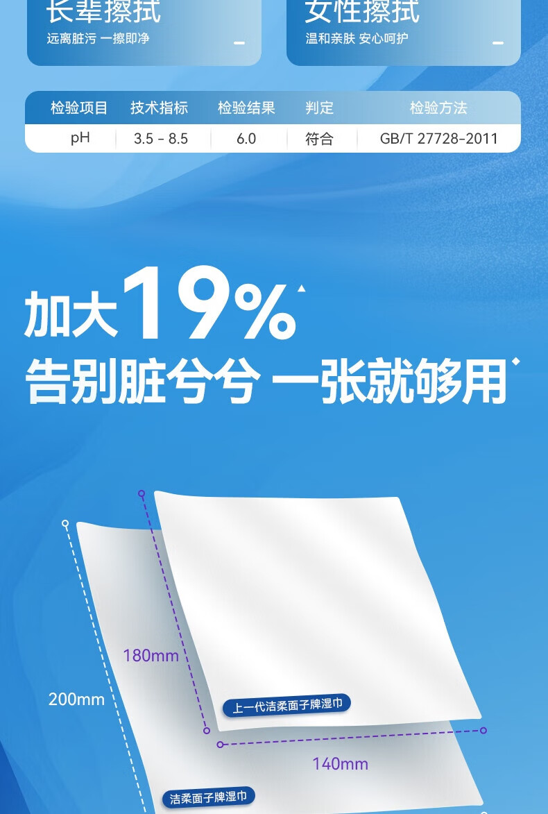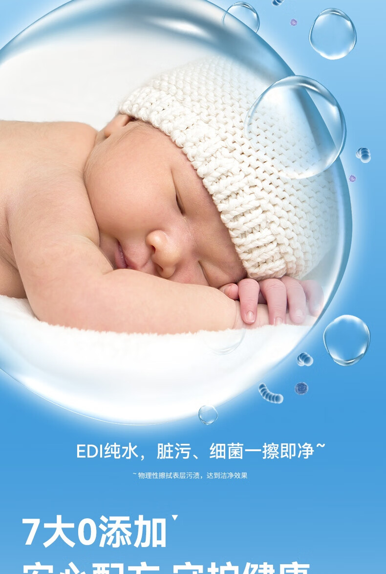 洁柔EDI纯水湿巾80抽*6包洁肤柔湿纸巾婴儿湿巾不黏腻无酒精200*150mm