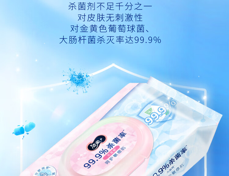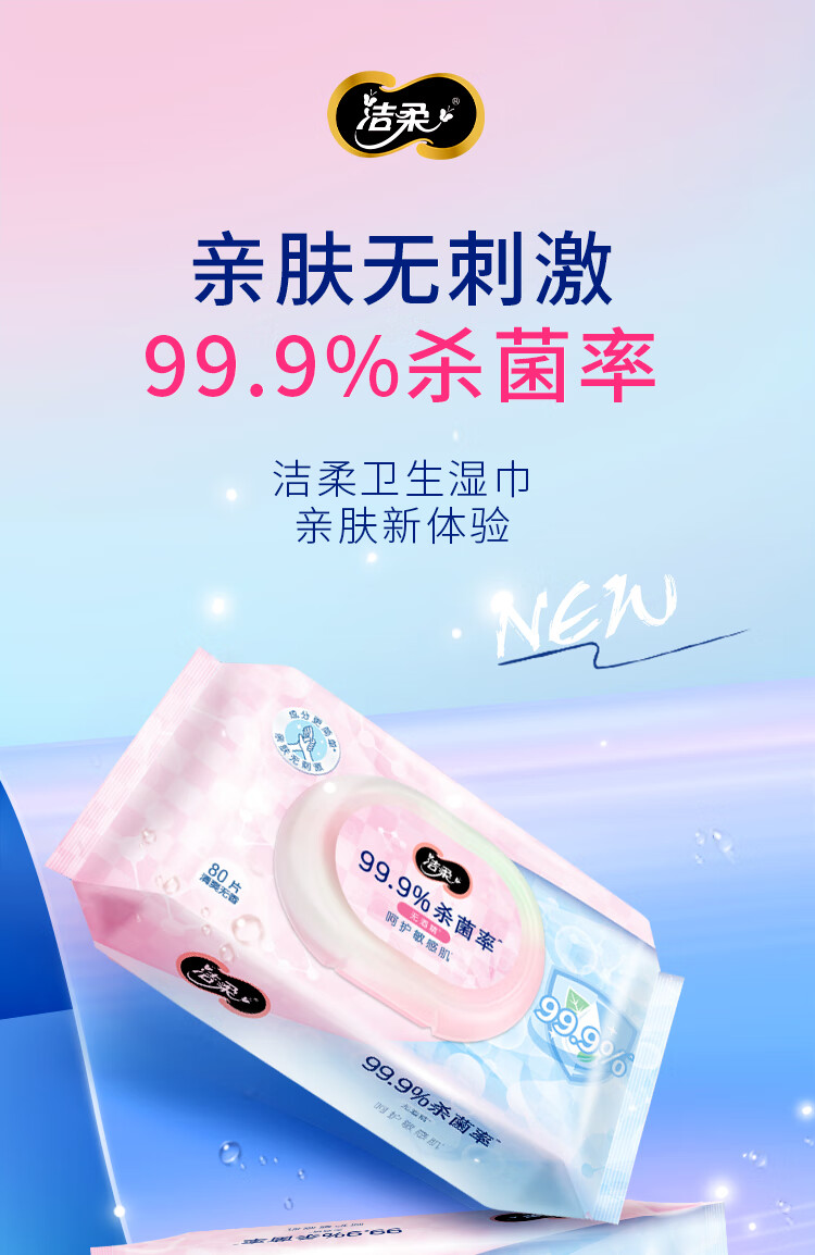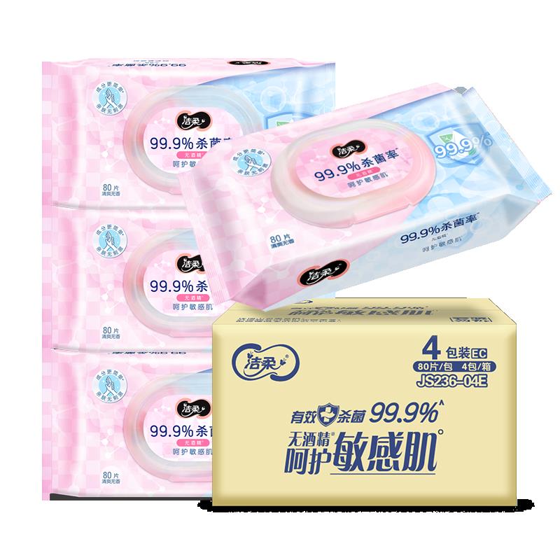 洁柔卫生湿巾加厚80片4包湿巾纸99.9%杀菌清洁RO纯水呵护敏感肌肤整箱