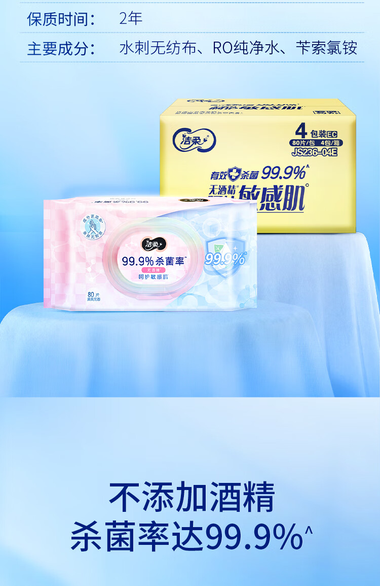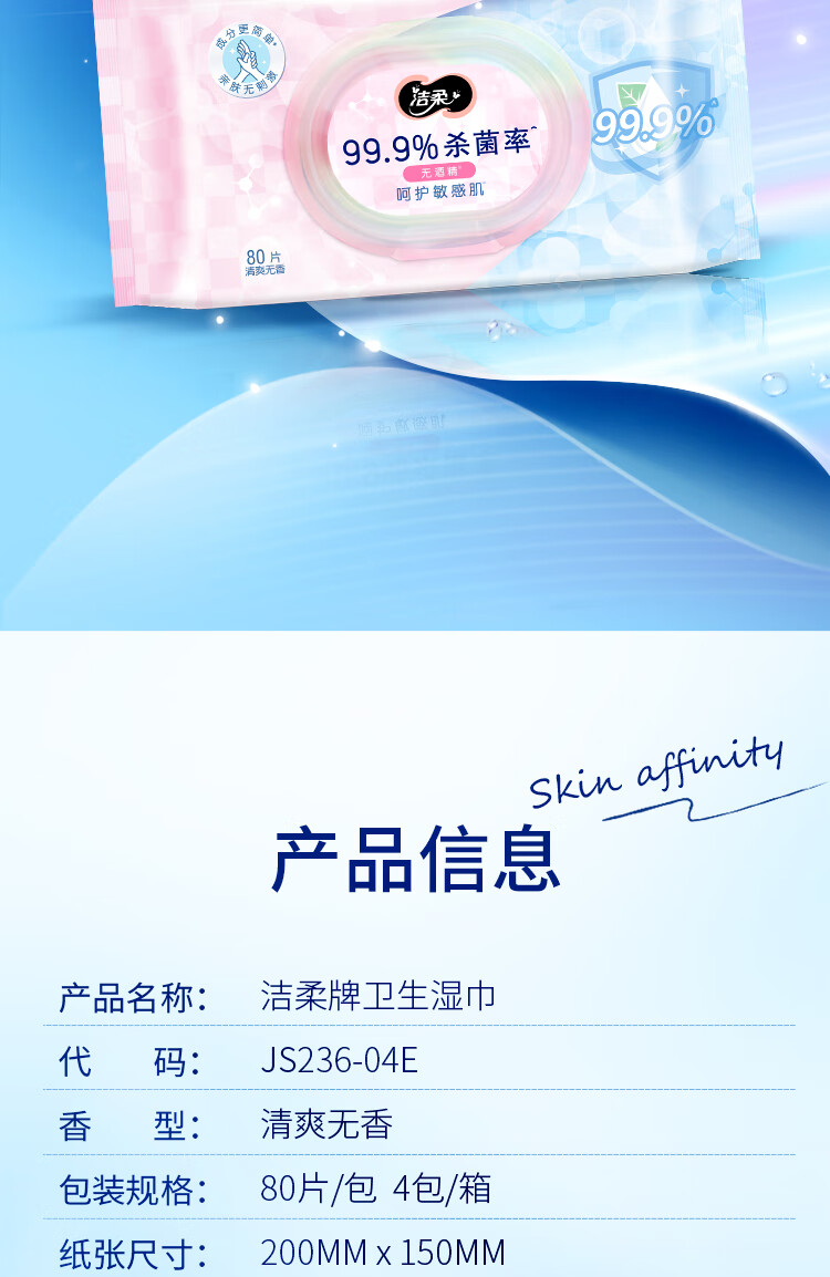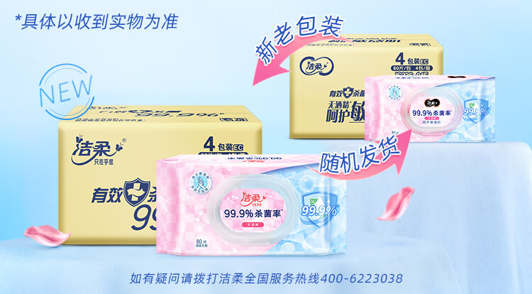 洁柔卫生湿巾80片加厚湿巾纸99.9%杀菌清洁RO纯水呵护敏感肌肤