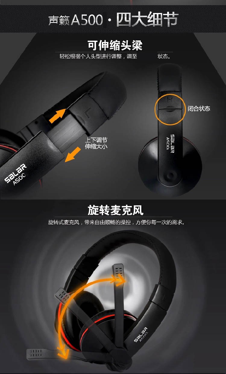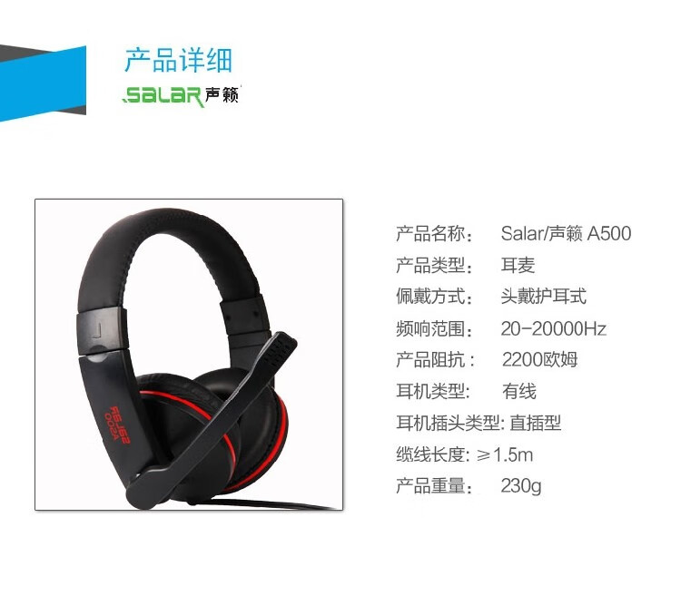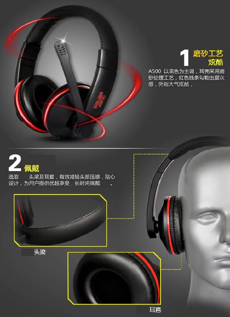 头戴式耳麦有线口语英语听力学习 A500双孔耳机【台式电脑/双孔笔记本用】