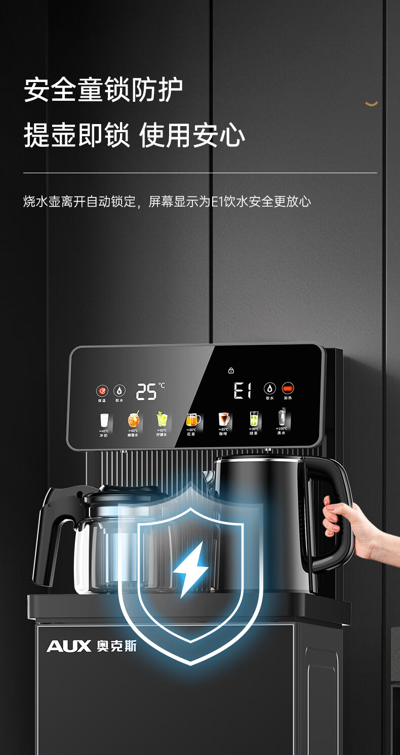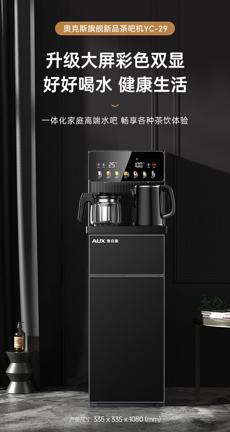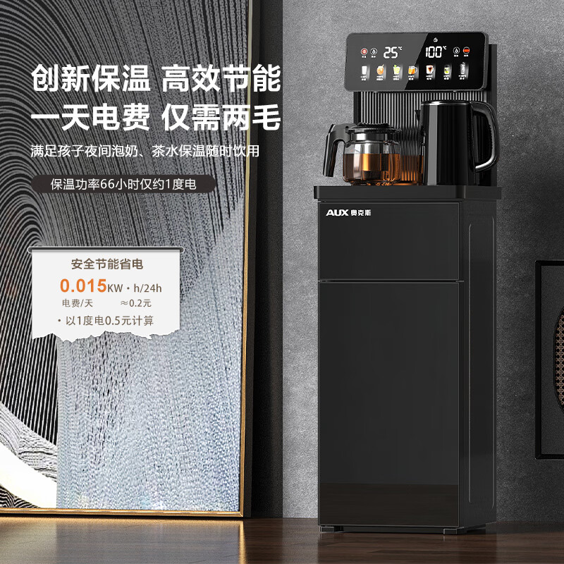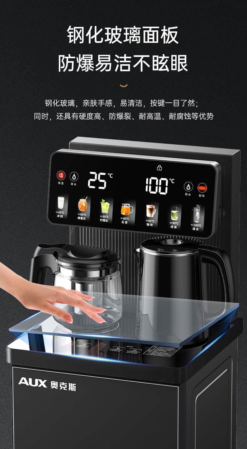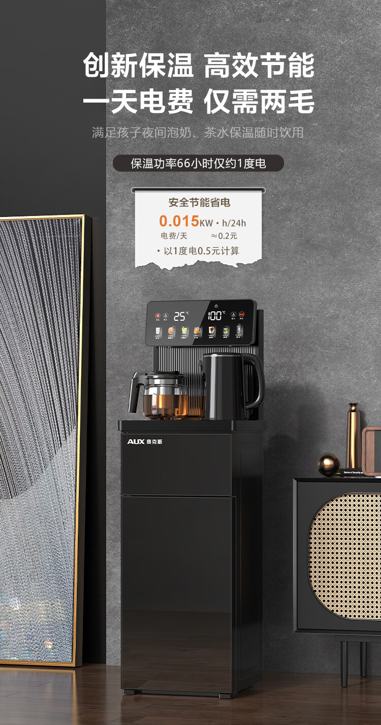 奥克斯(AUX)家用茶吧机智能遥控304不锈钢电热水壶 钣金侧板童锁保护全自动控温下置水桶立式饮水机 YC-29