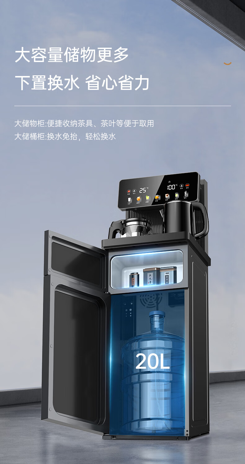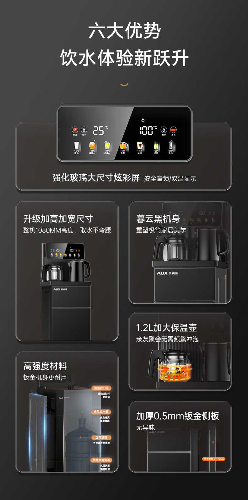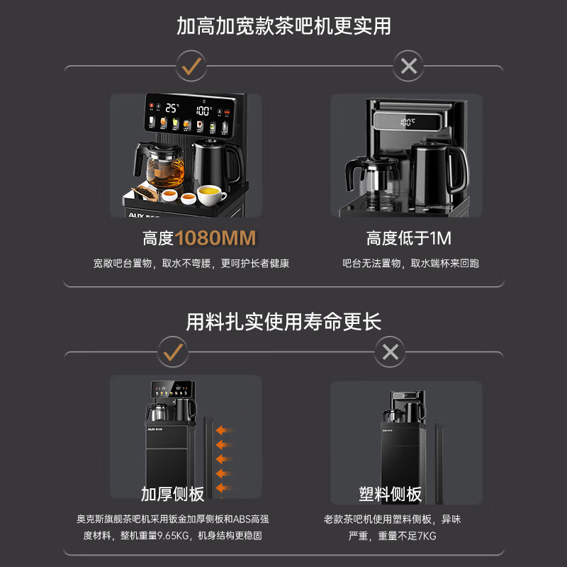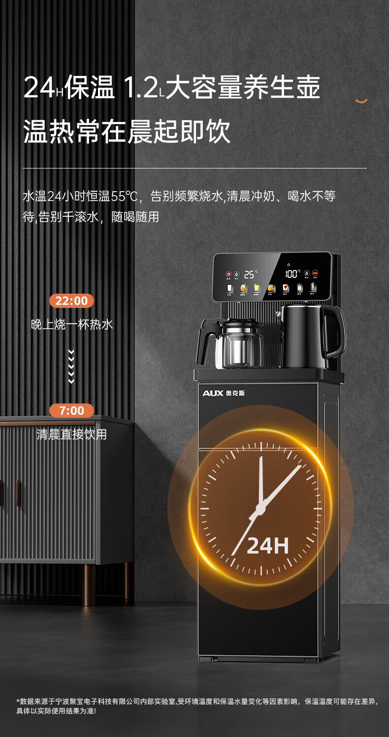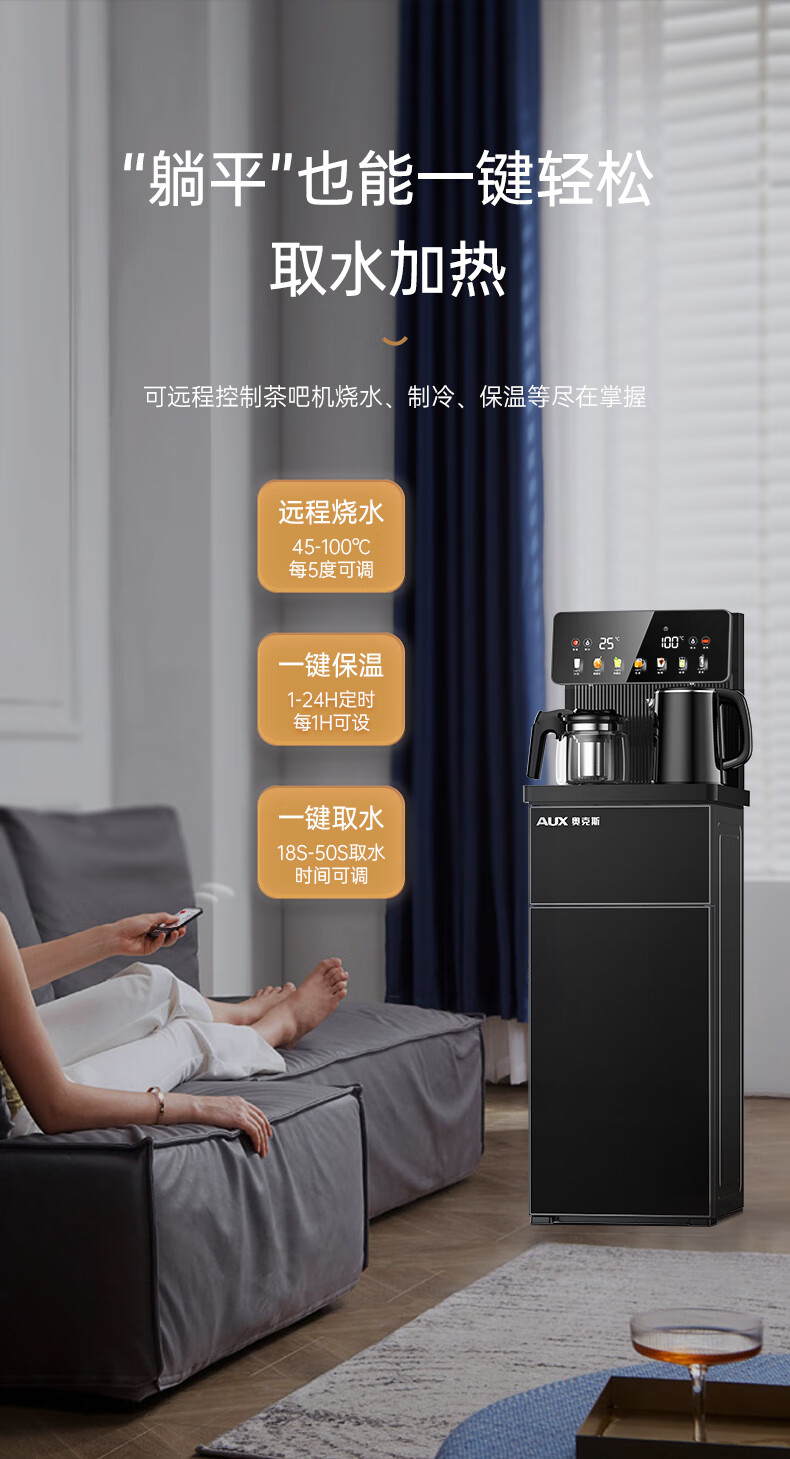 奥克斯(AUX)家用茶吧机智能遥控304不锈钢电热水壶 钣金侧板童锁保护全自动控温下置水桶立式饮水机 YC-29