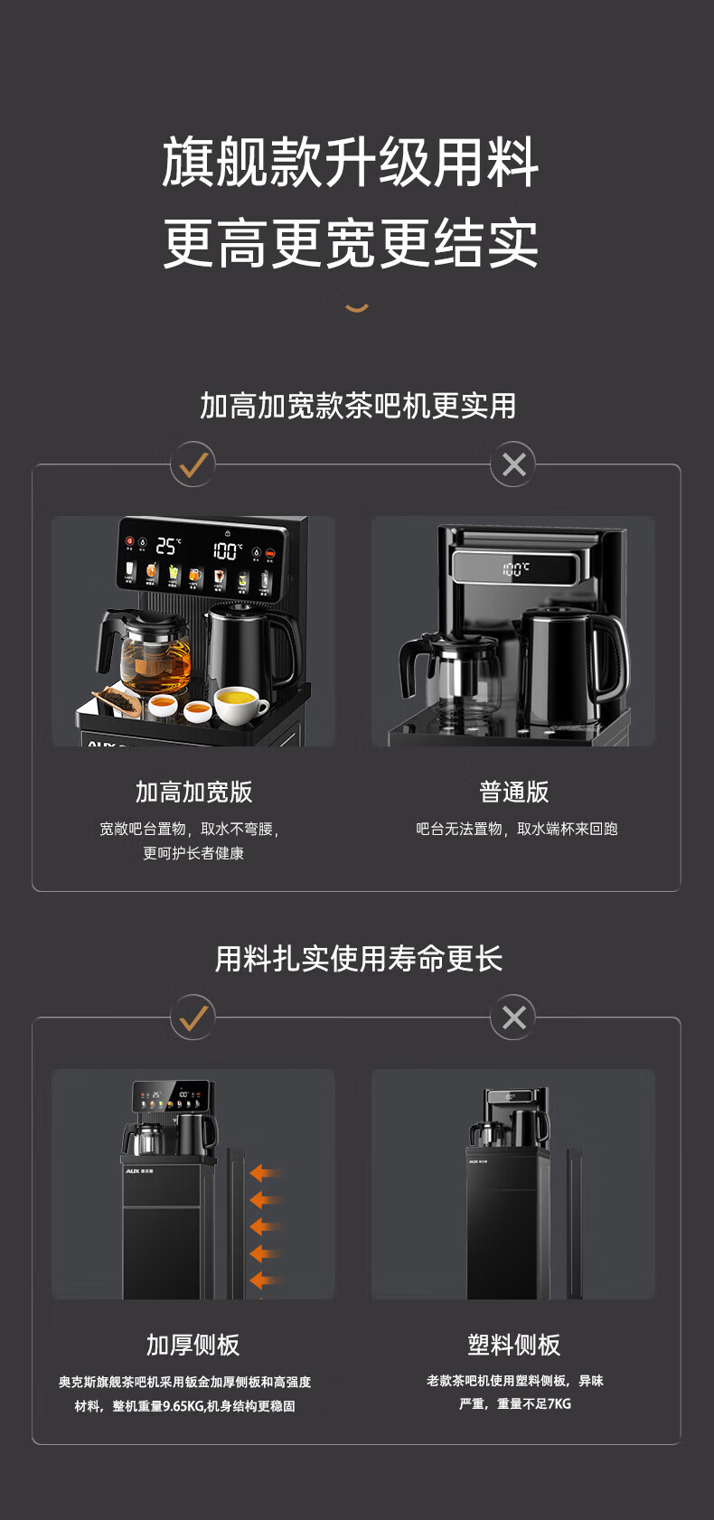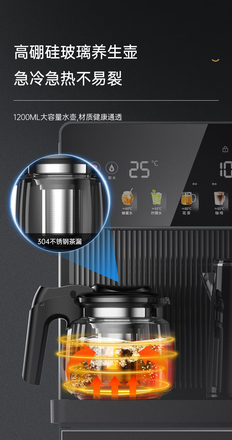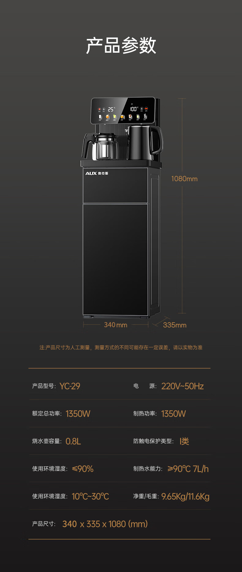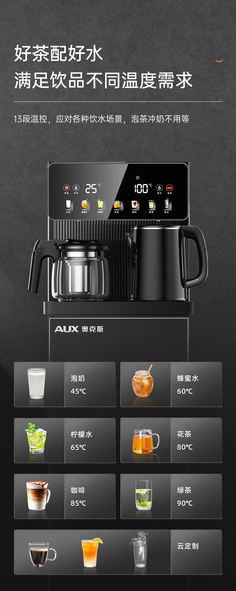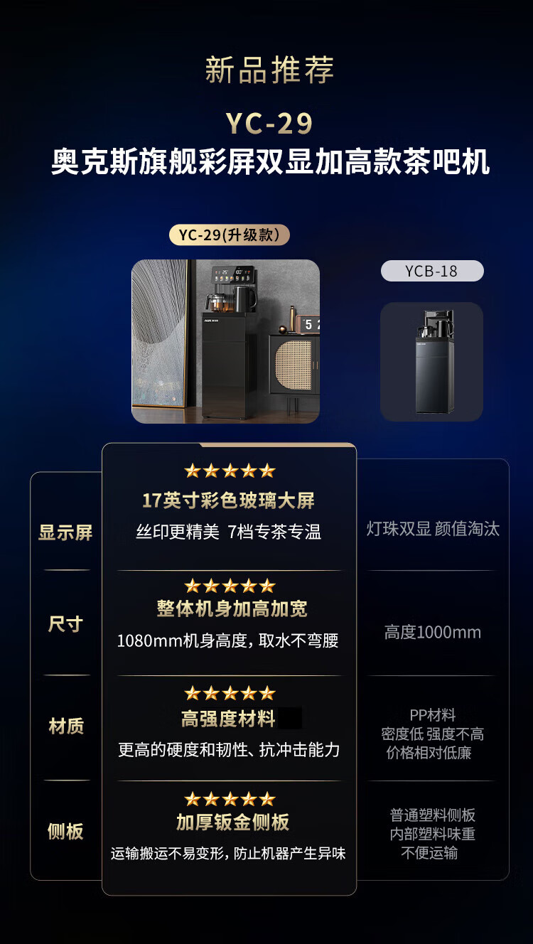 奥克斯(AUX)家用茶吧机智能遥控304不锈钢电热水壶 钣金侧板童锁保护全自动控温下置水桶立式饮水机 YC-29