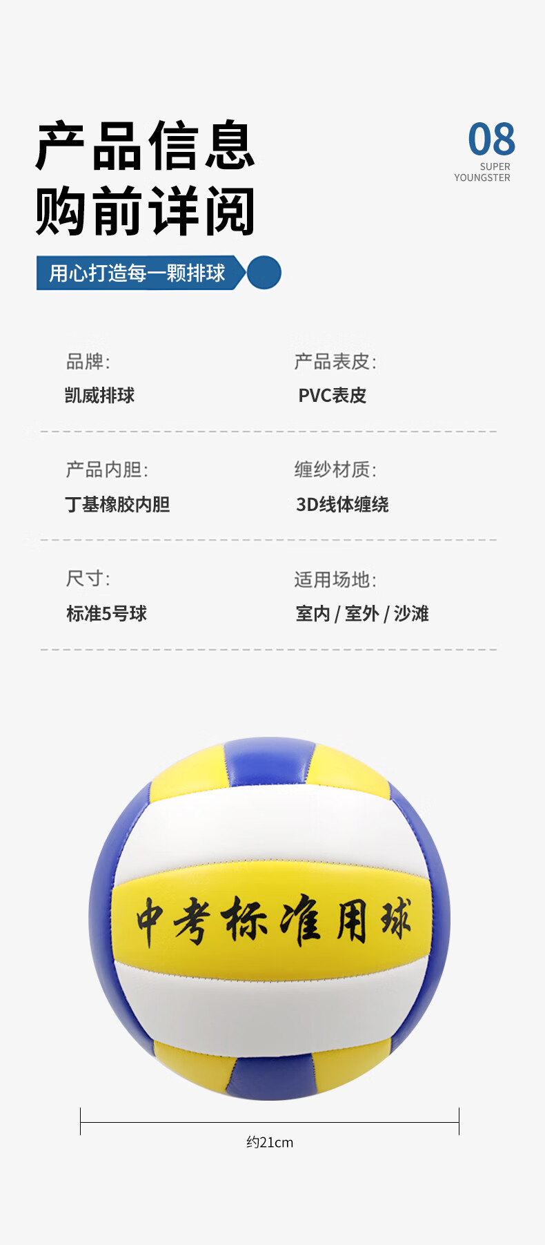 李宁排球中考标准比赛训练专用5号初中小学成人青少年儿童少年软硬排