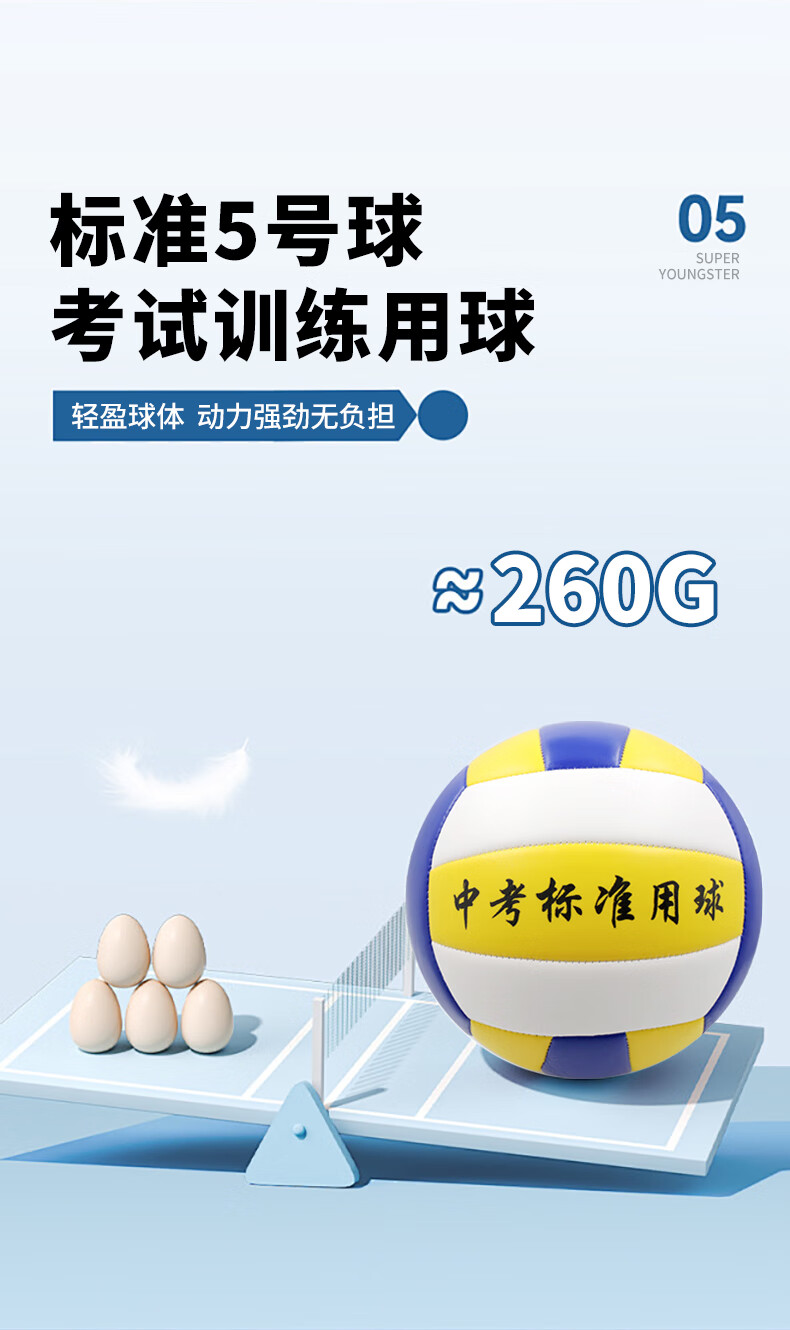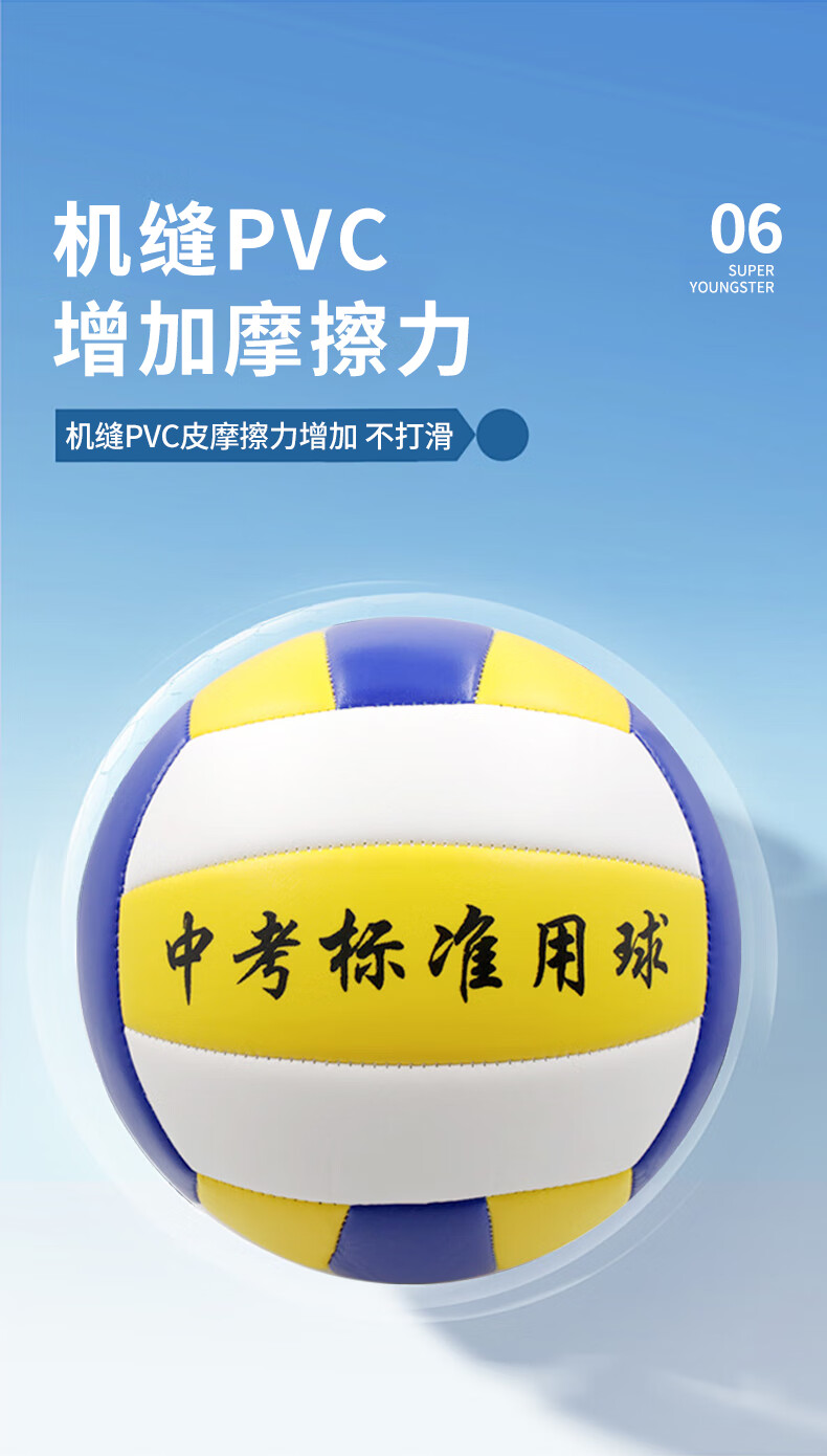 金鹏排球5号PVC初中小学生中考训练比赛沙滩软排球标准机缝单个装