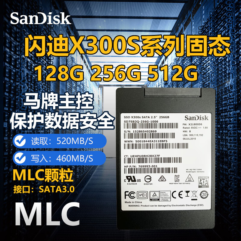 闪迪(SanDisk)MLC固态硬盘128G 256G 512G 480GSATA3笔记本台式机电脑SSD 库存闪迪 X300S-2.5- 256G