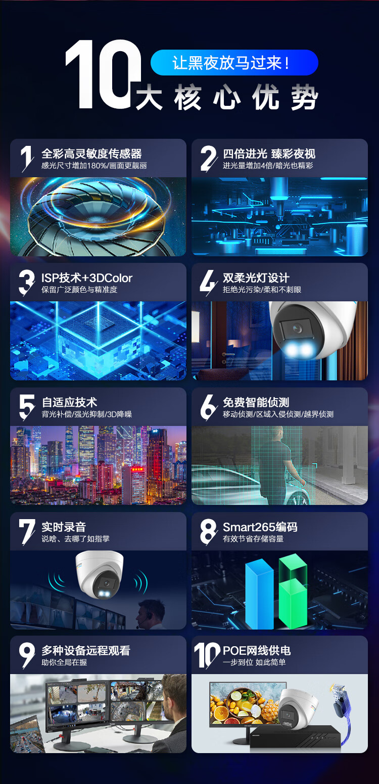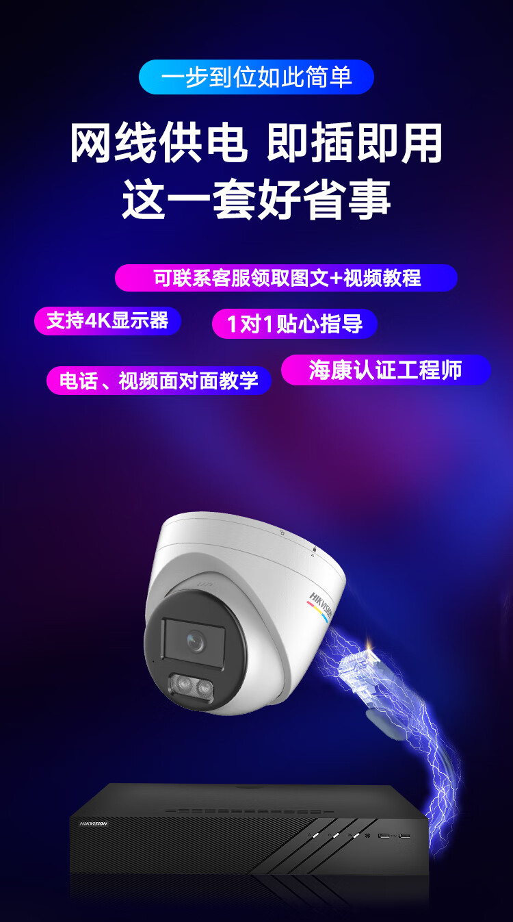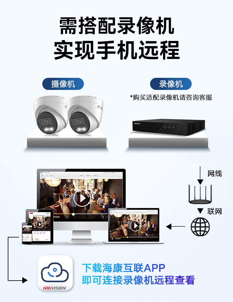 HIKVISION/海康威视 DS-2CD2T46XMV3-LGLSE 摄像机 (监控摄像头400万4G无线超高清全彩室内外户外监控器无网手机远程可录音8mm)