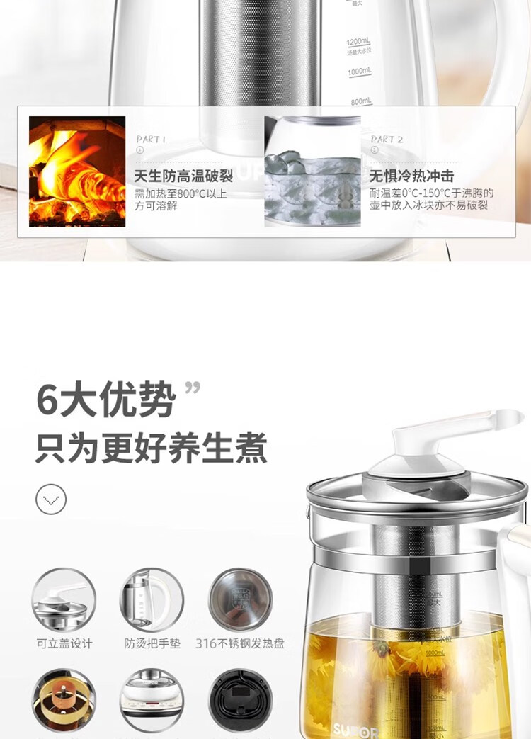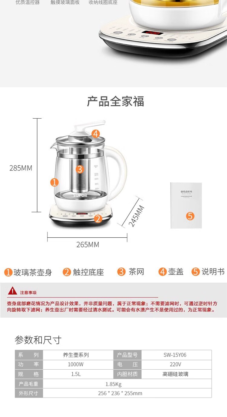 苏泊尔(SUPOR)养生壶家用多功能316L不锈钢全自动煮茶器 SW-15Y06