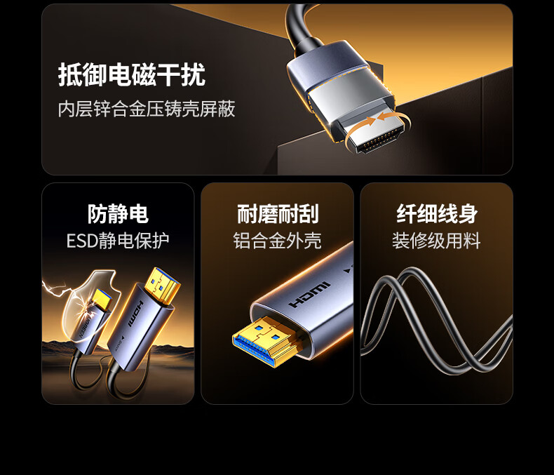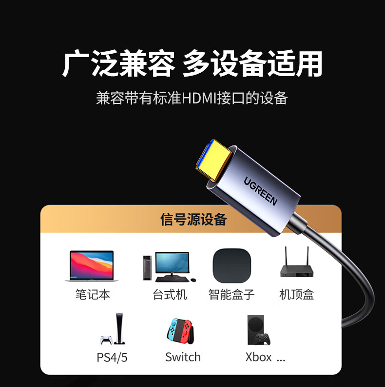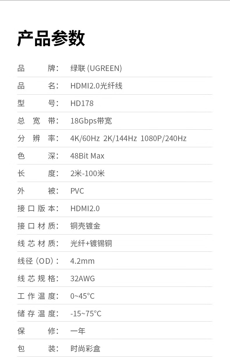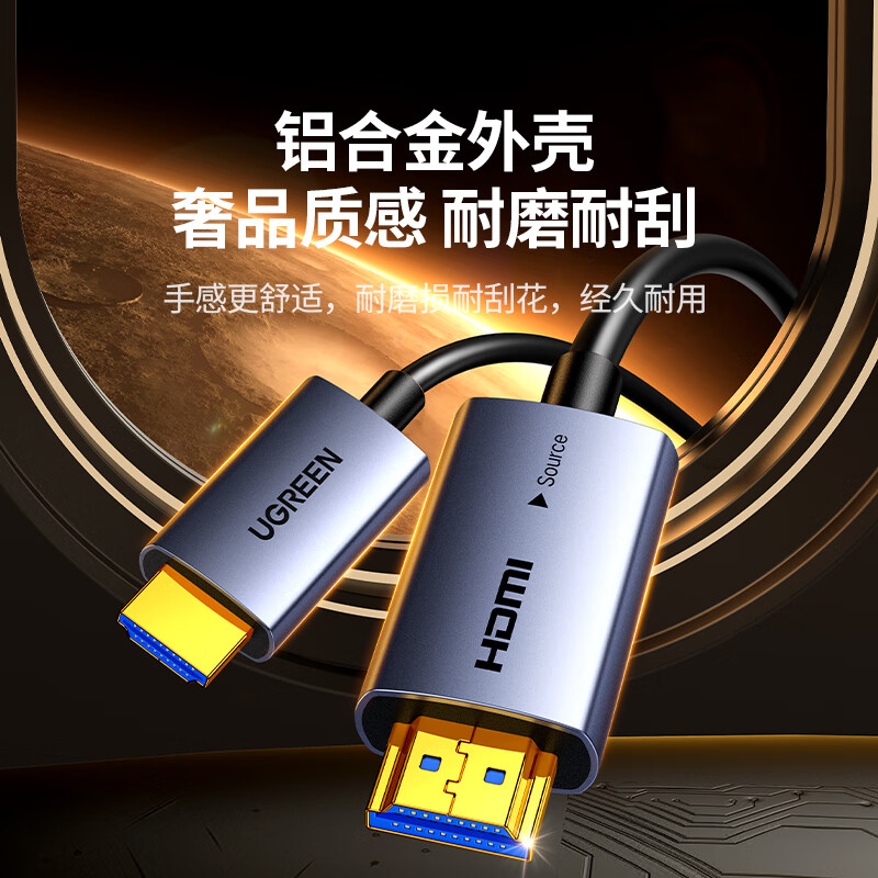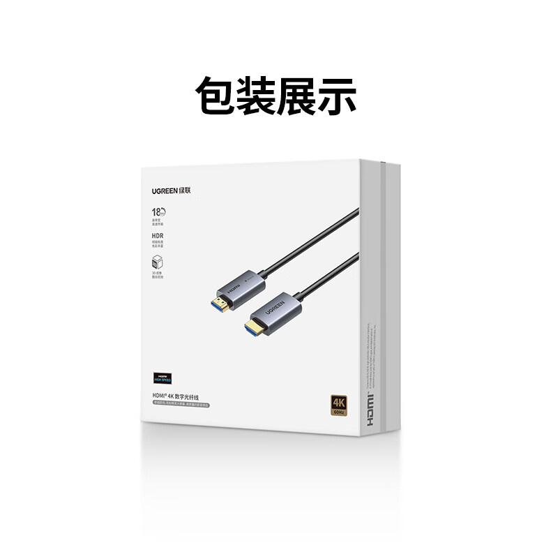 绿联光纤HDMI线2.0版4K60Hz发烧级高清线电脑机顶盒连接电视投影仪显示器视频线工程装修50米45509