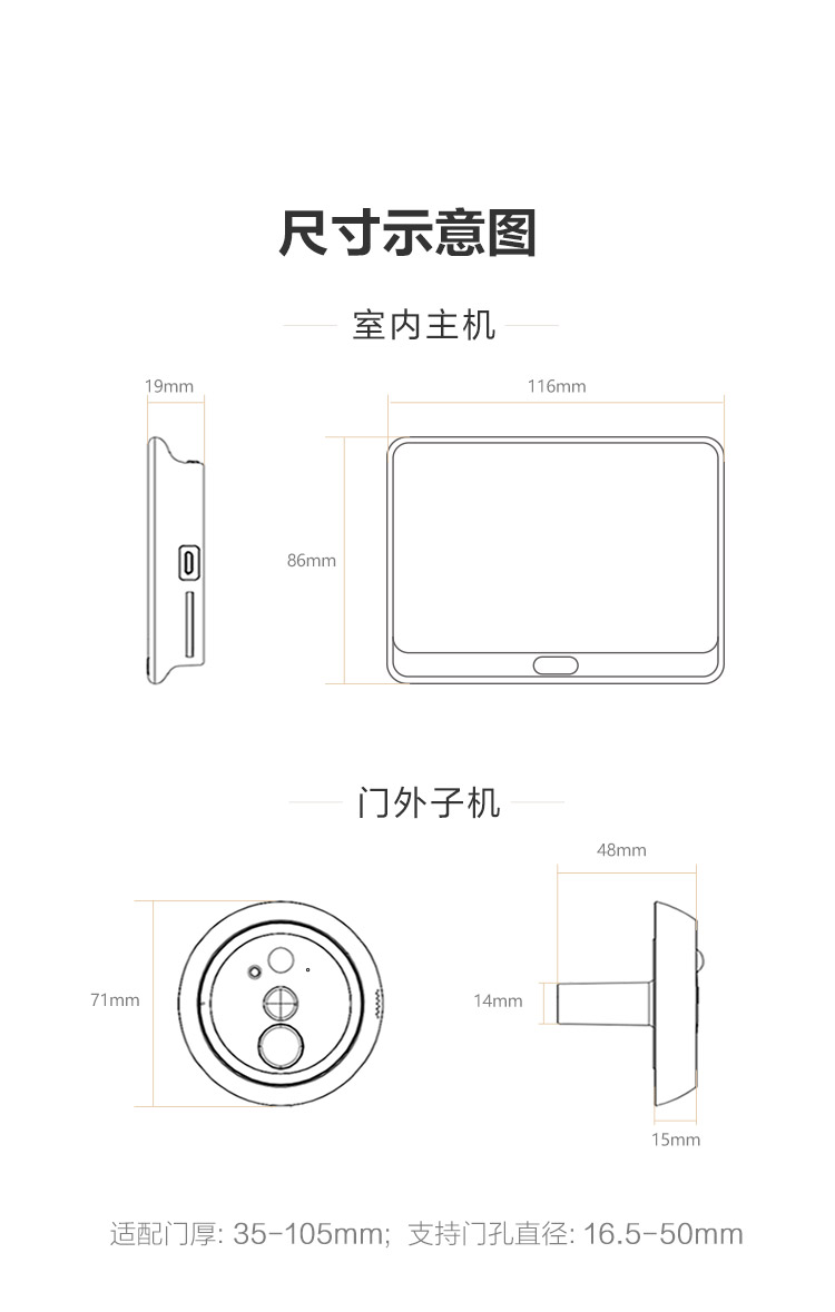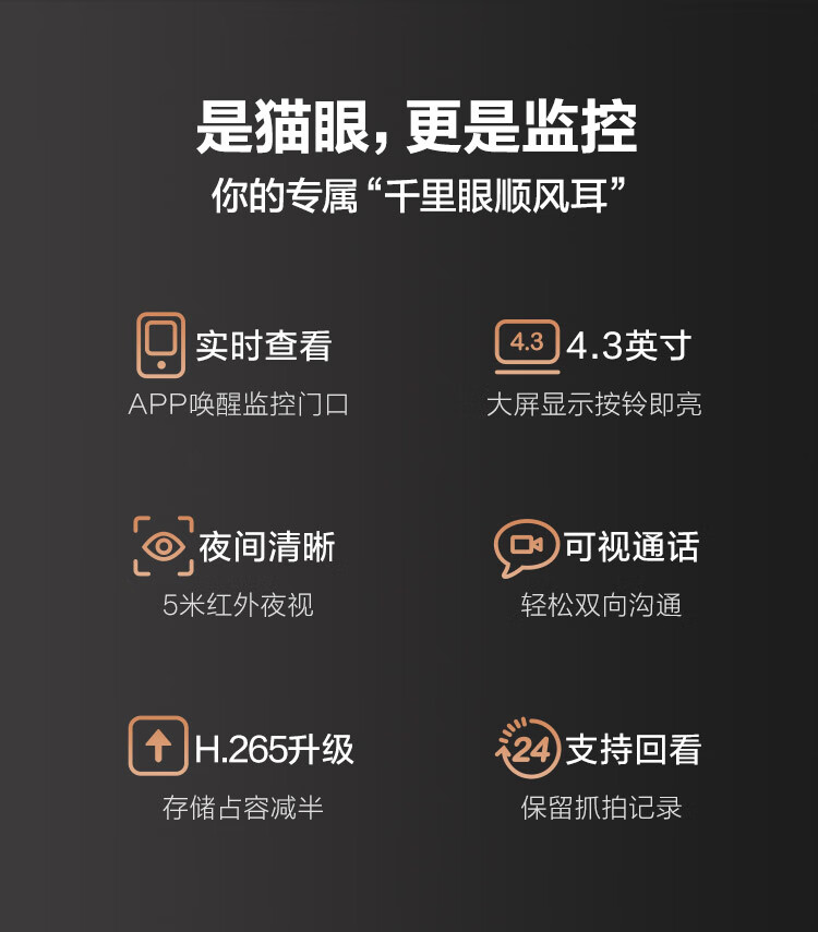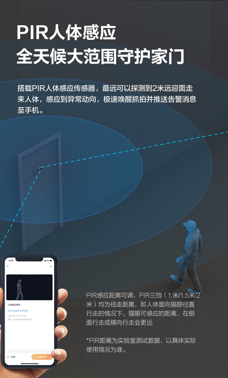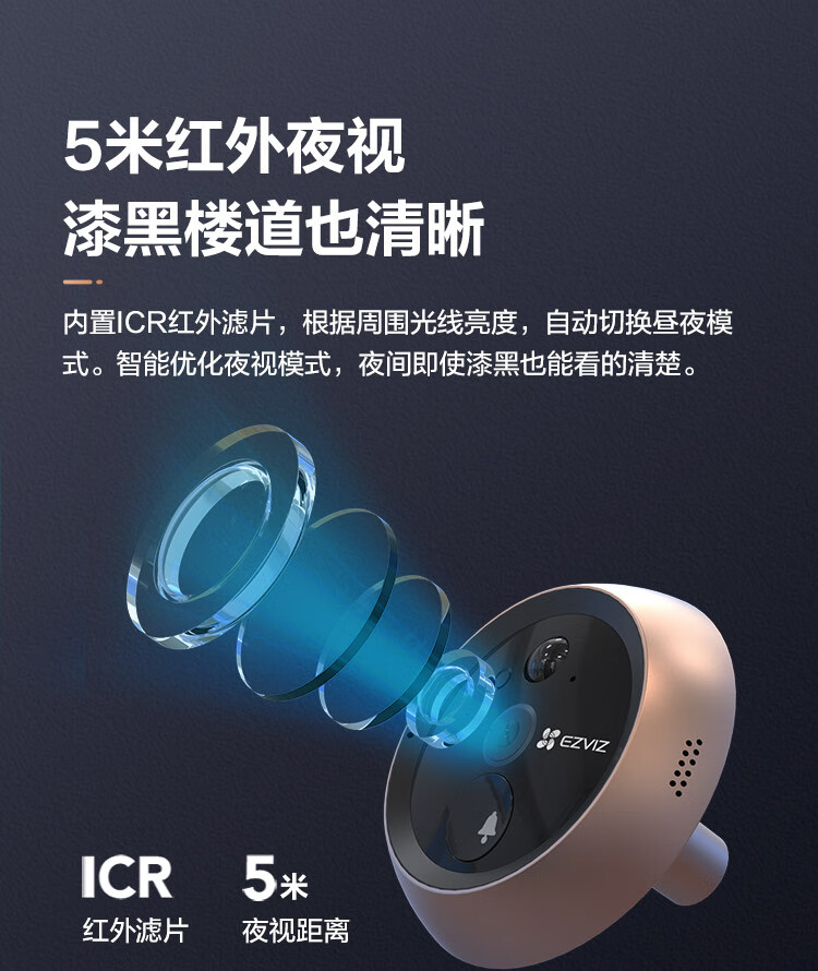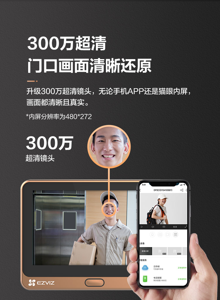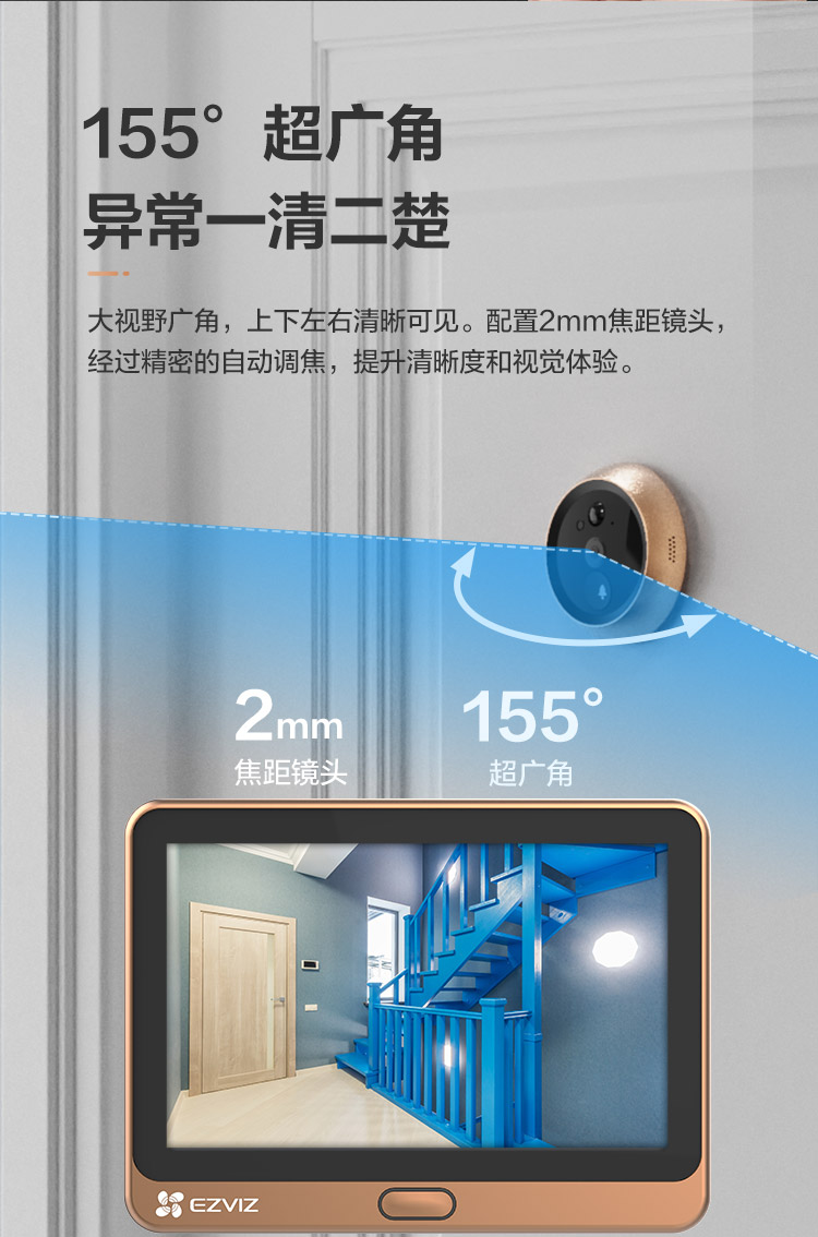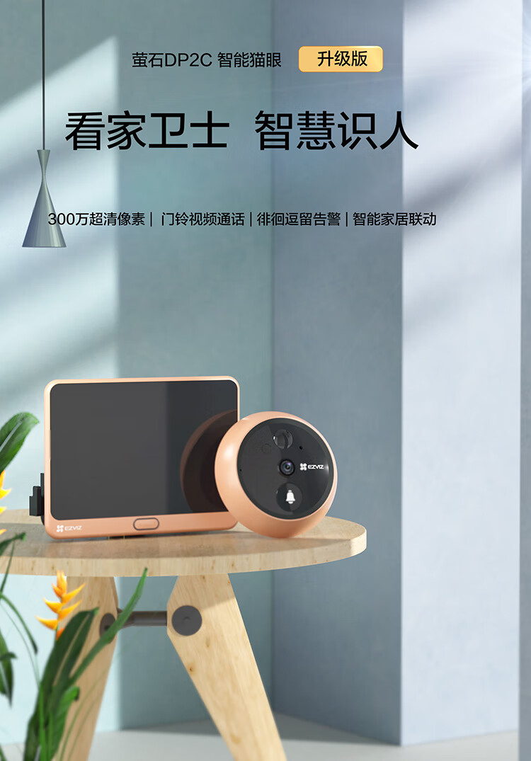 萤石DP2C 3MP智能猫眼 摄像头 300万超清 海康威视旗下电子猫眼 可视门铃防盗门监控 远程可视通话