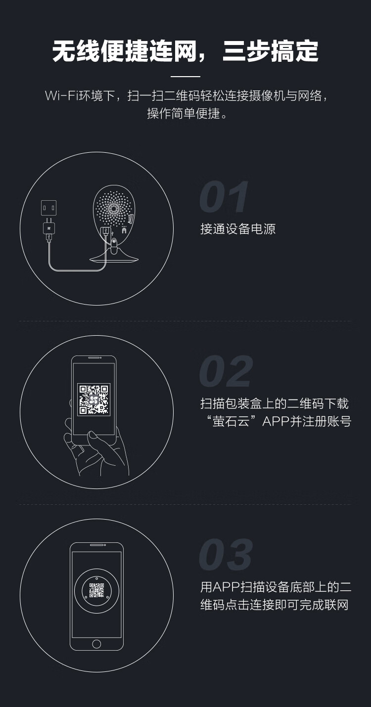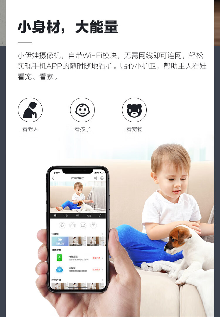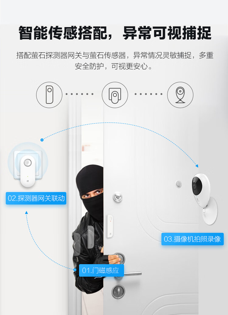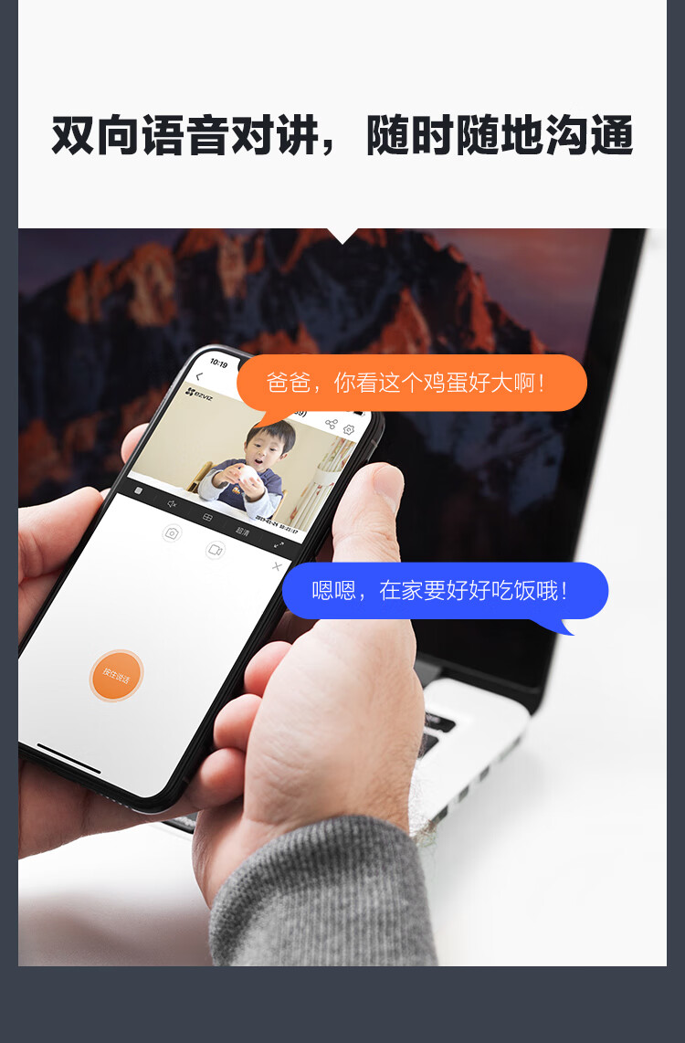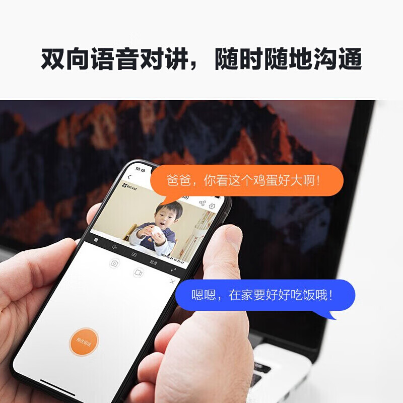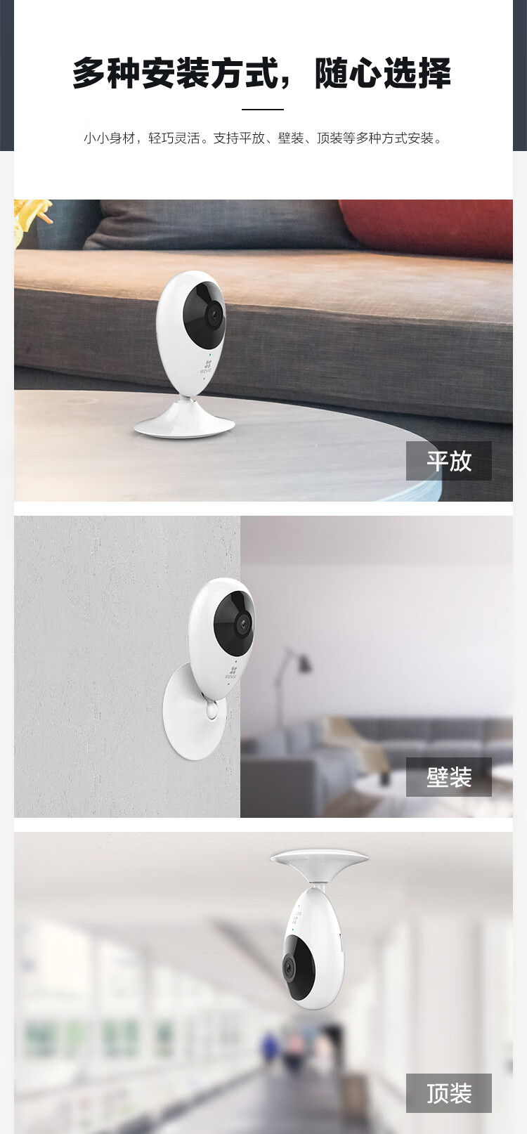 萤石C2C摄像头监控家用无线WIFI网络摄像头监视器手机远程红外夜视高清语音通话室内看护 【C2C 1080P高清】 标配无卡