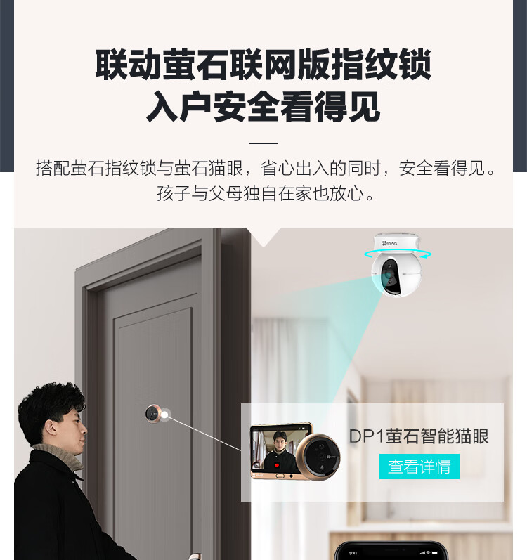 萤石DP2C 3MP智能猫眼 摄像头 300万超清 海康威视旗下电子猫眼 可视门铃防盗门监控 远程可视通话