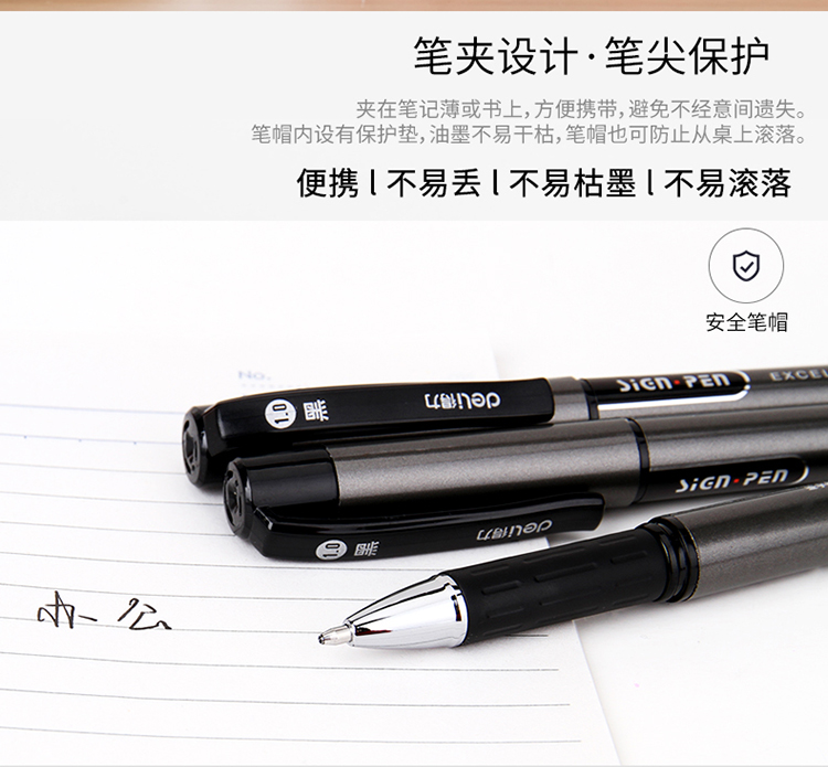 得力(deli)1.0mm办公拔帽中性笔碳素签字笔 办公用品 1支 S73黑色