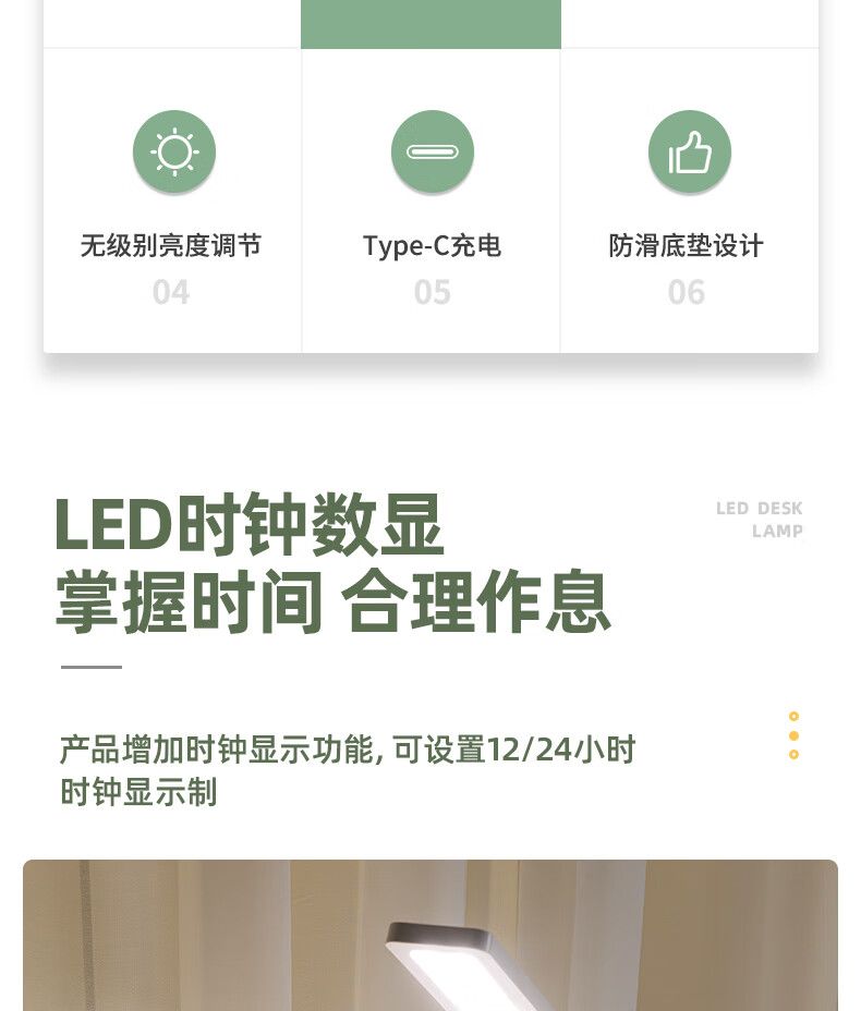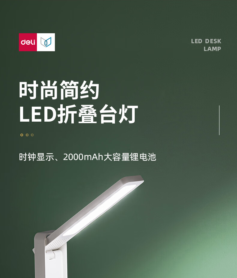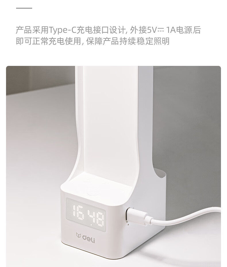 得力(deli)LED便携充电带时间小台灯书桌学习可视化时间学生学习宿舍卧室 LF106
