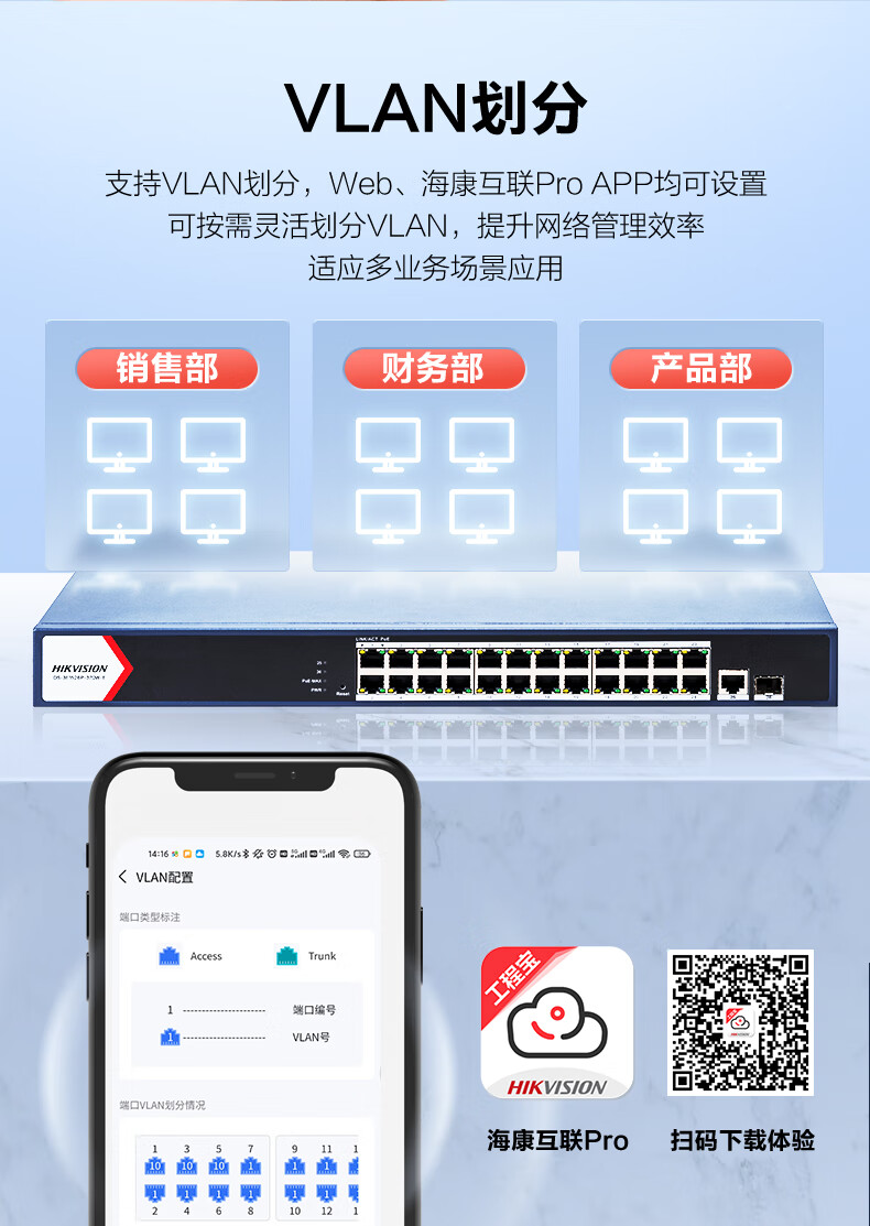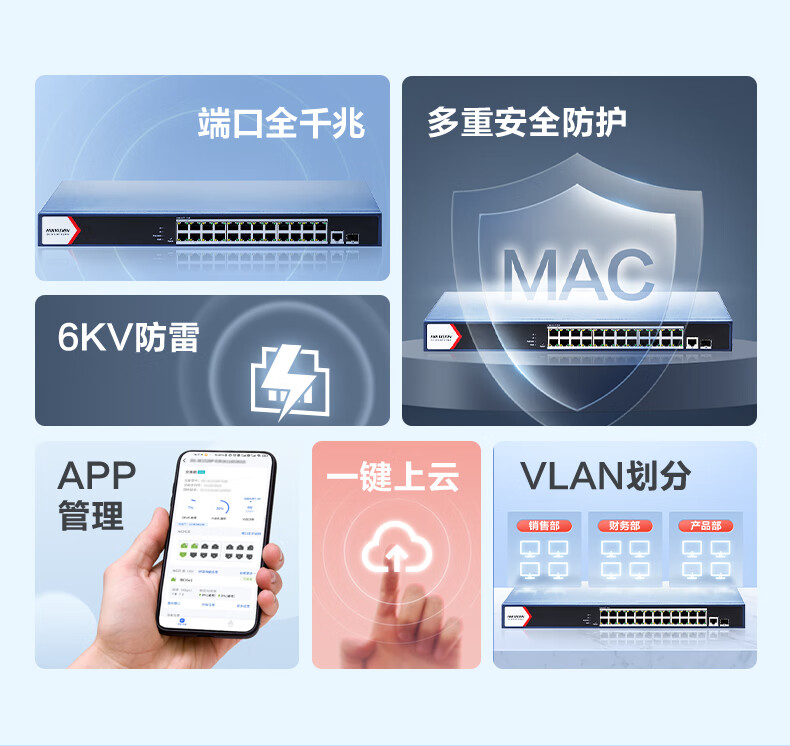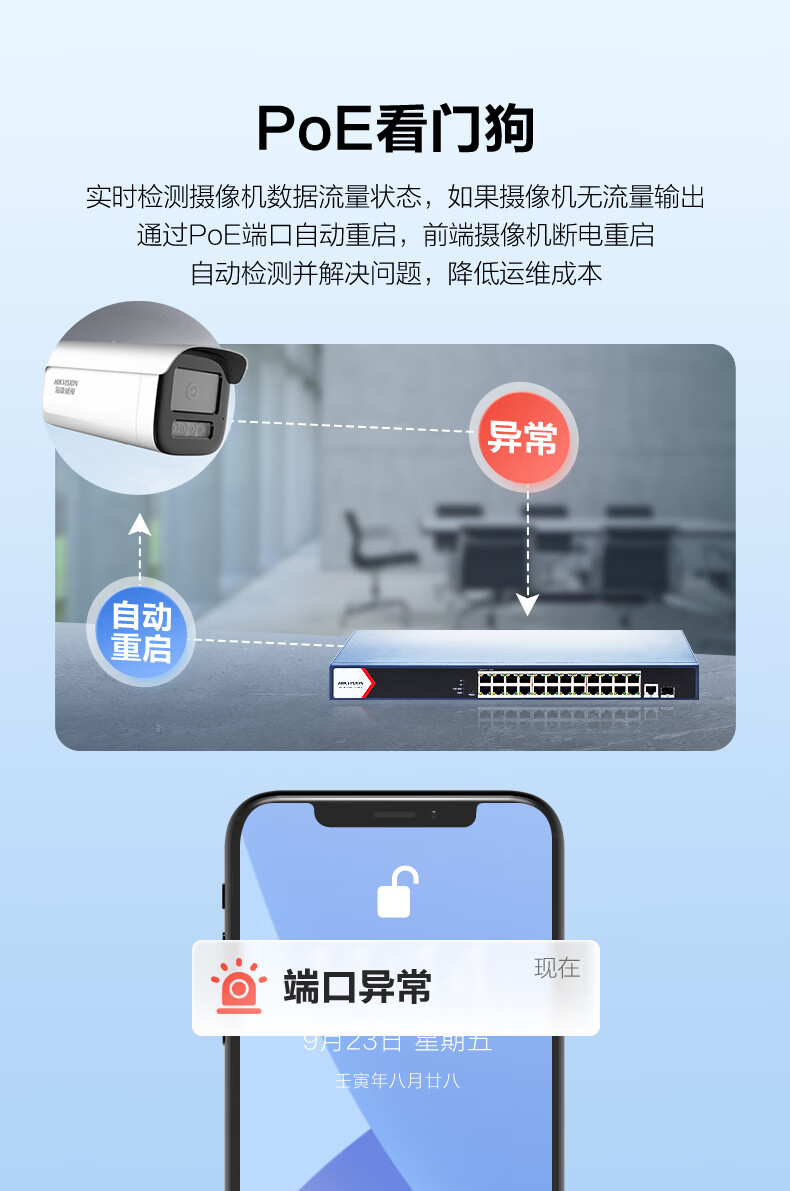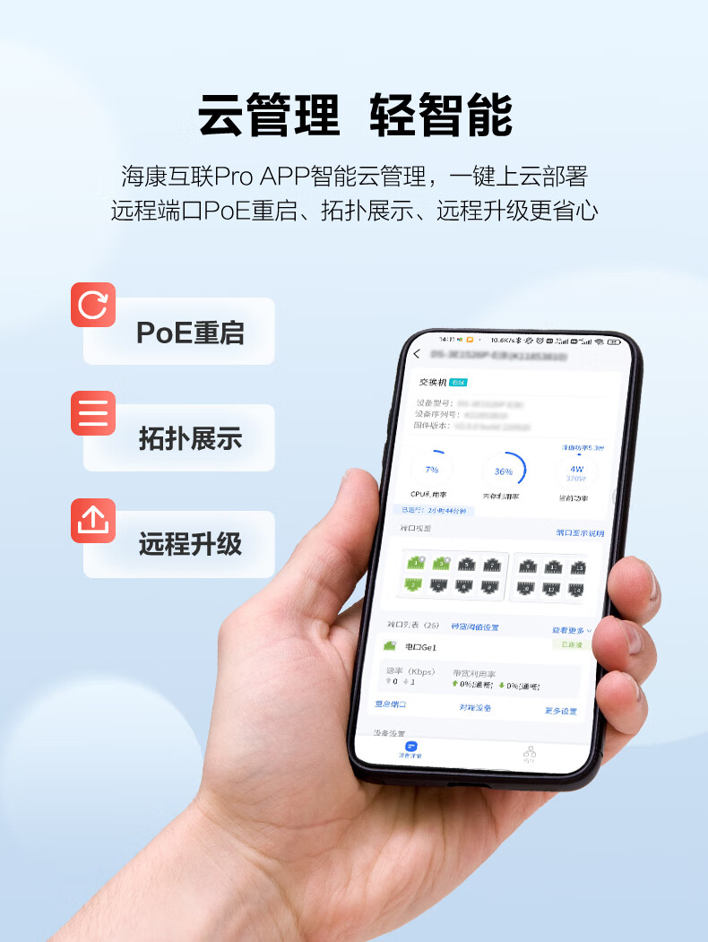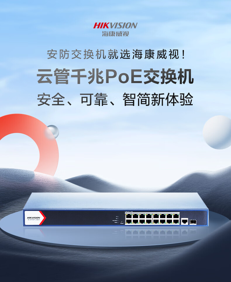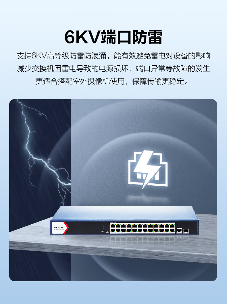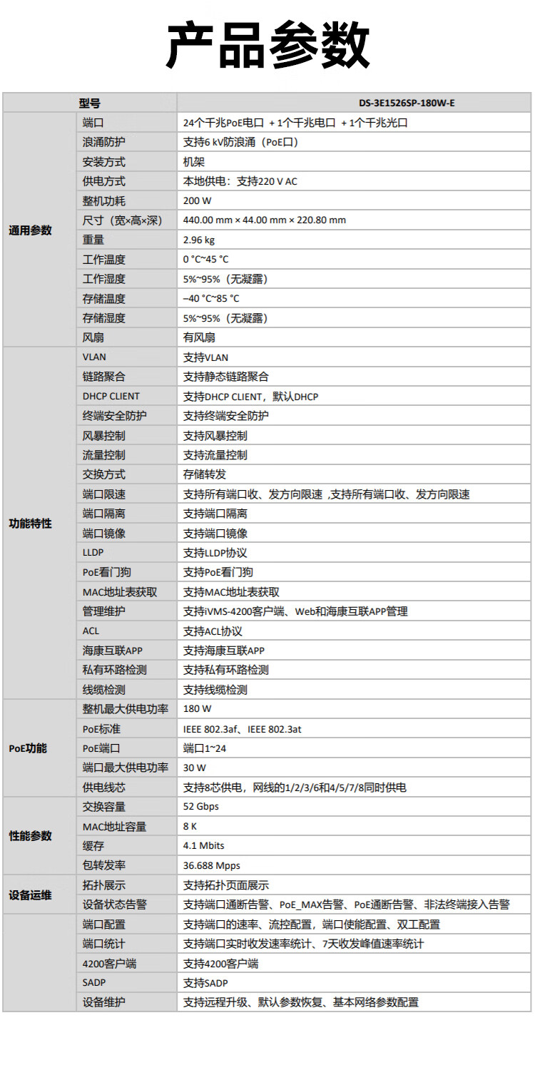 HIKVISION海康威视26口千兆POE交换机 24口POE网管交换机 监控网络网线分线器APP管理DS-3E1526SP-180W-E